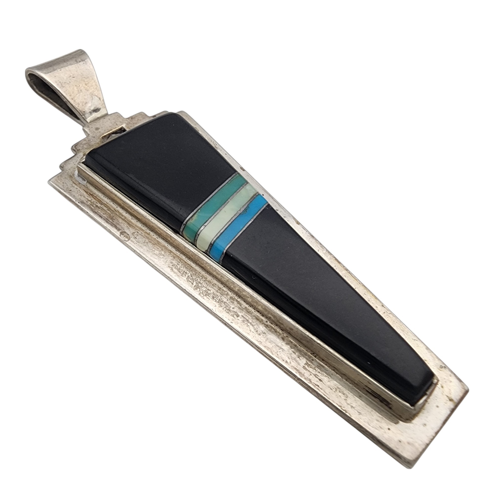 Herbert & Veronica Thompson Navajo Sterling Multistone (Turquoise, Onyx, etc.) Inlay Pendant | 19.3g