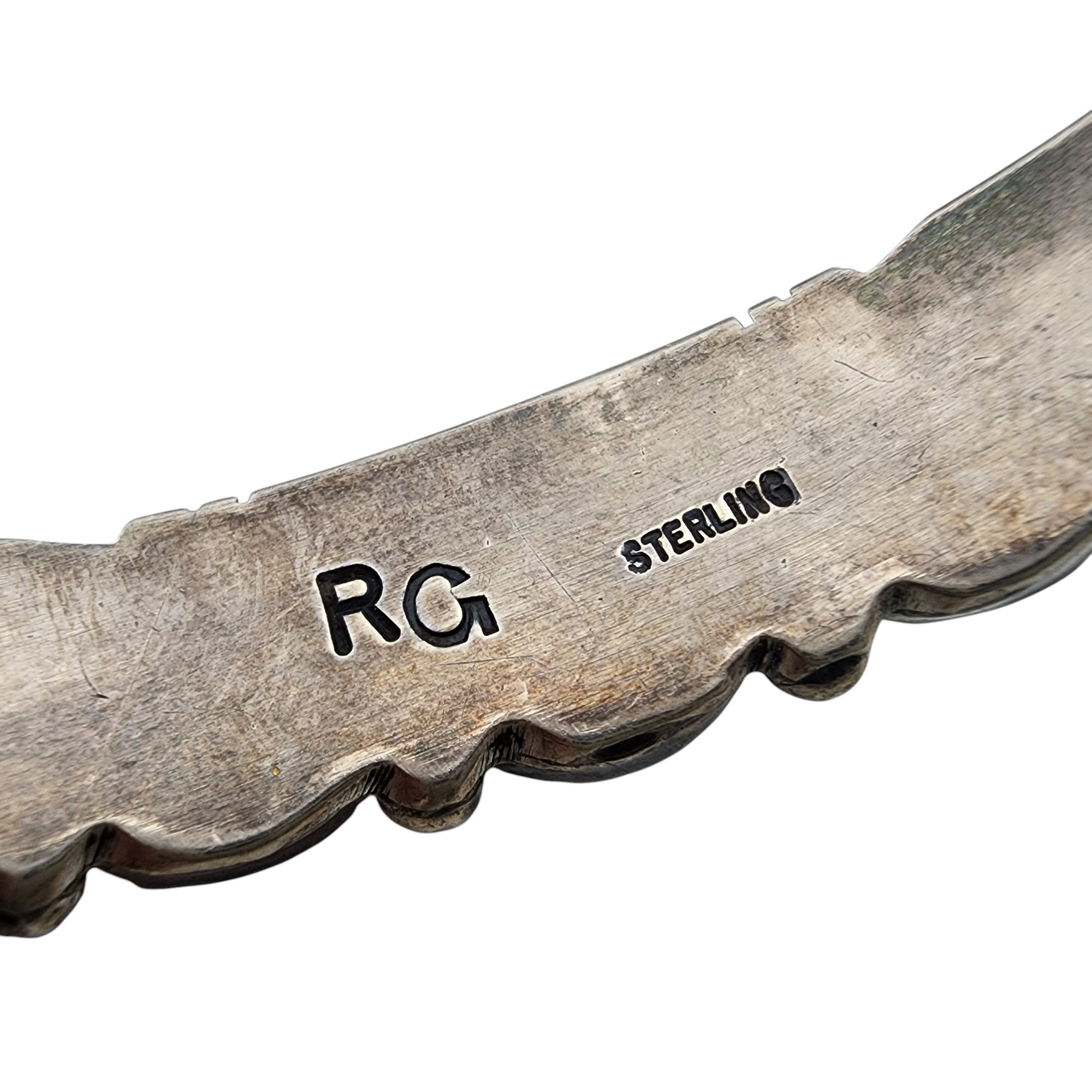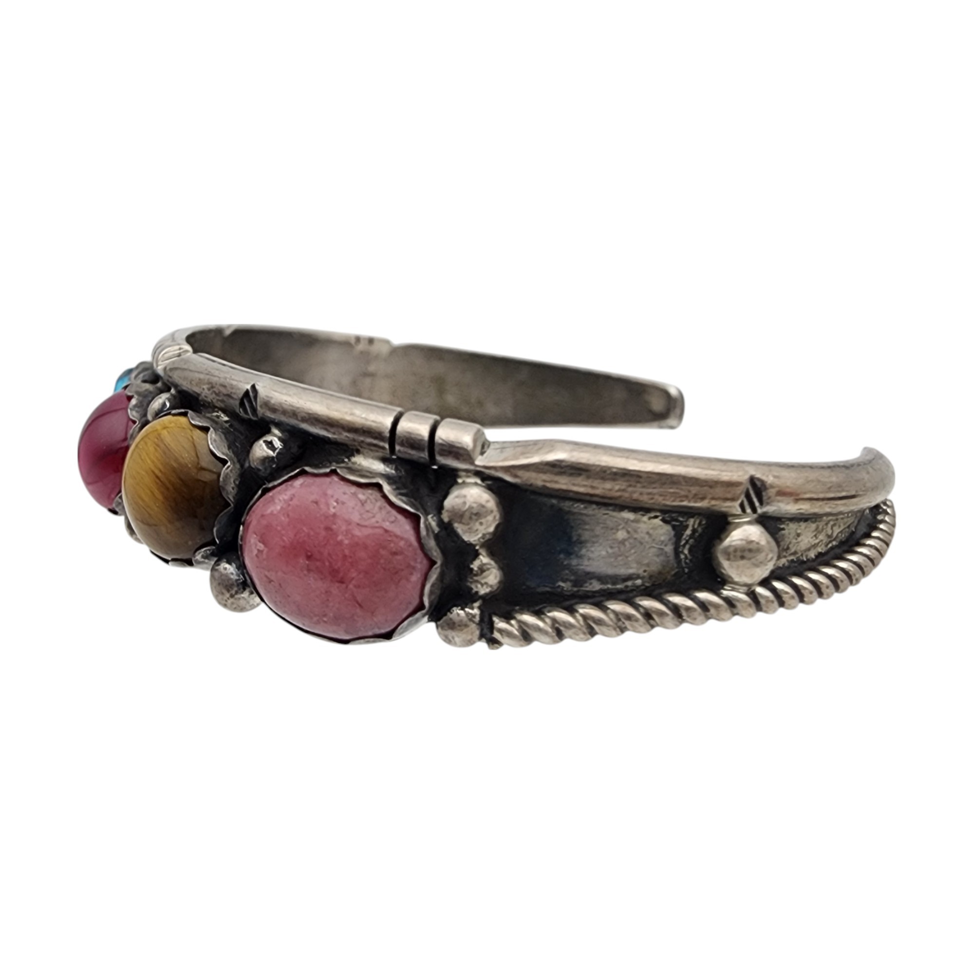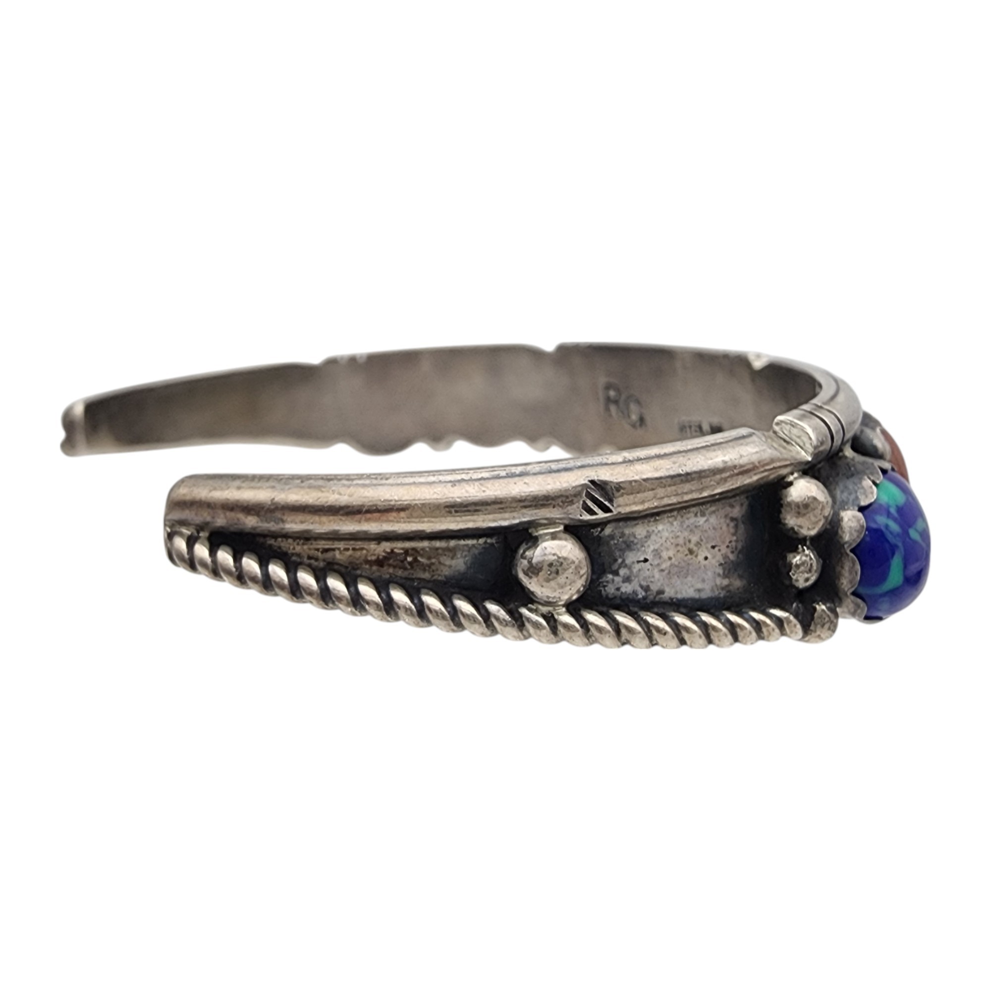 Signed RG Navajo Sterling Multistone (Turquoise, Goldstone, Azurite, Mother of Pearl, Tigers Eye, Rhodochrosite, etc.) Cuff Bracelet | 24.7g