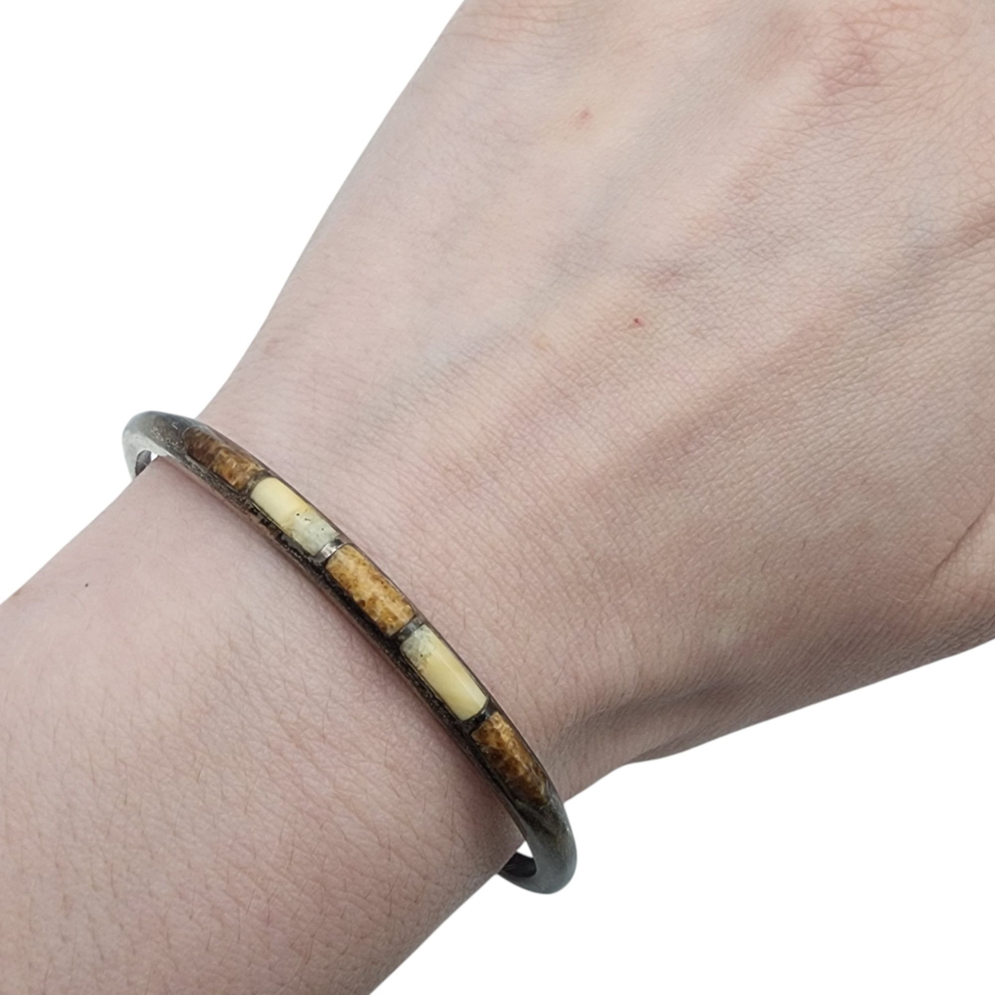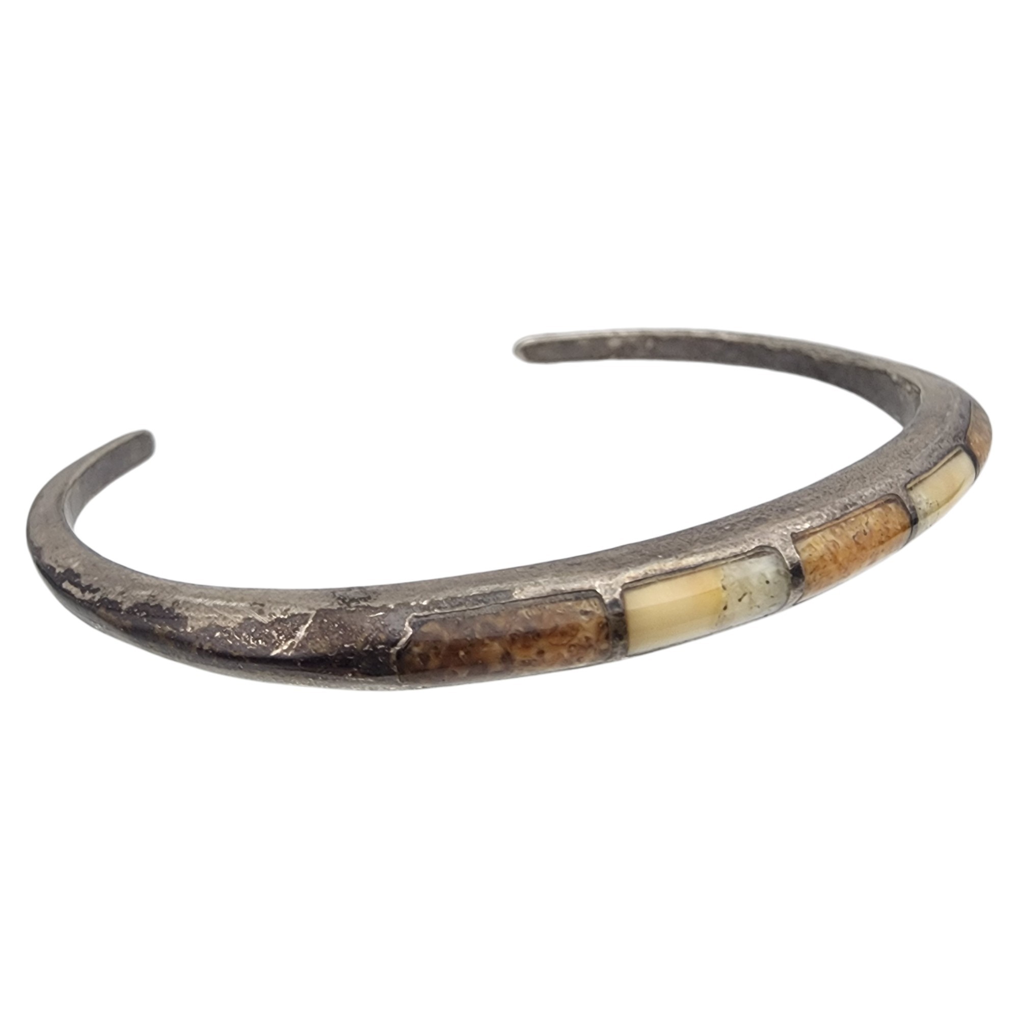 Signed Vintage Zuni Sterling Multistone Inlay Cuff Bracelet