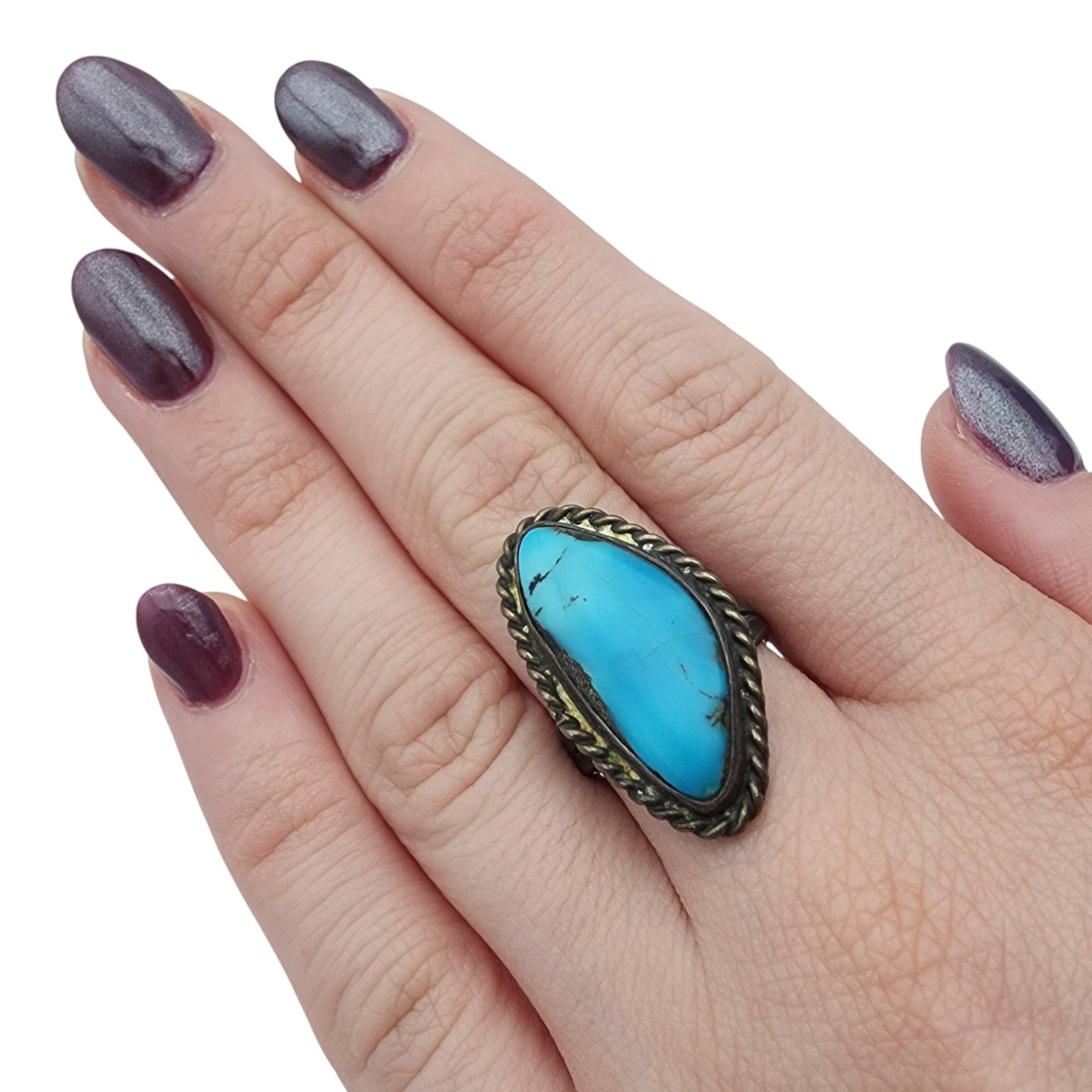 Vintage Navajo Sterling Turquoise Ring Sz 7 | 7.6g