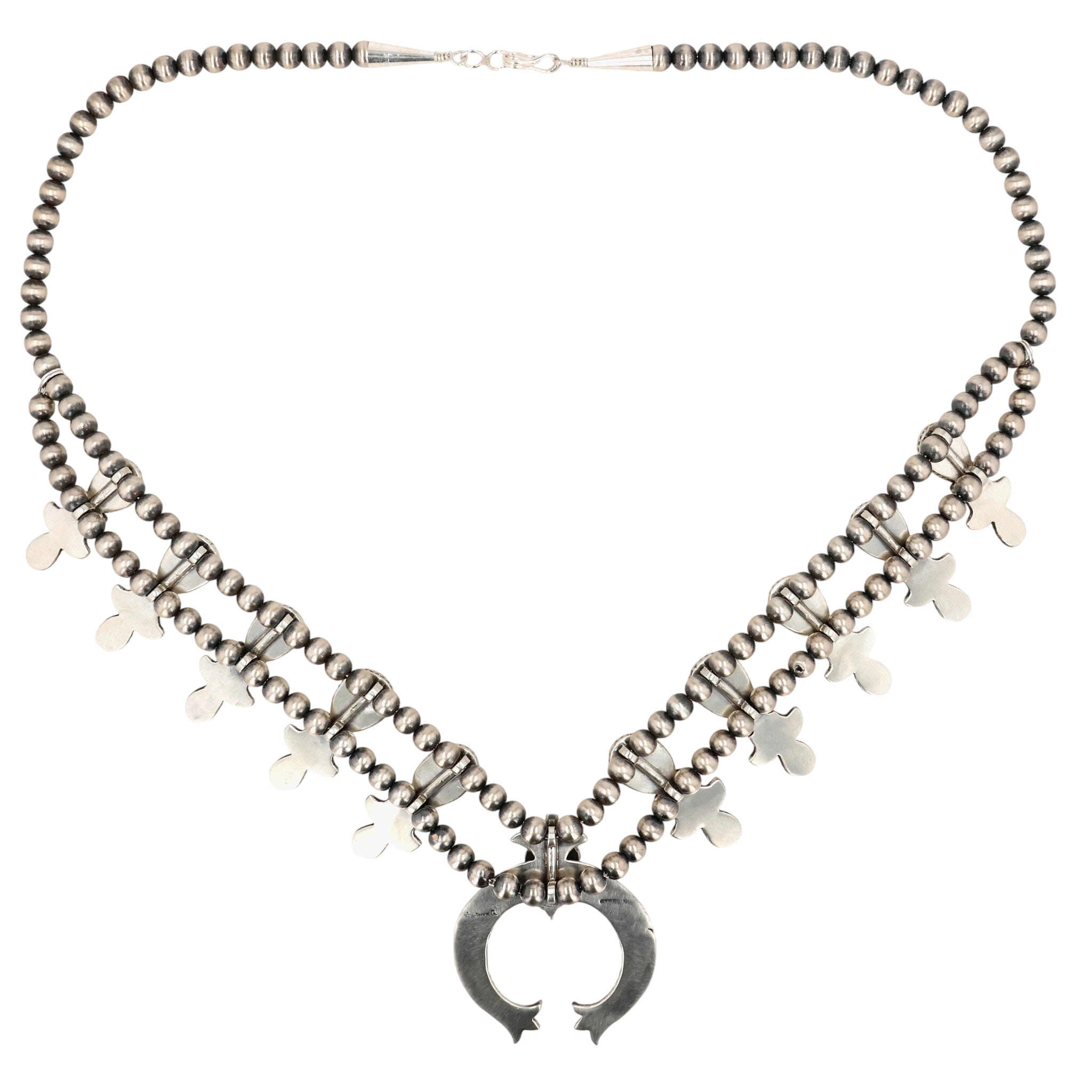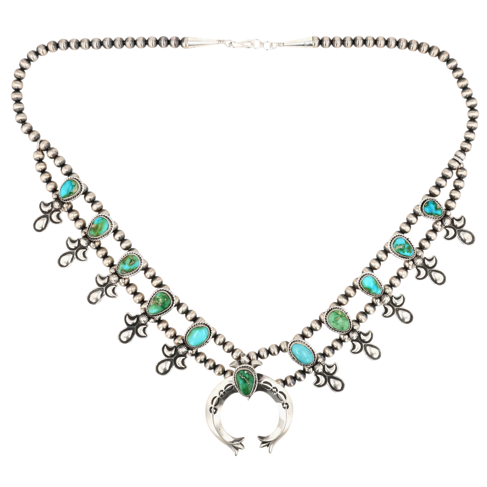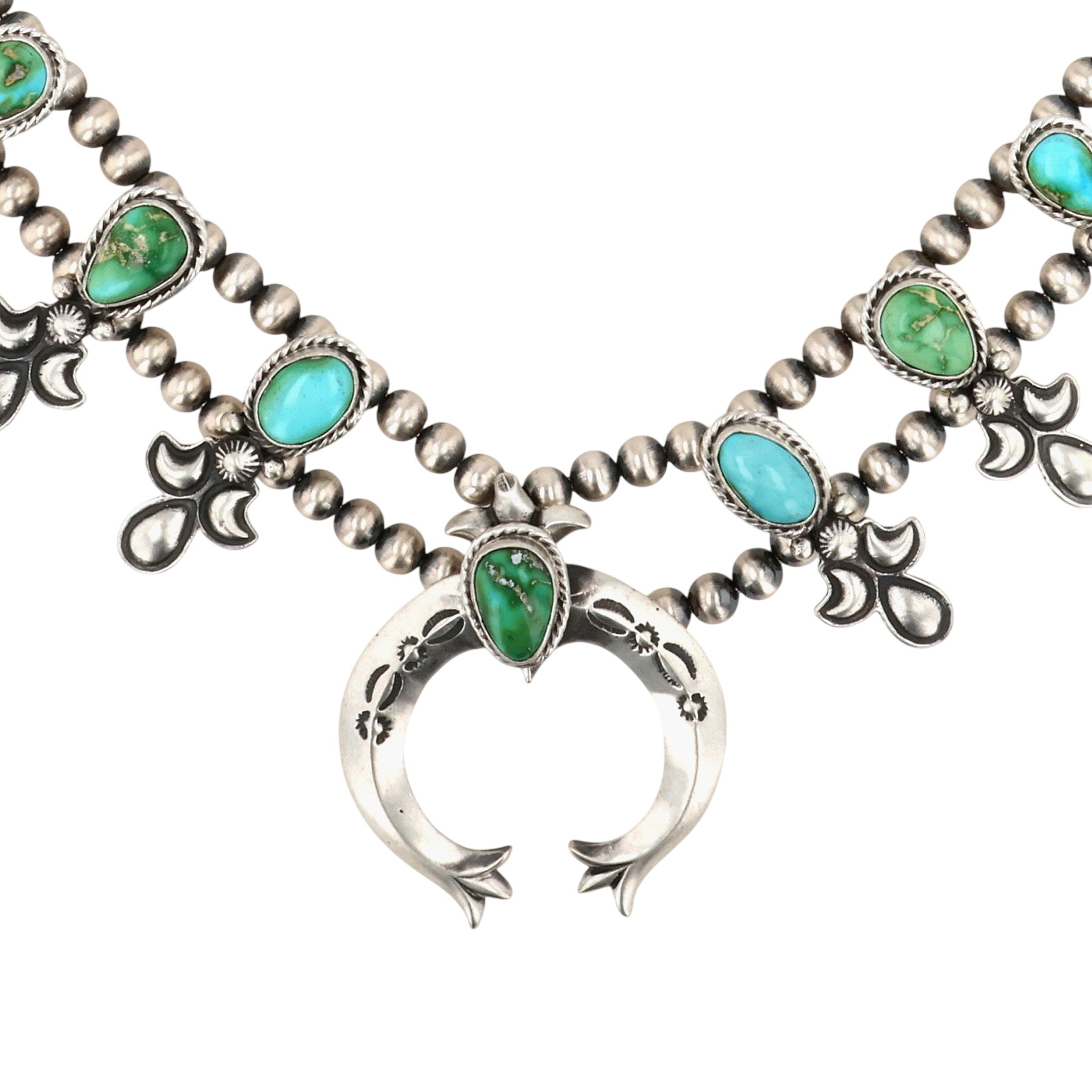 Adrienne Gordon Navajo Sonoran Gold Turquoise Sterling Squash Blossom Necklace