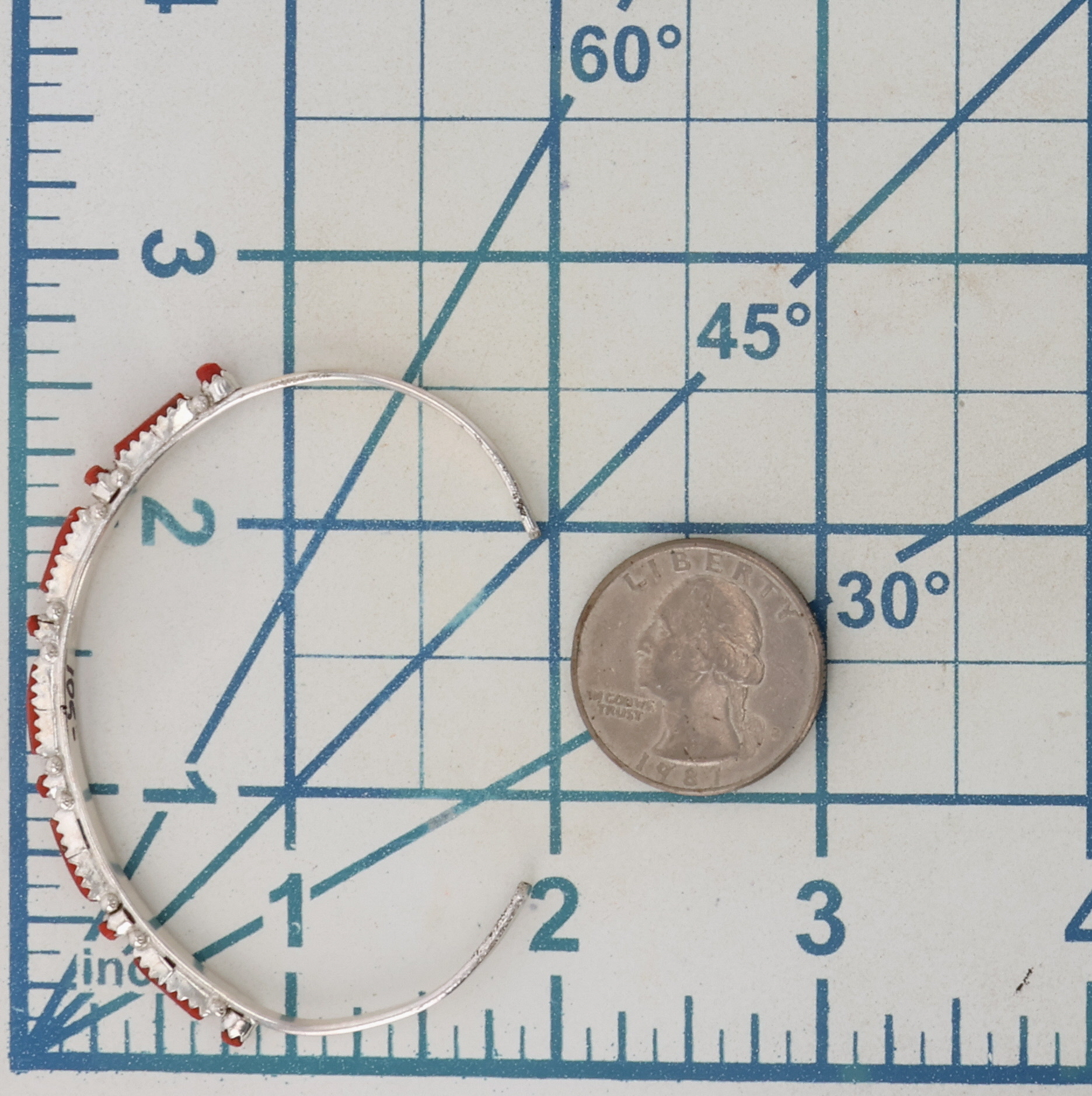 JW Zuni Sterling Coral Cuff Bracelet 6g