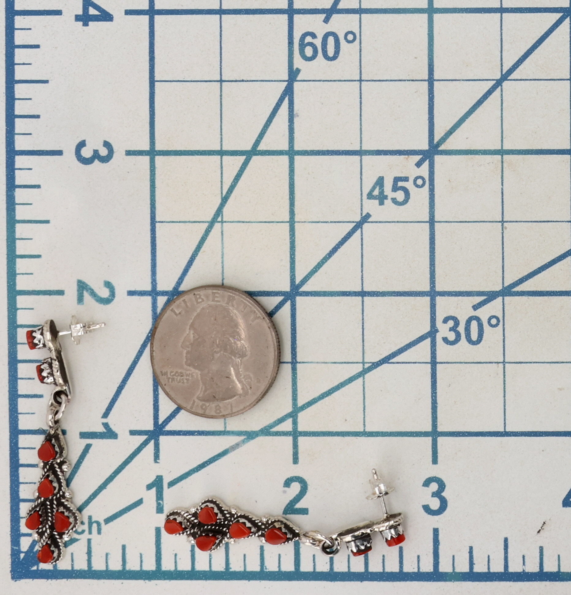 Jovi Burns Zuni Sterling Coral Earrings 7.5g