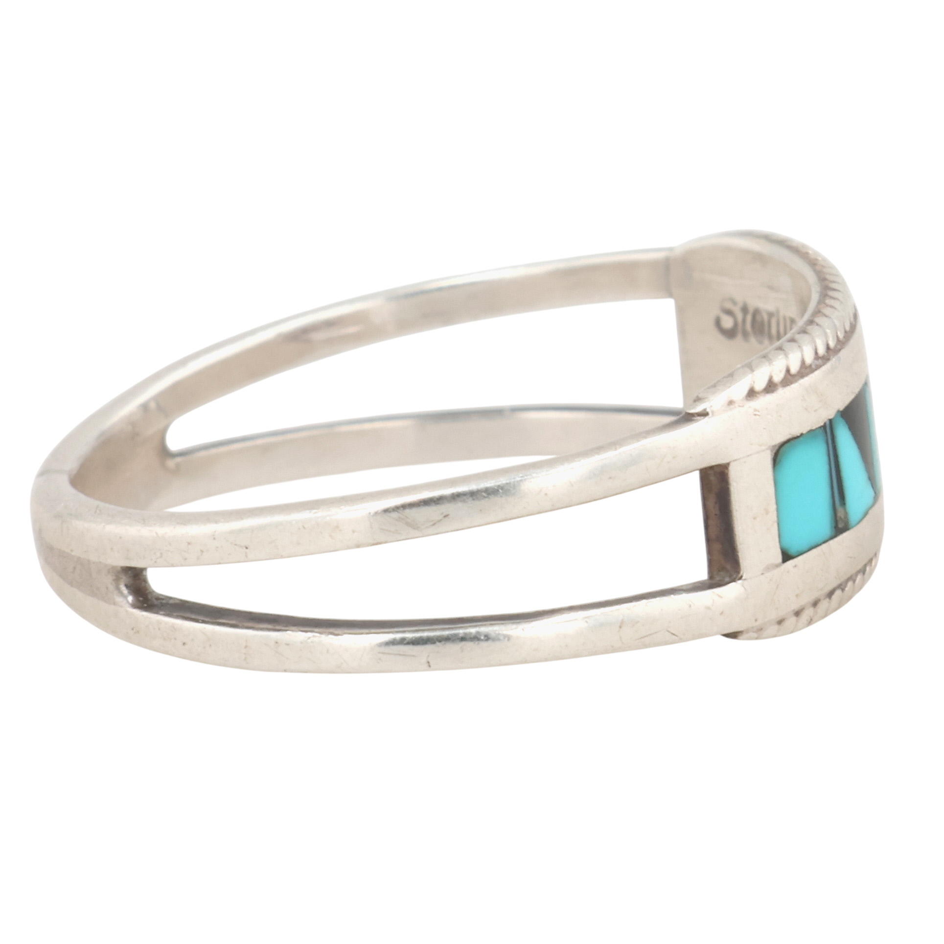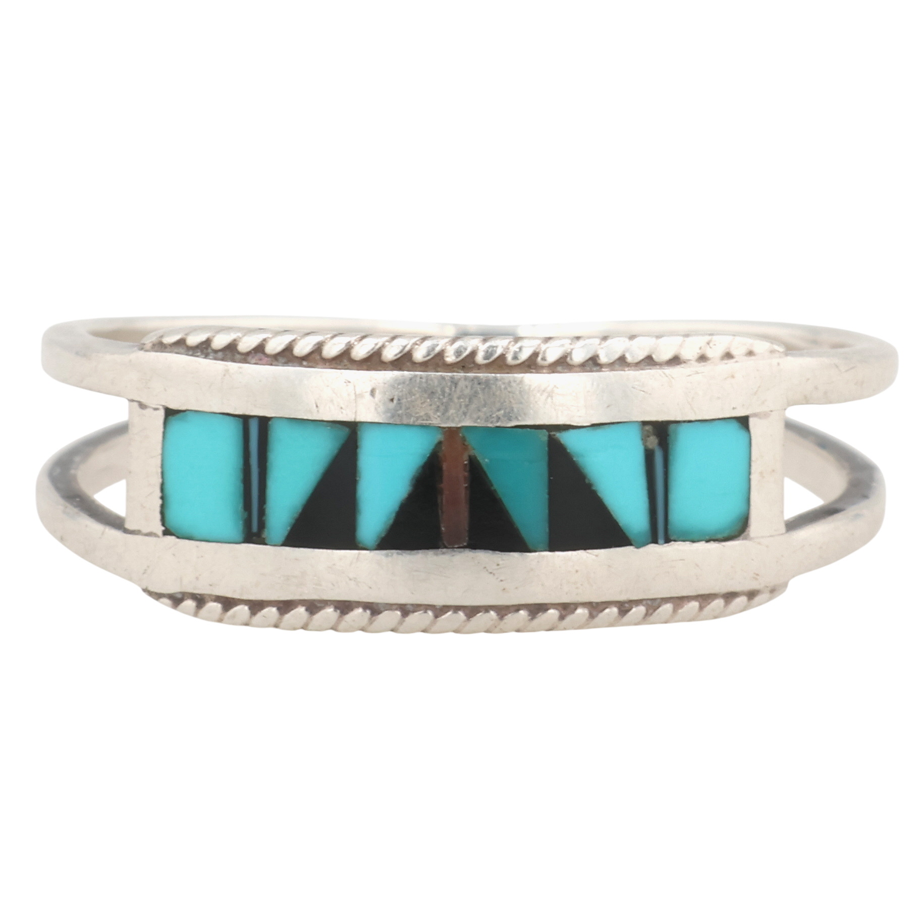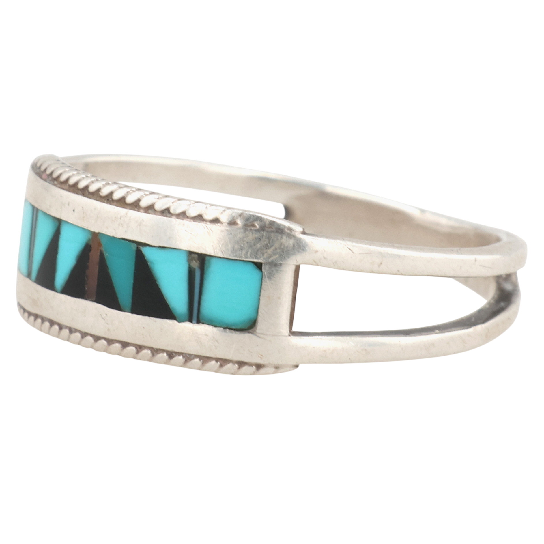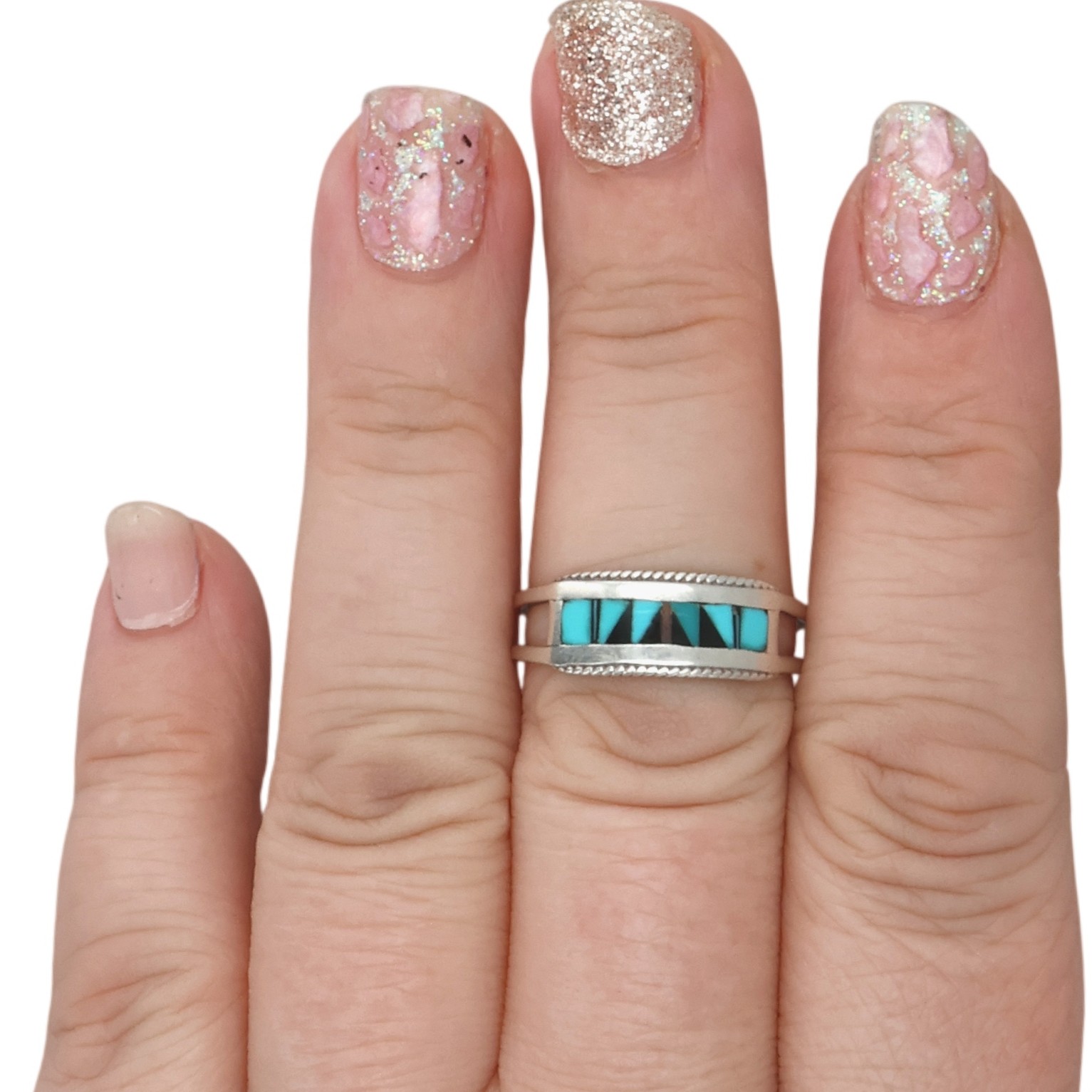 Rachel Weakkee Zuni Sterling Turquoise Onyx Inlay Ring 2.5g Sz 9