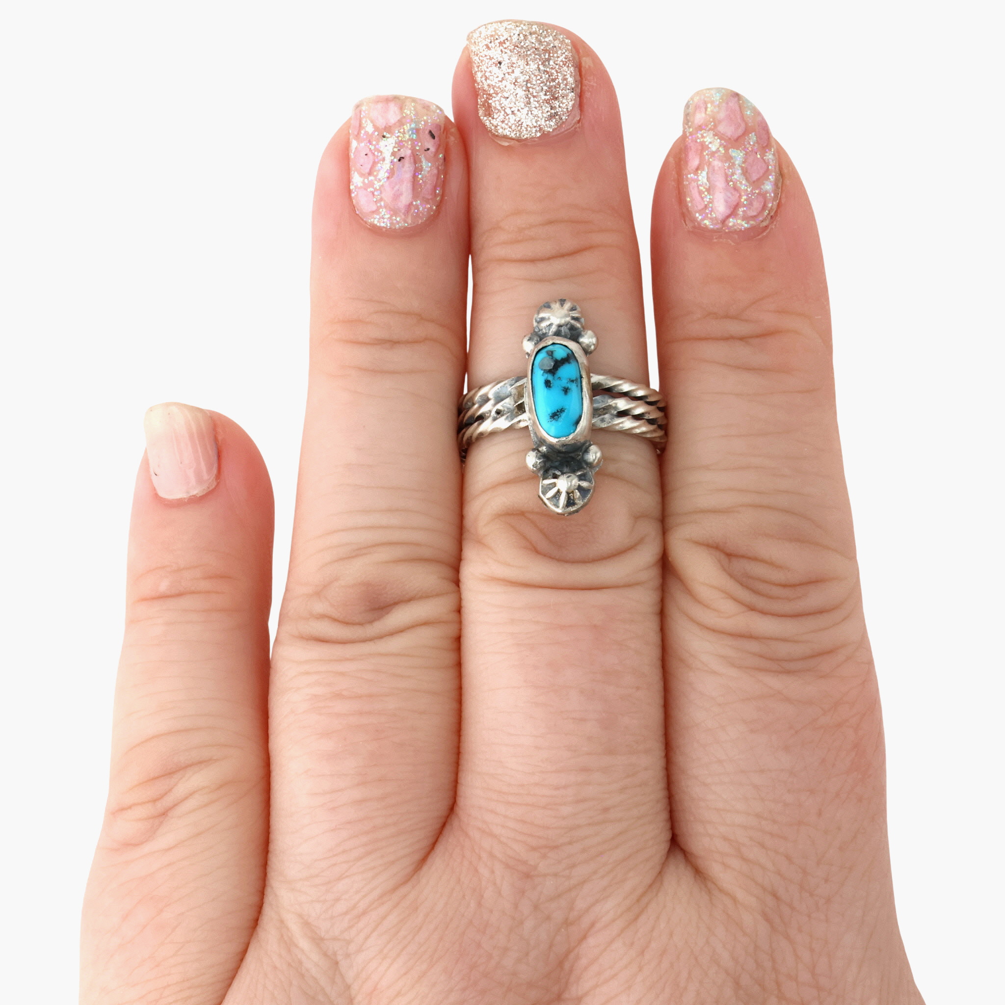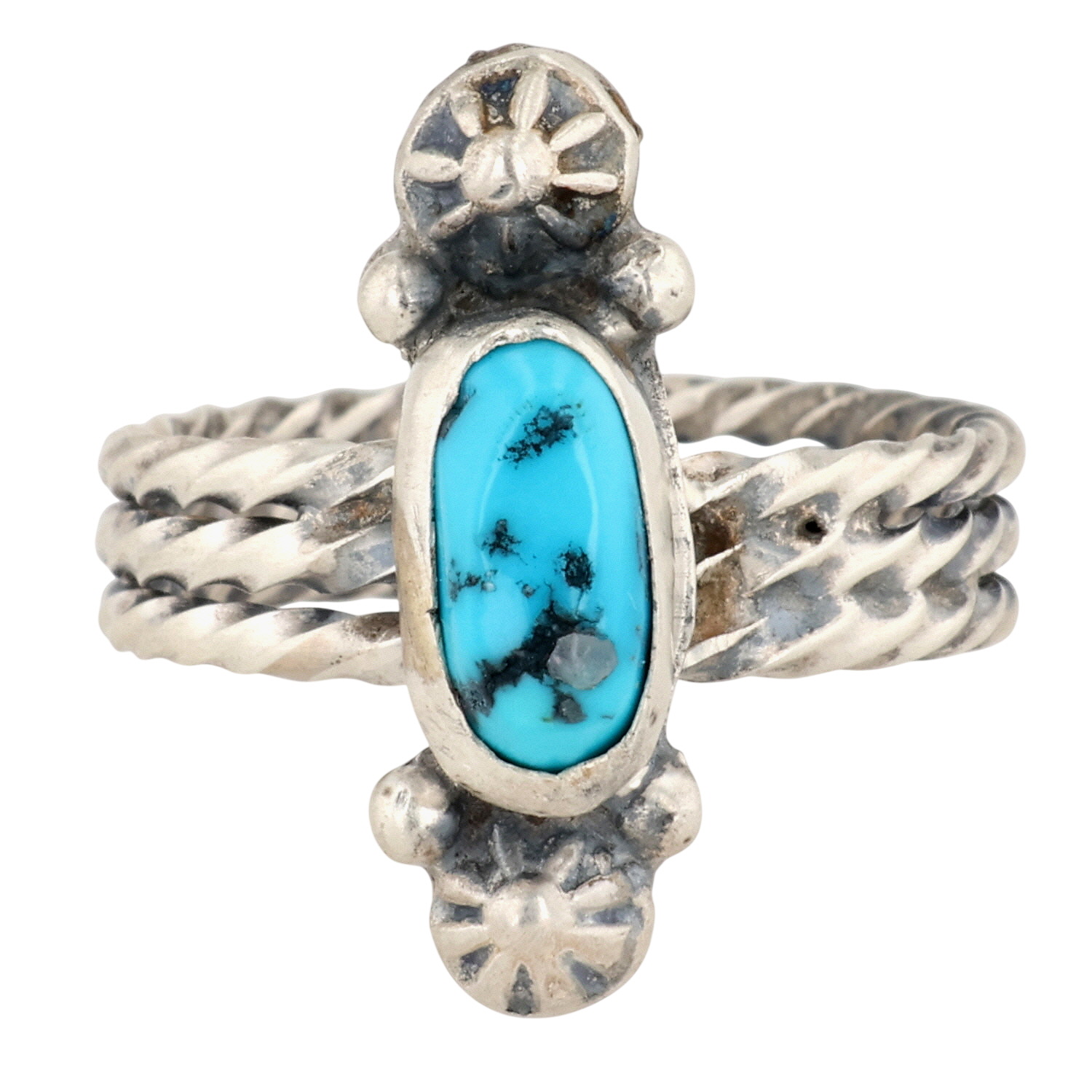 Signed E Navajo Sterling Turquoise Ring 5g Sz 7