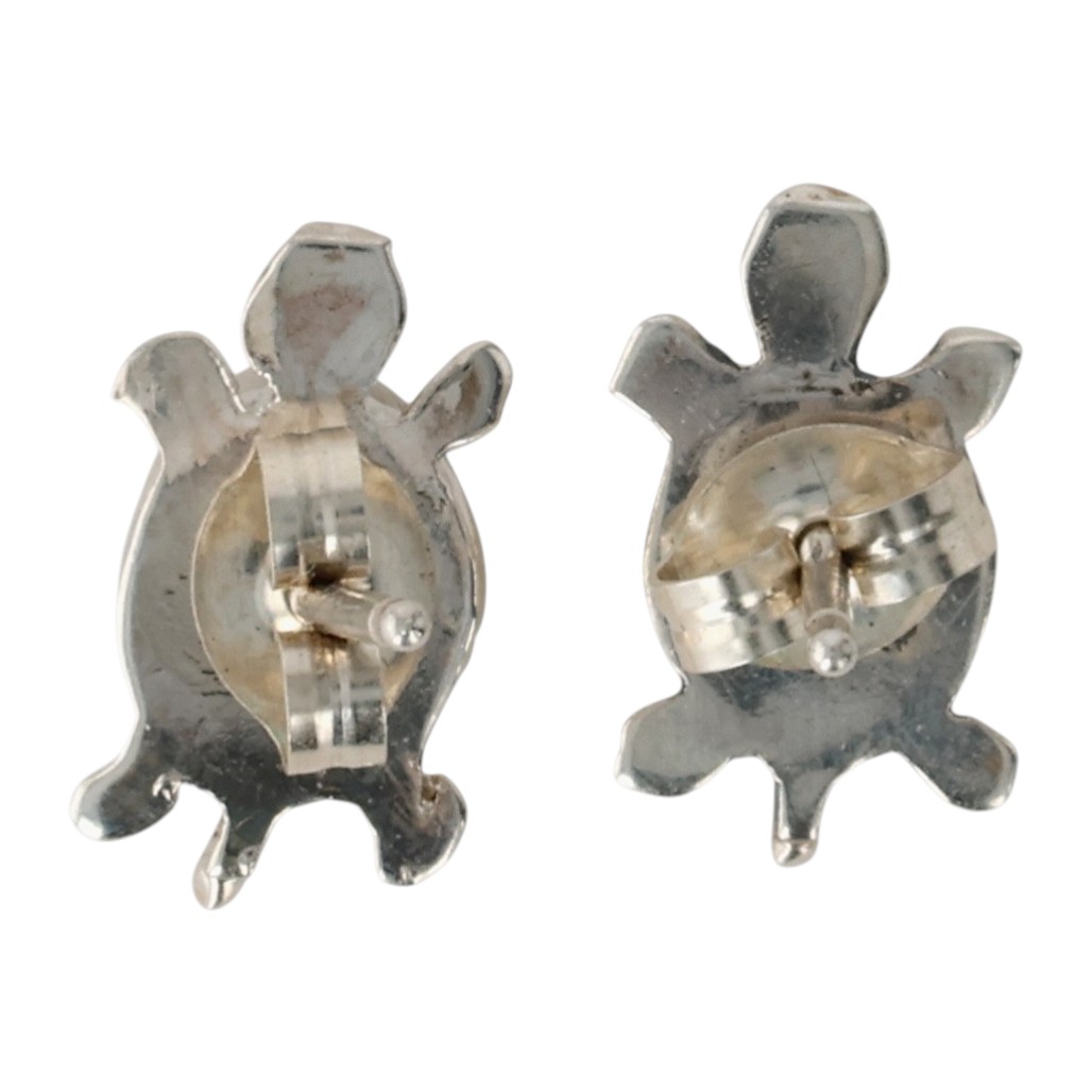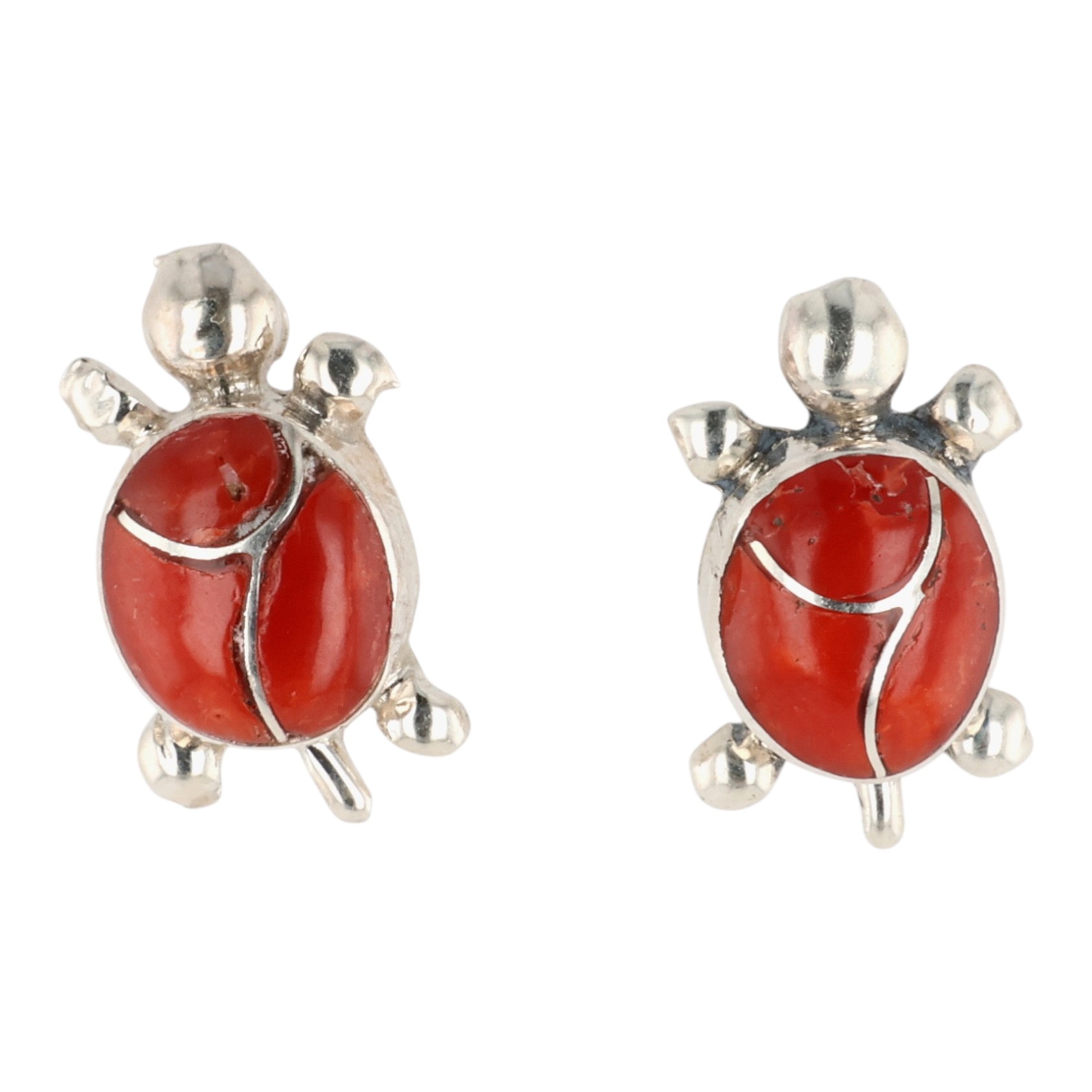 Rebecca Lalid Navajo Sterling Coral Inlay Turtle Earrings 1.5g