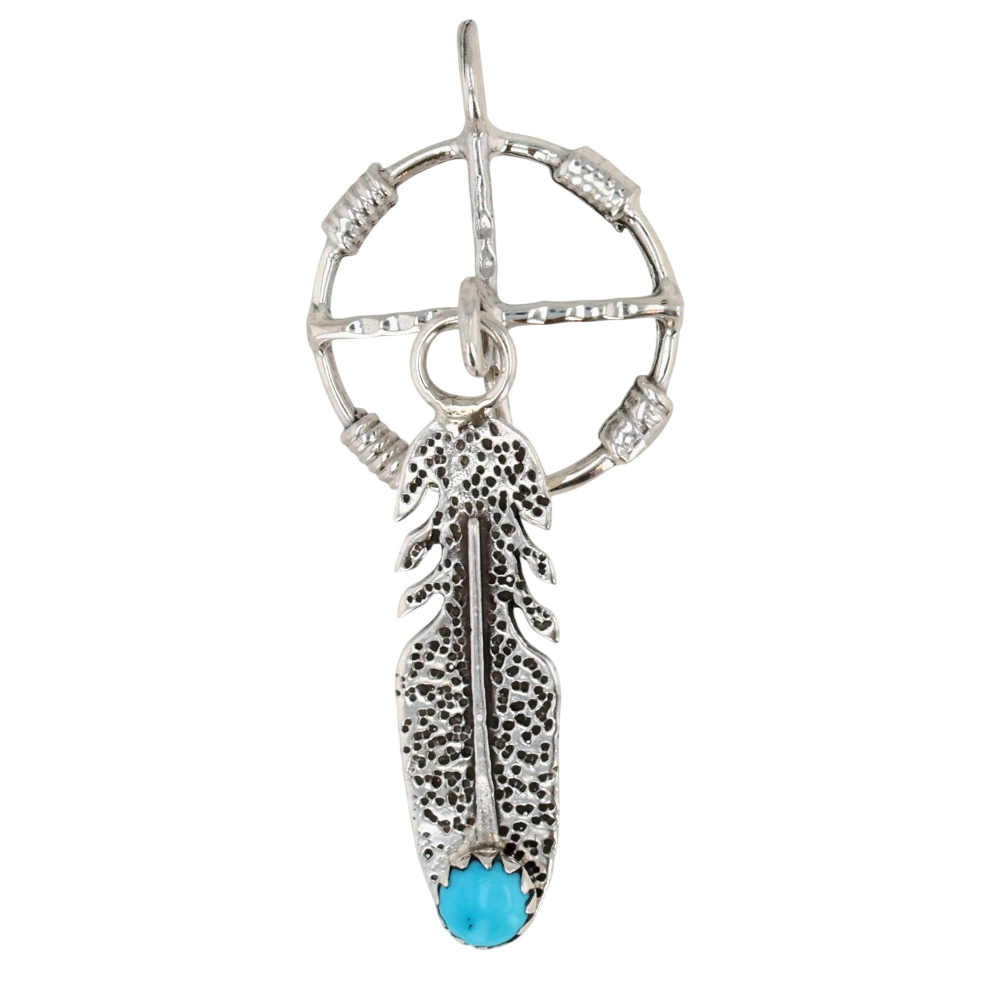 Kenny Lonjose Navajo Sterling Kingman Turquoise Medicine Wheel Pendant 2g