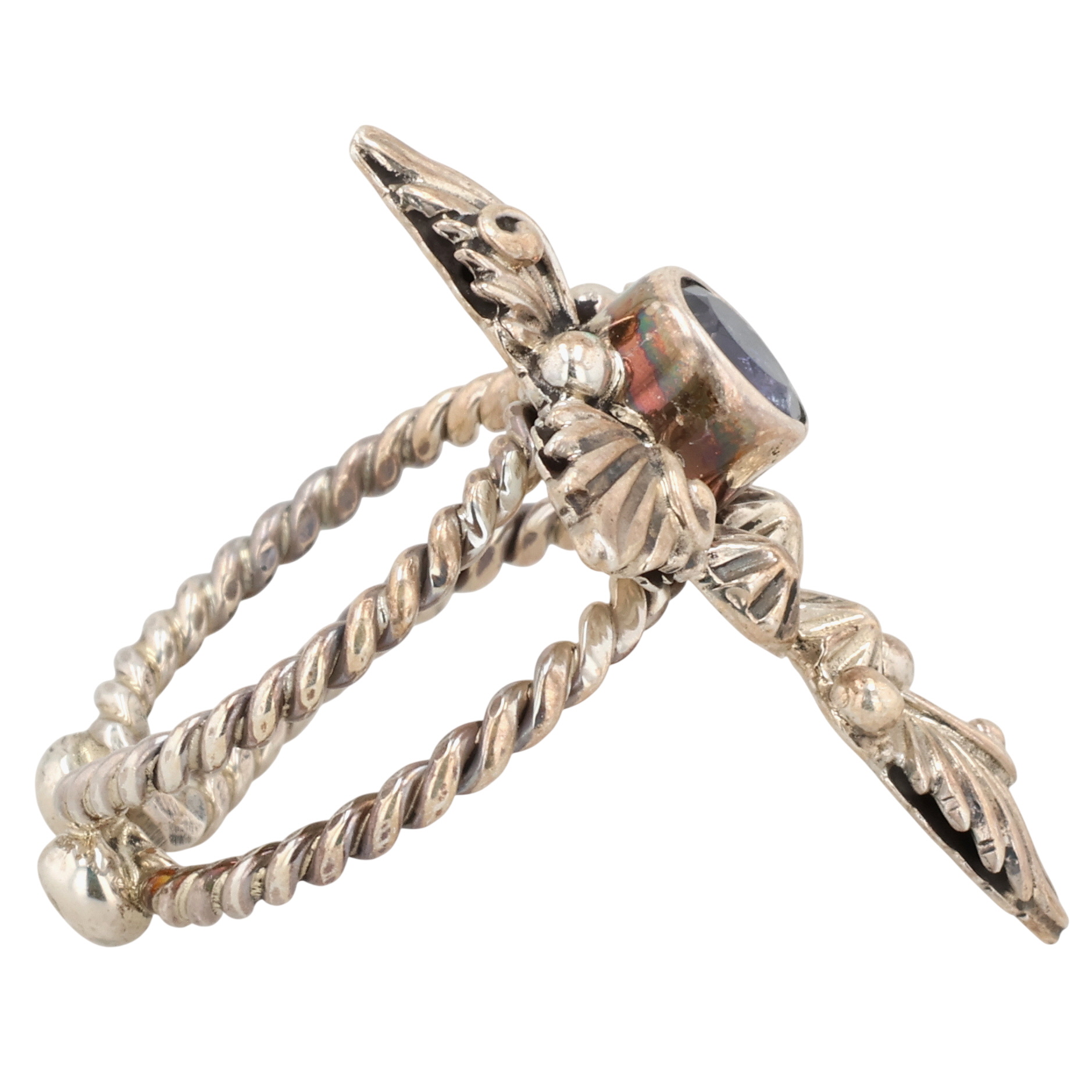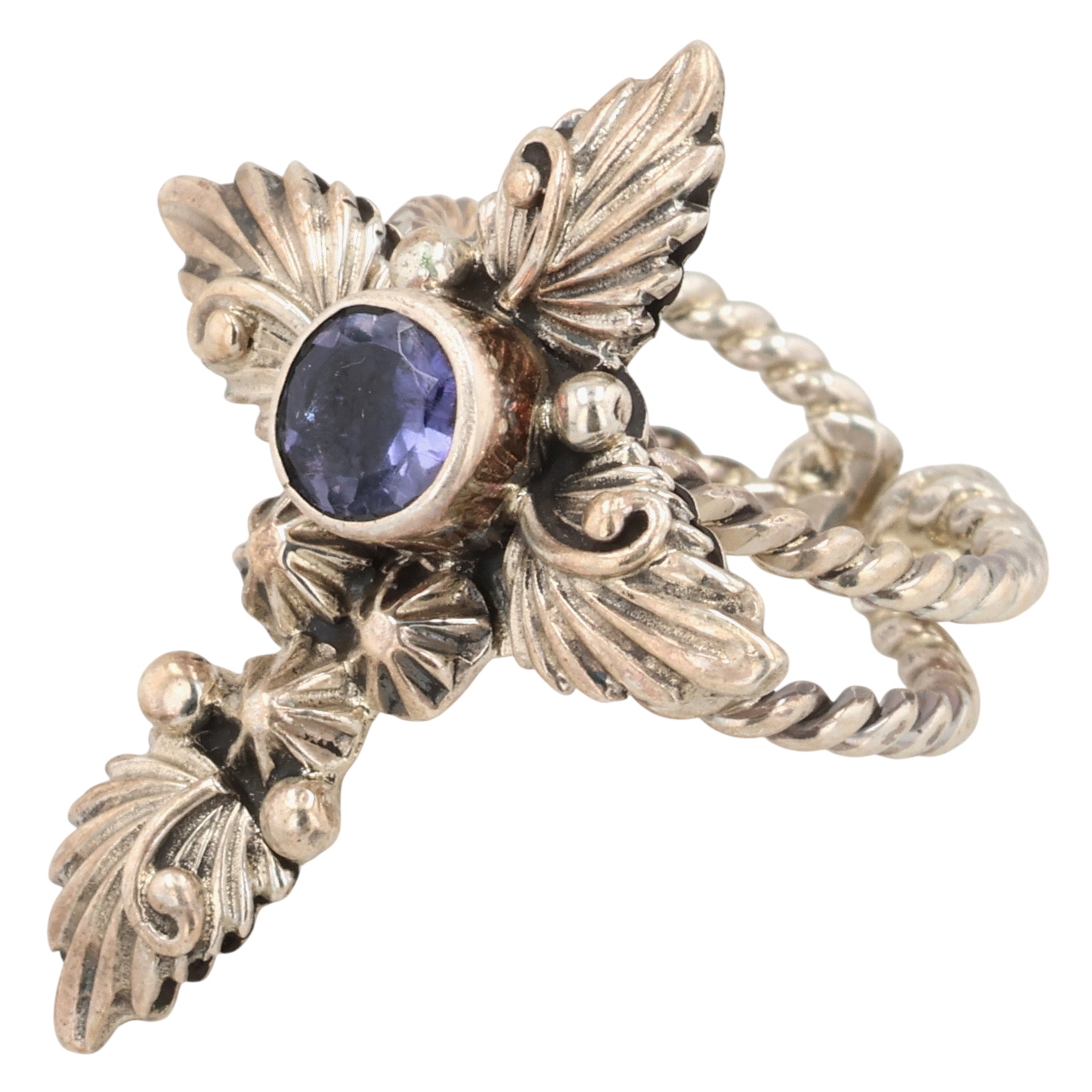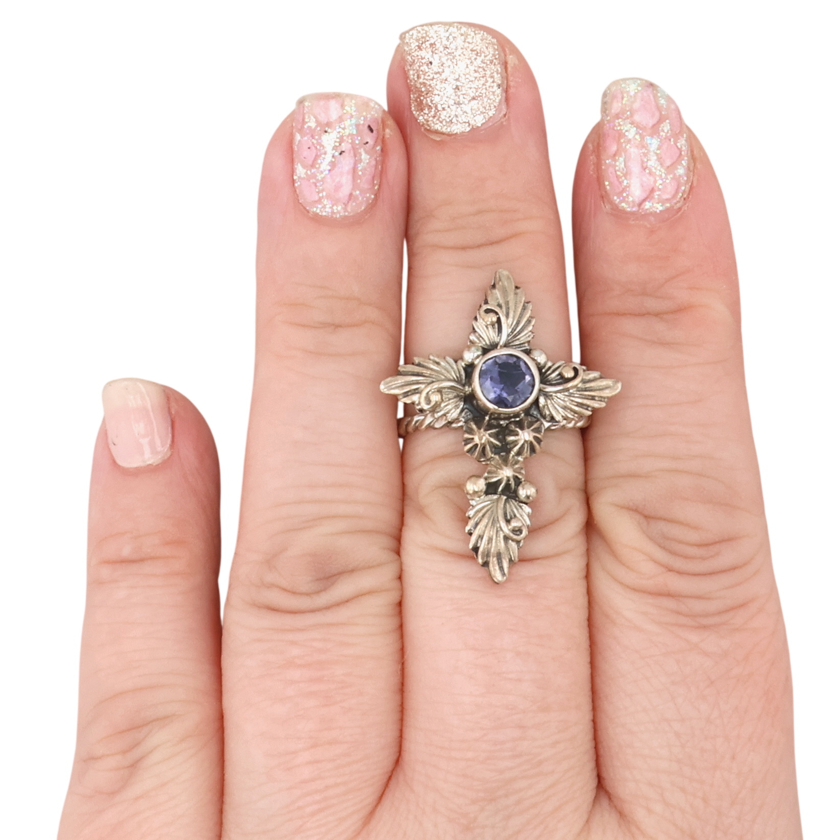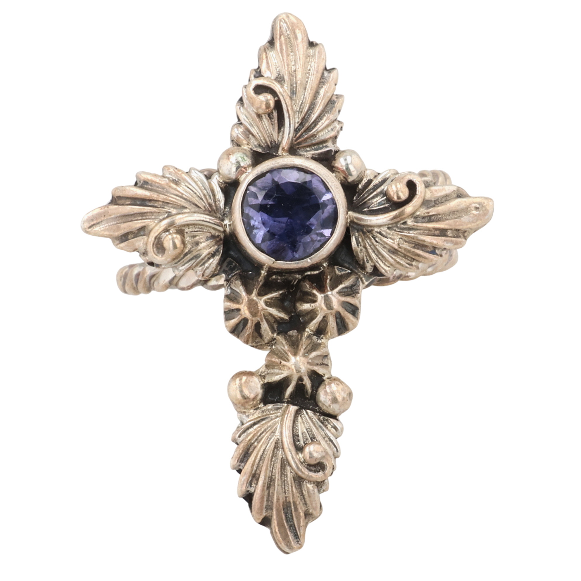 Loretta Delgarito Navajo Sterling Amethyst Cross Adjustable Ring 6.5g Sz 6.25