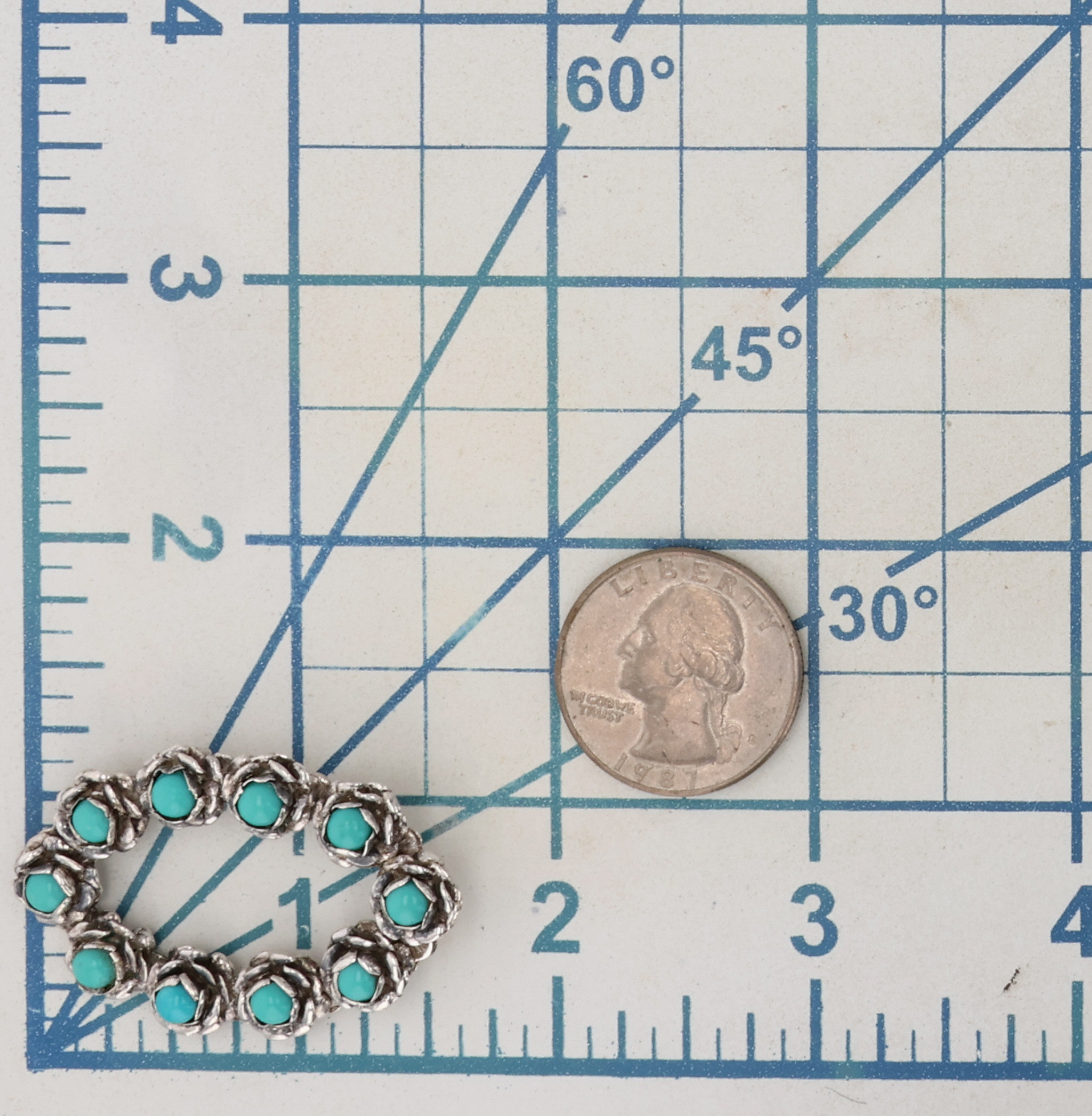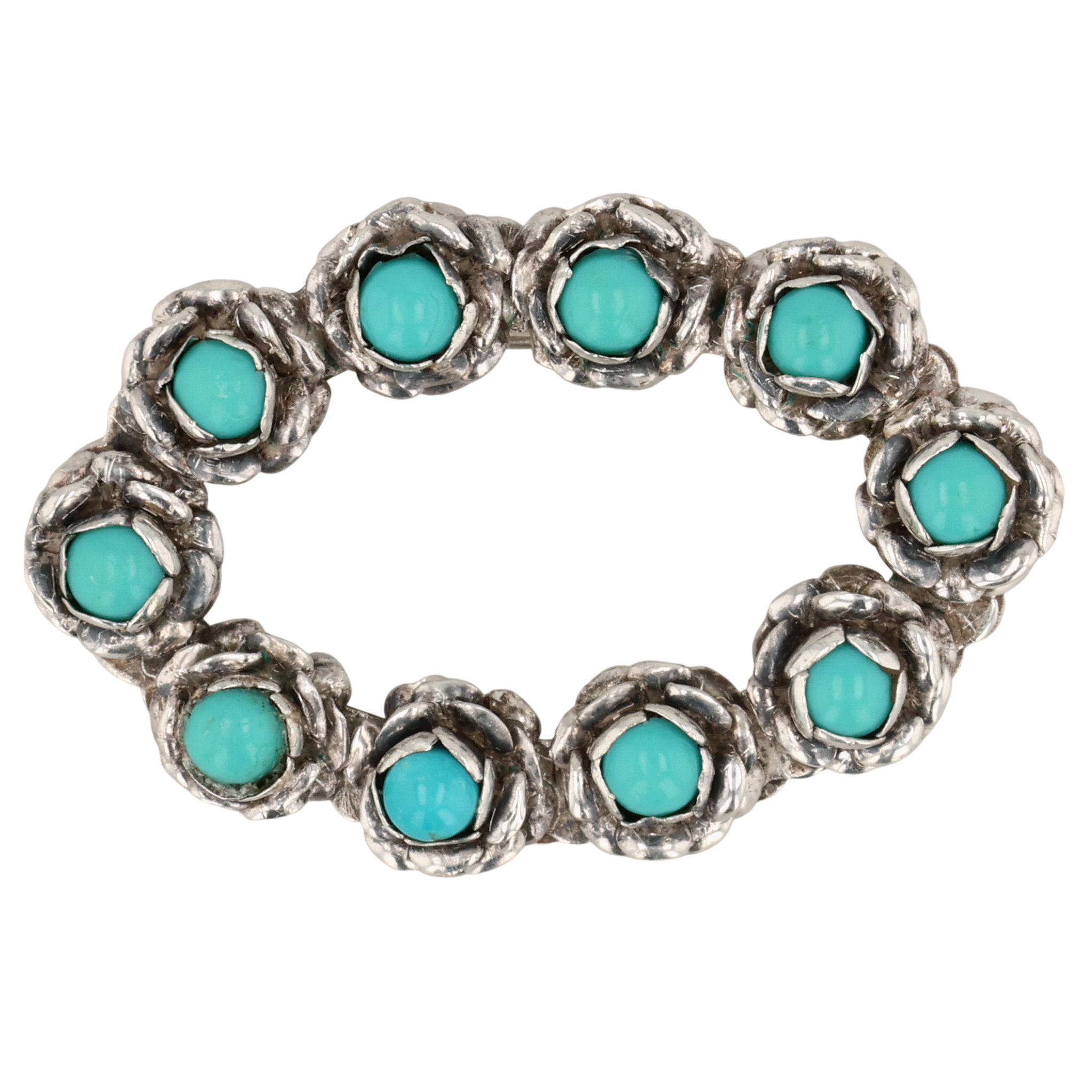 Vintage Mexico Sterling Turquoise Brooch 10.5g