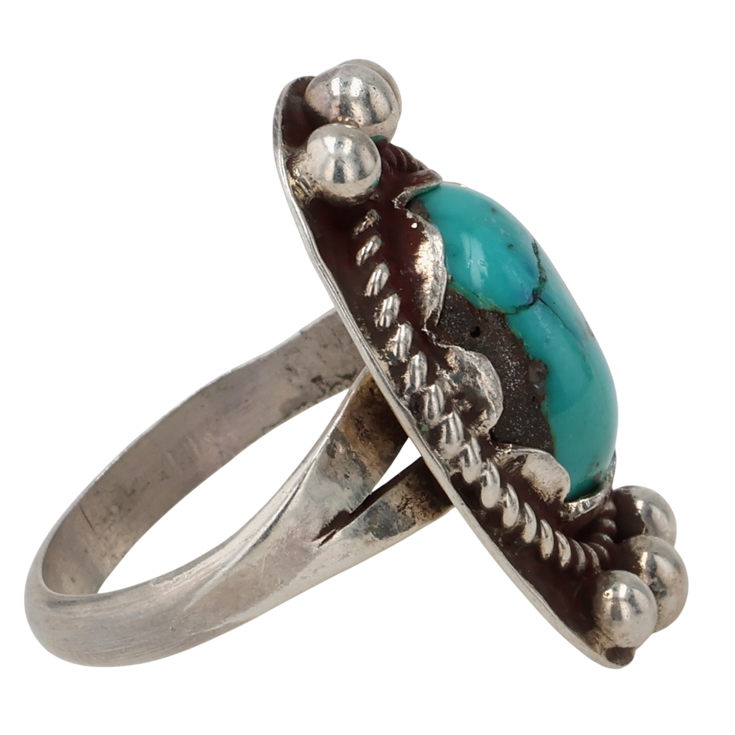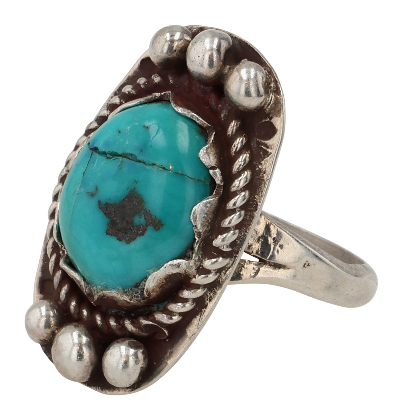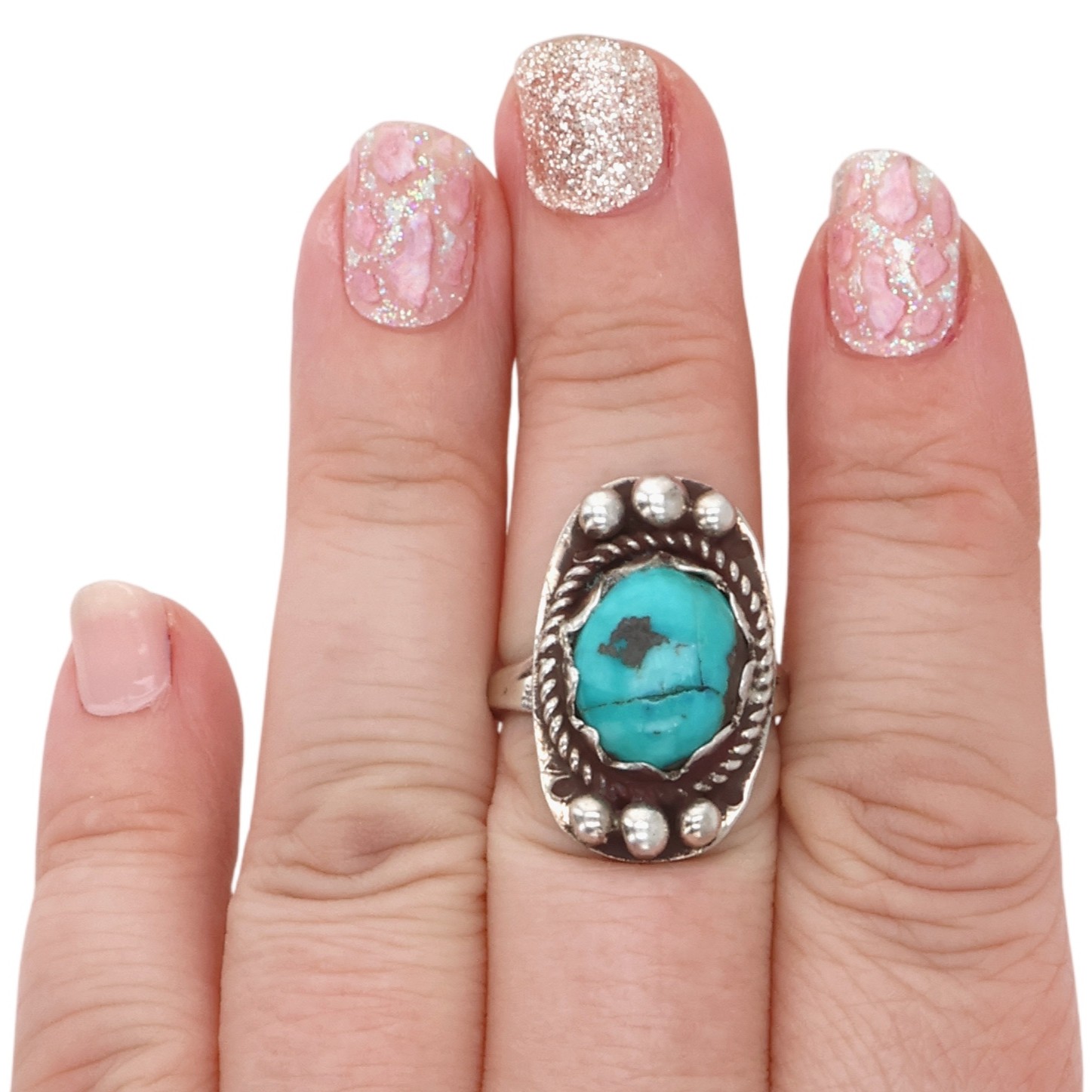 Vintage Navajo Sterling Turquoise Ring 8g Sz 7.5, as is cracked stone as shown in photos