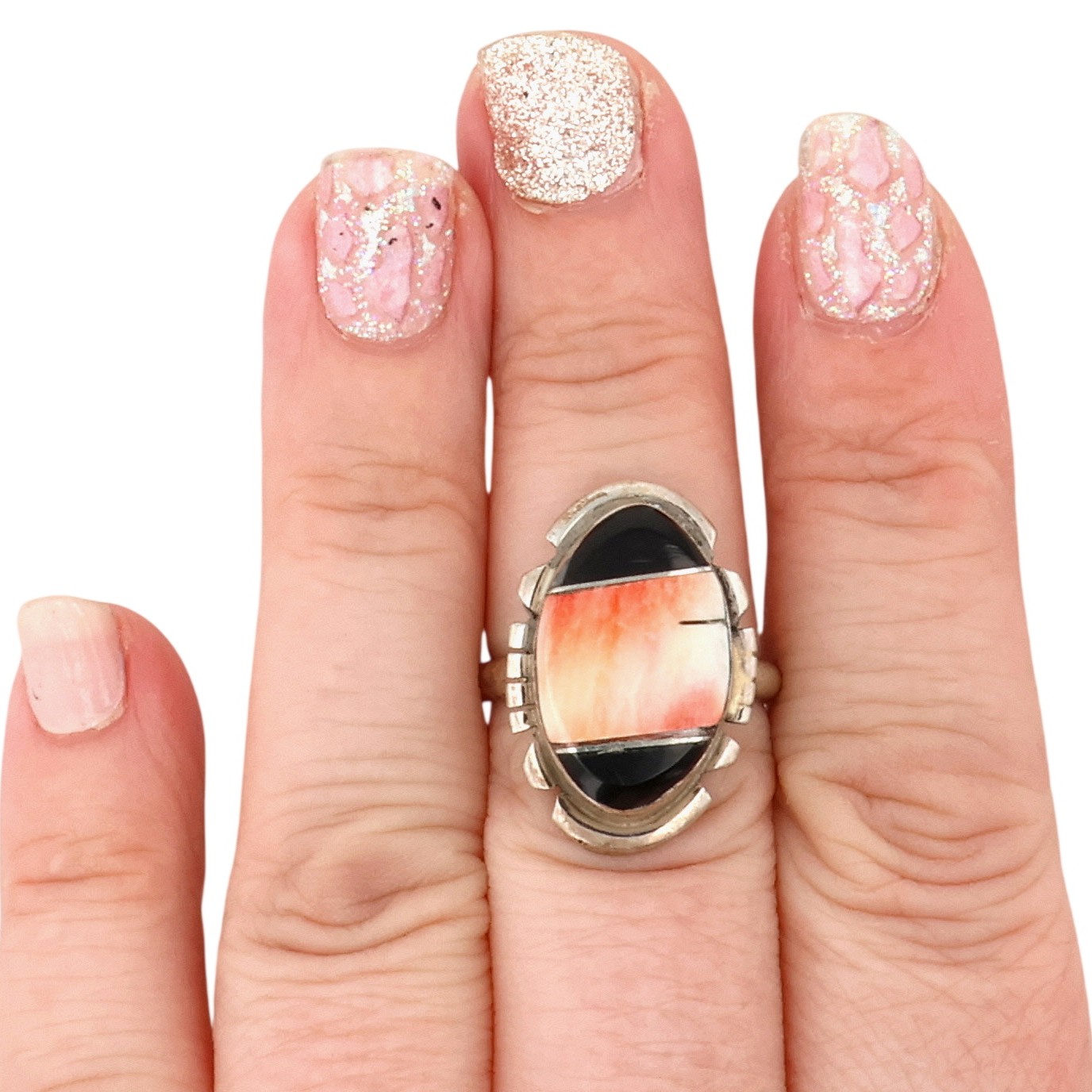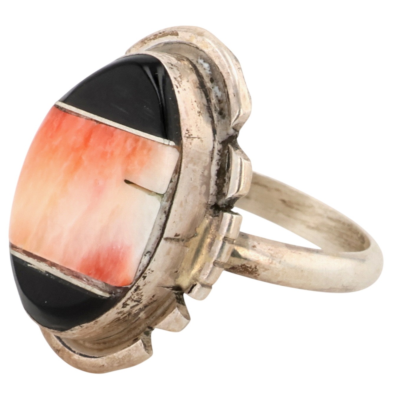 Brandon Etsitty Navajo Sterling Spiny Oyster Onyx Ring 5.5g Sz 7.5