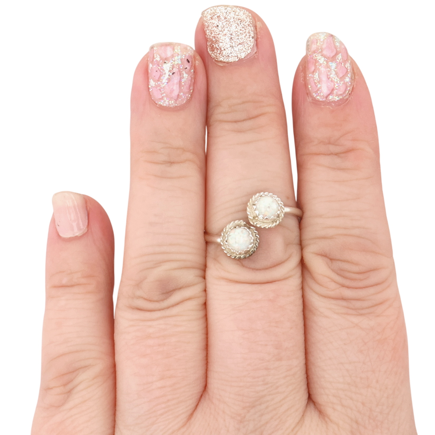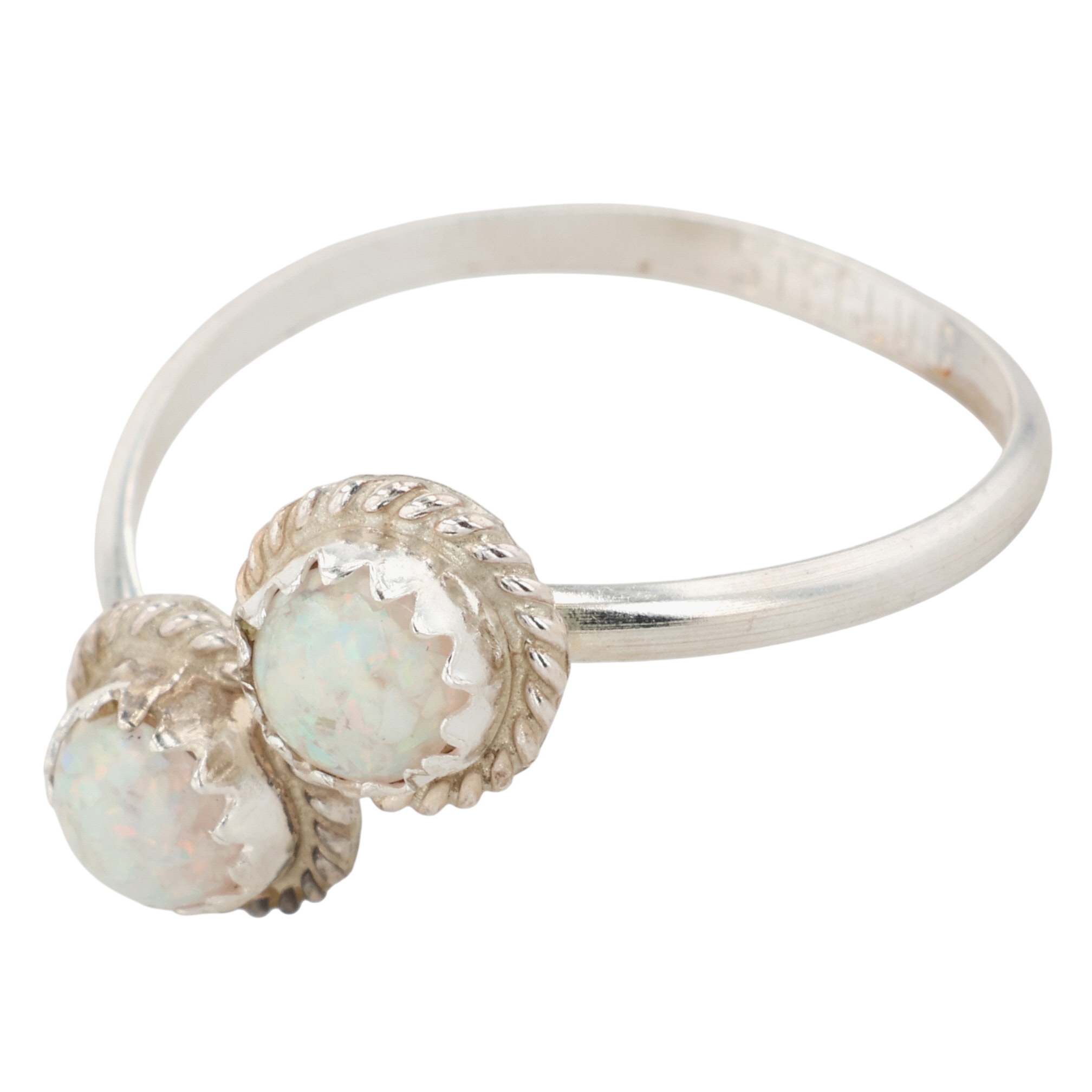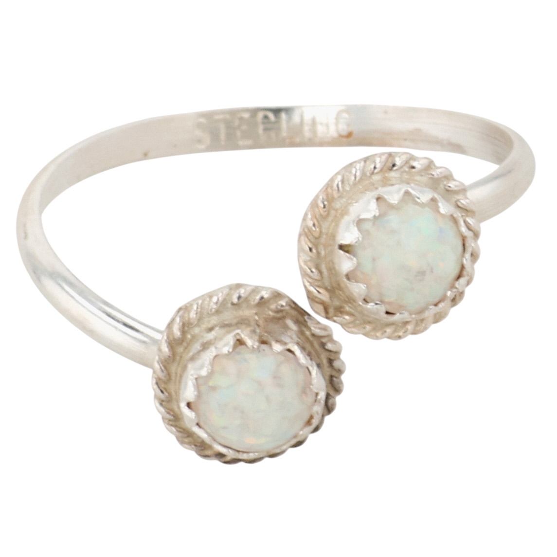 Esther White Navajo Sterling Opal Adjustable Ring 1.5g Sz 8