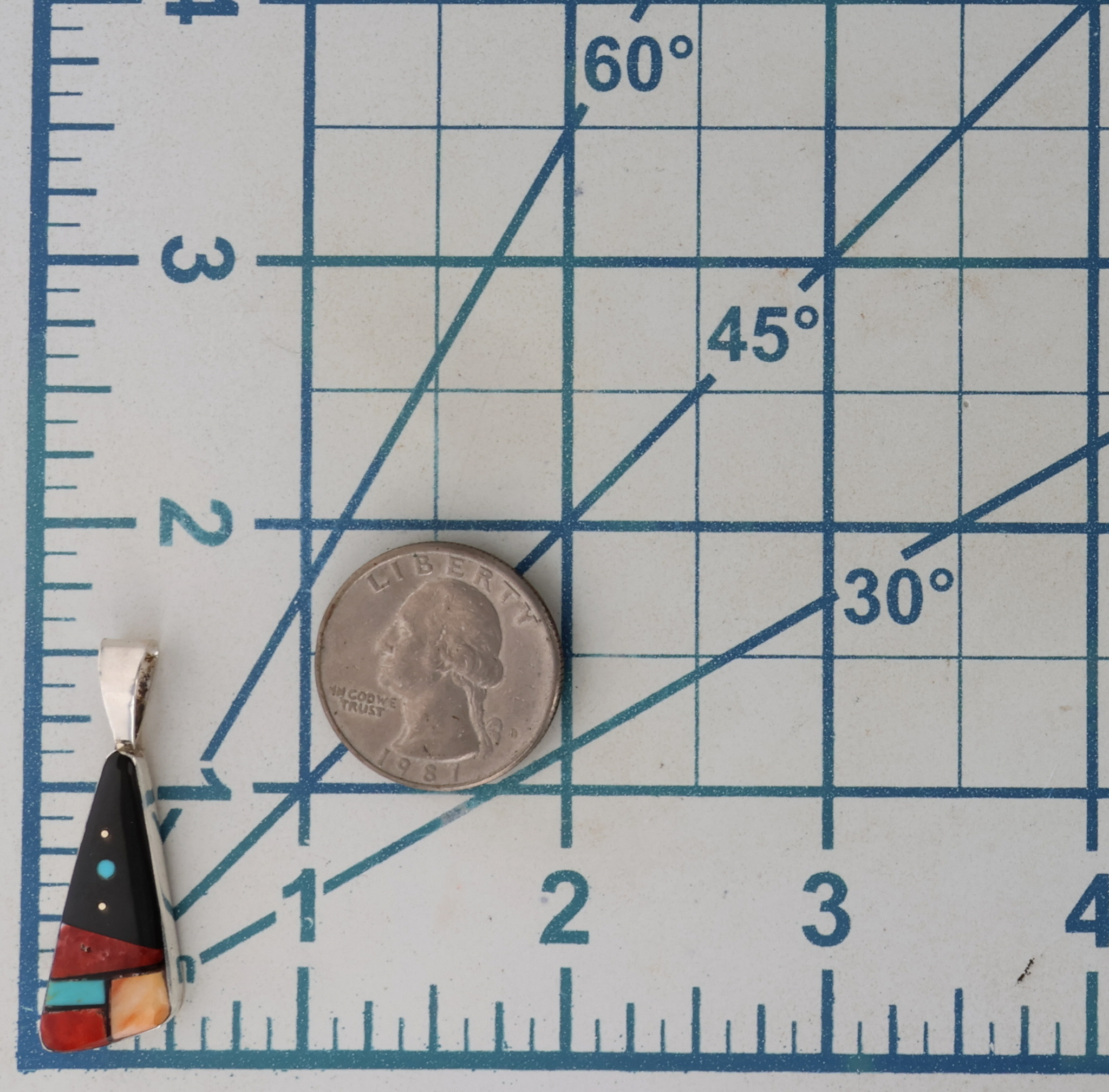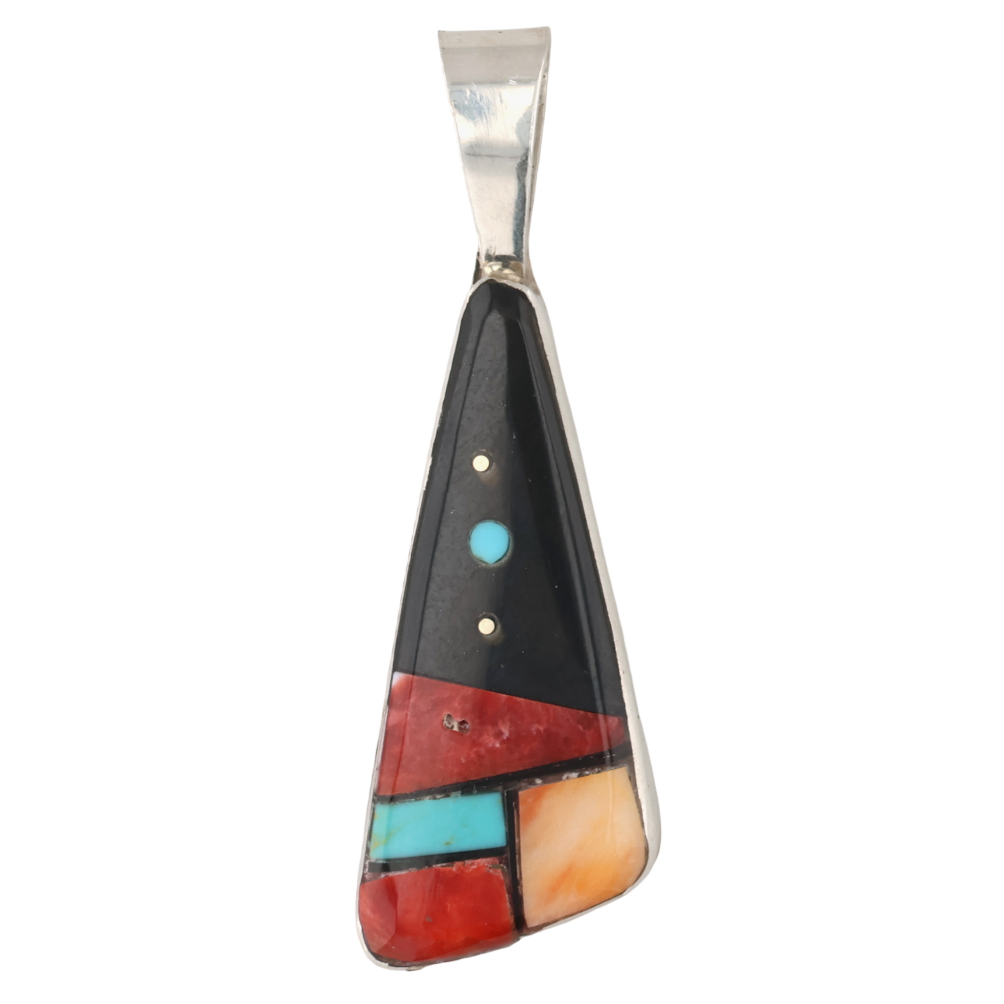 Germane Smith Navajo Sterling Spiny Oyster, Turquoise, Onyx Inlay Pendant 2.5g