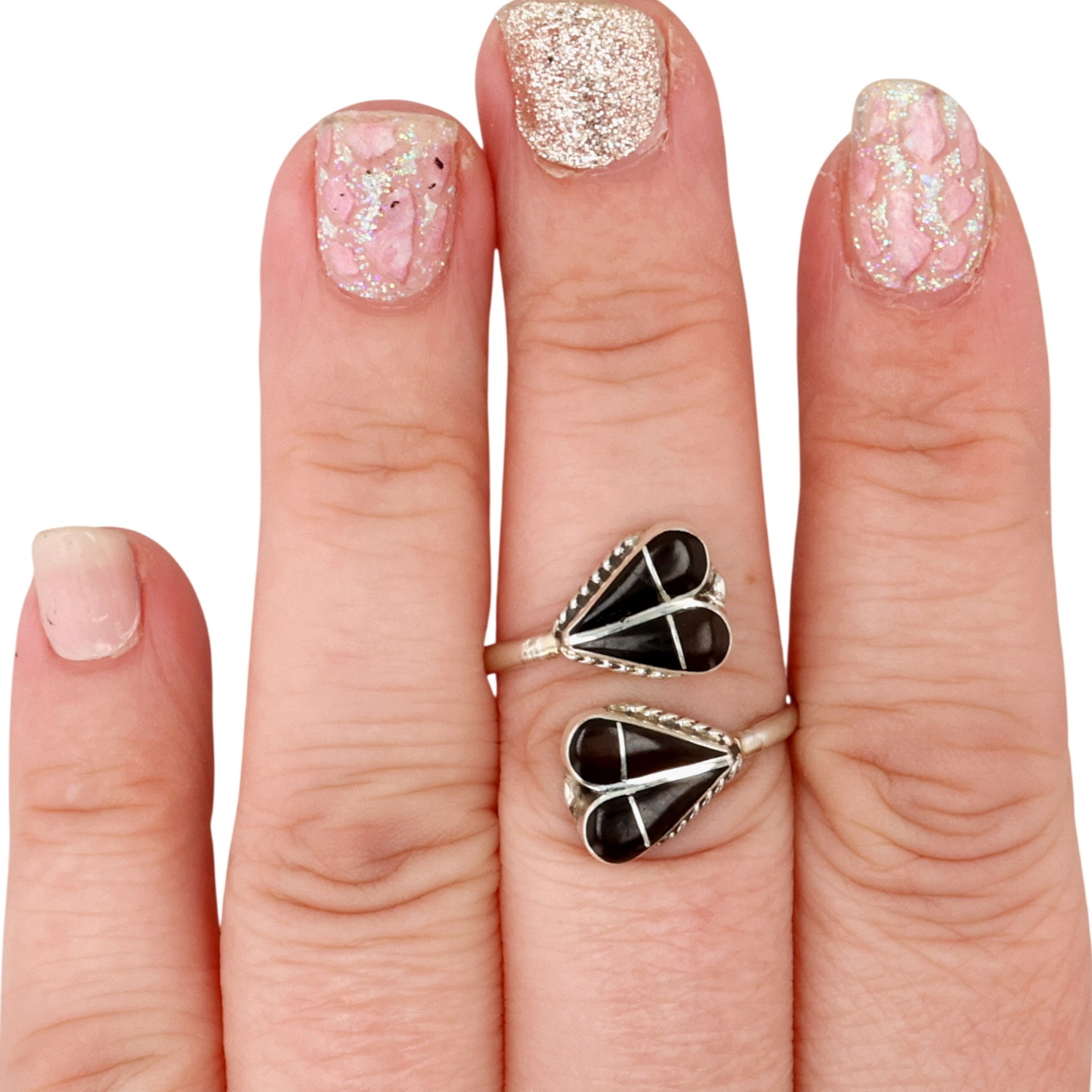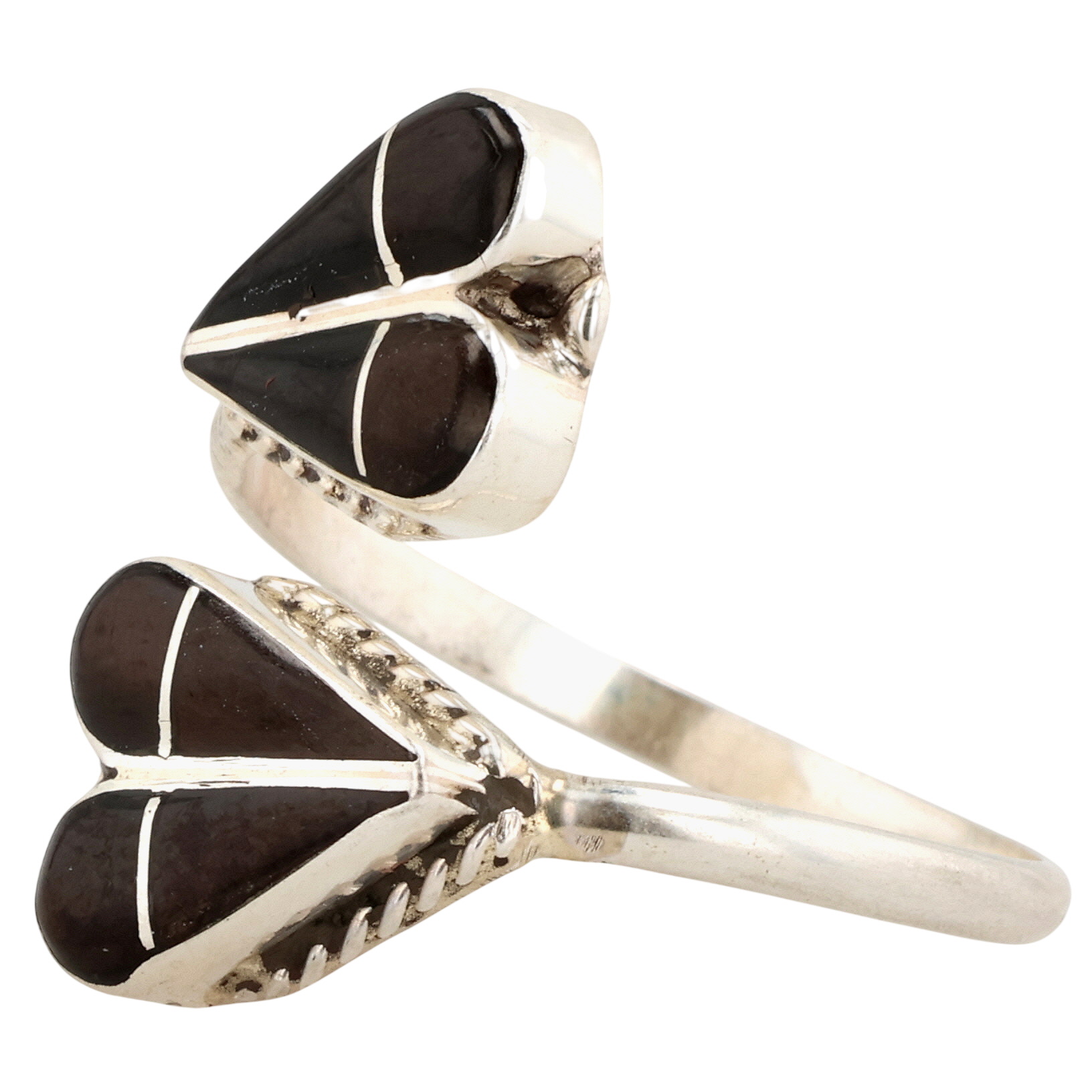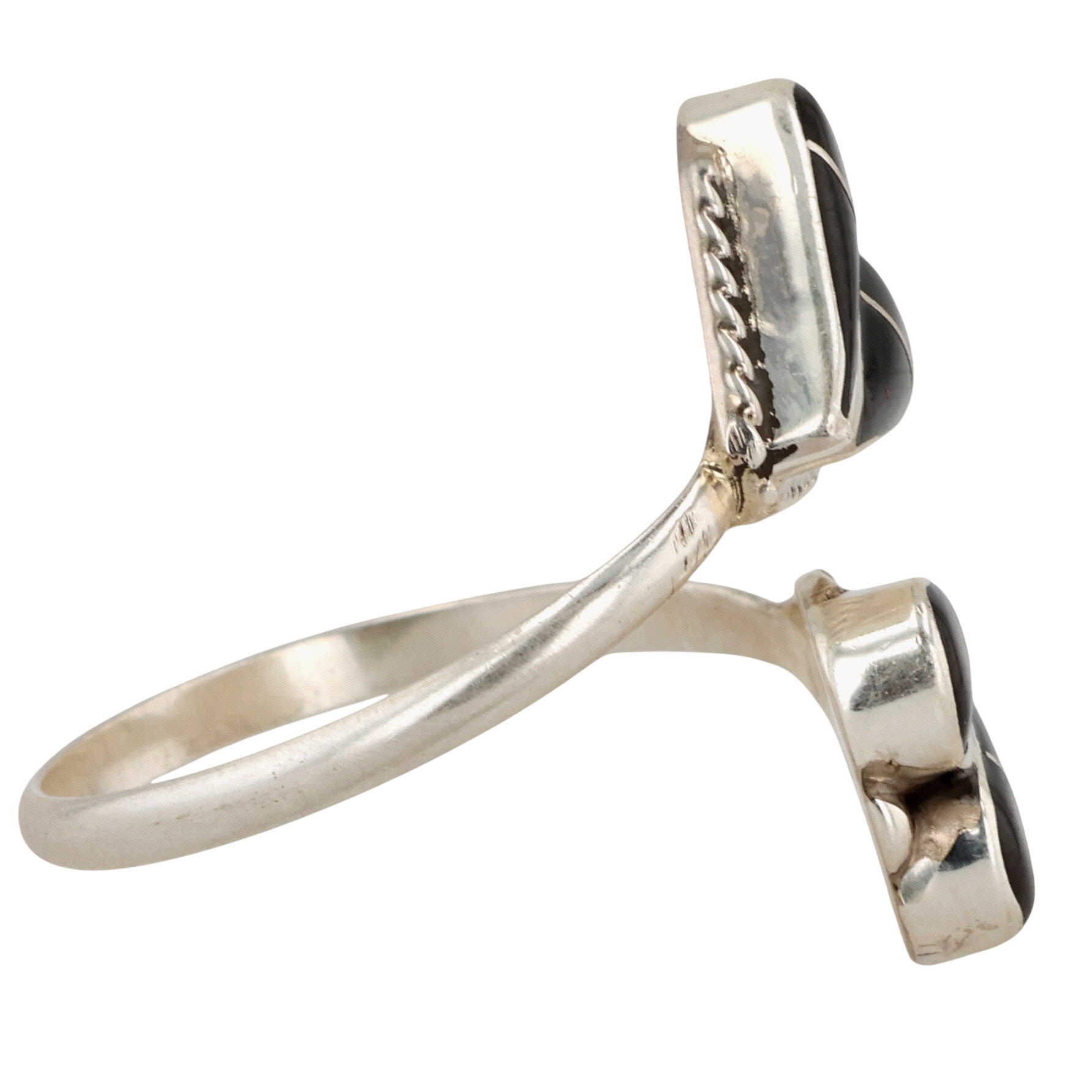 Velda Nastacio Zuni Sterling Onyx Inlay Wrap Adjustable Ring 2.5g Sz 9.75