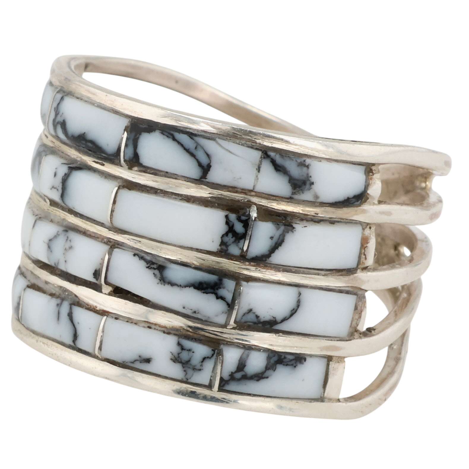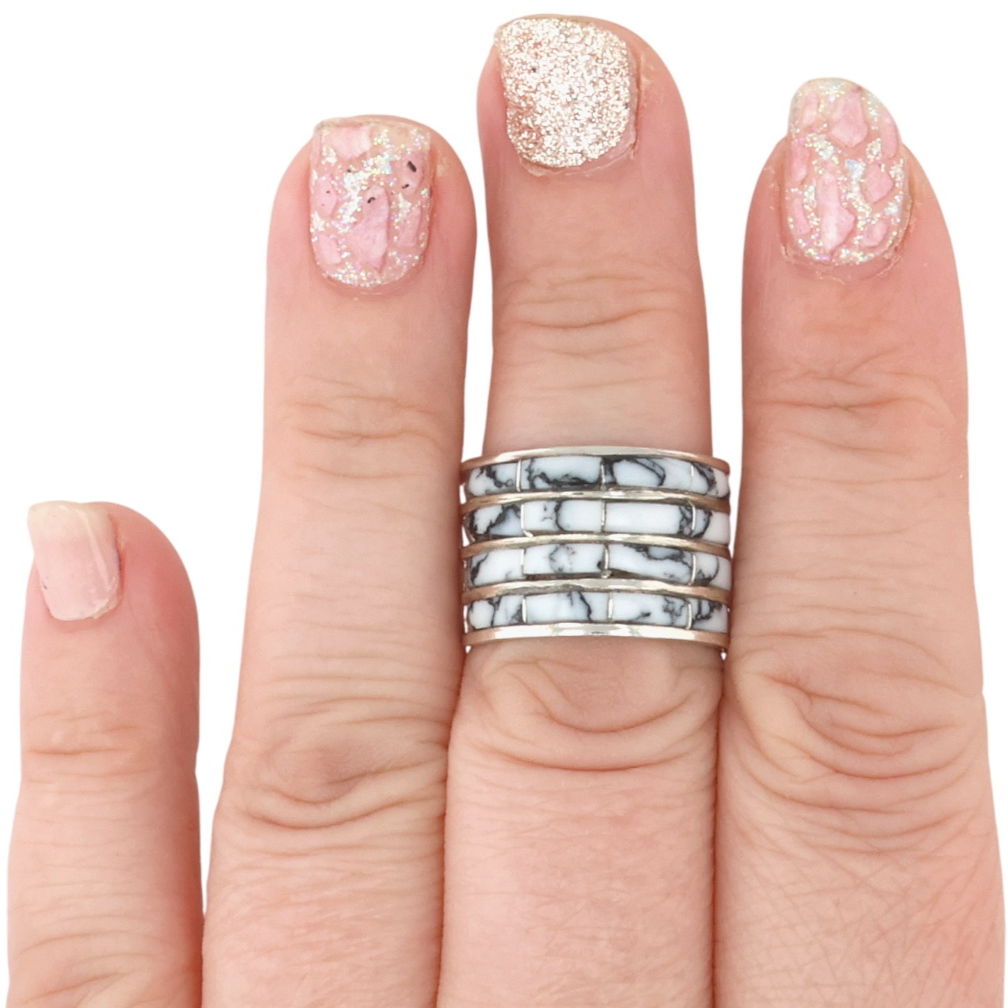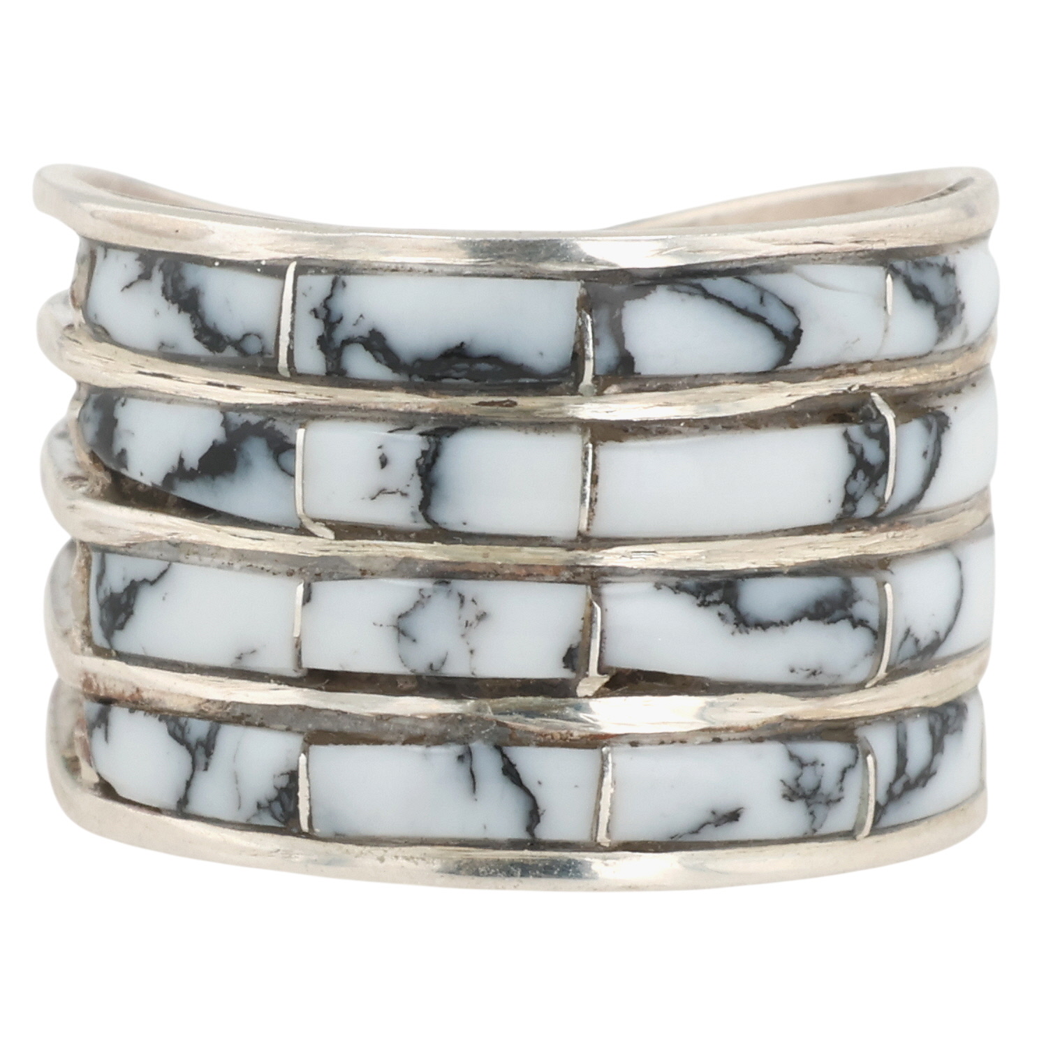 Claresse Kylestewa Navajo White Buffalo Turquoise Inlay Ring 4g Sz 7.25