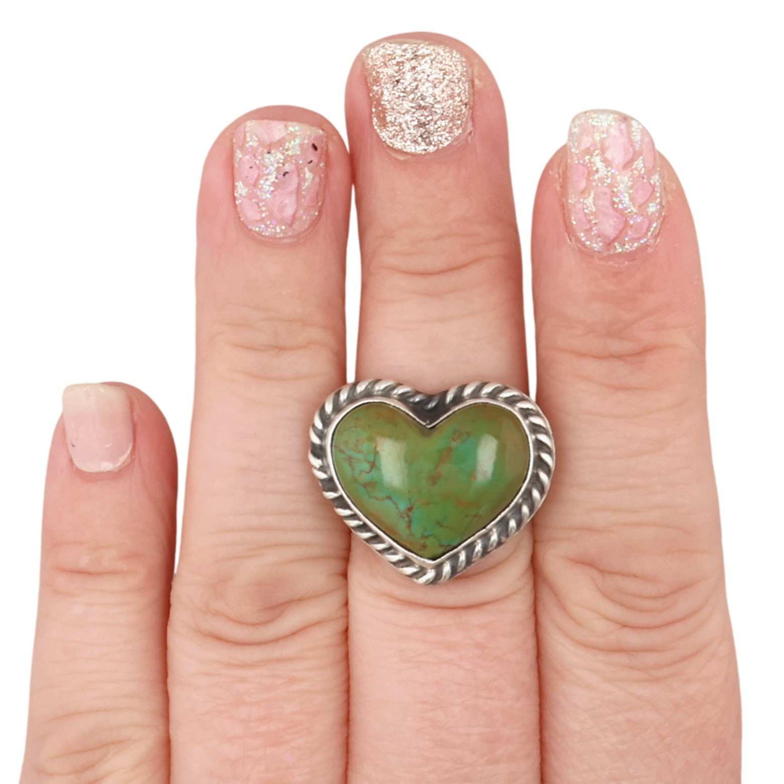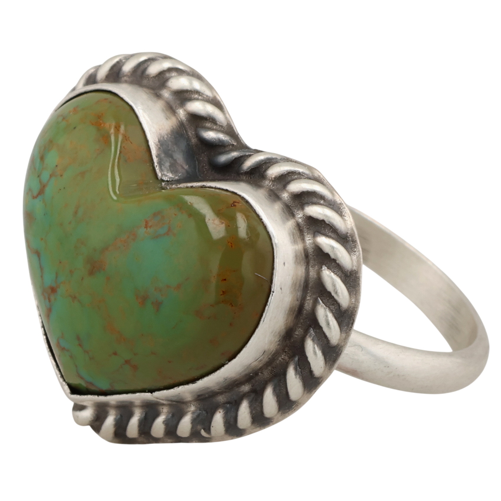 Johnny Dixon Navajo Sterling Kingman Turquoise Heart Adjustable Ring