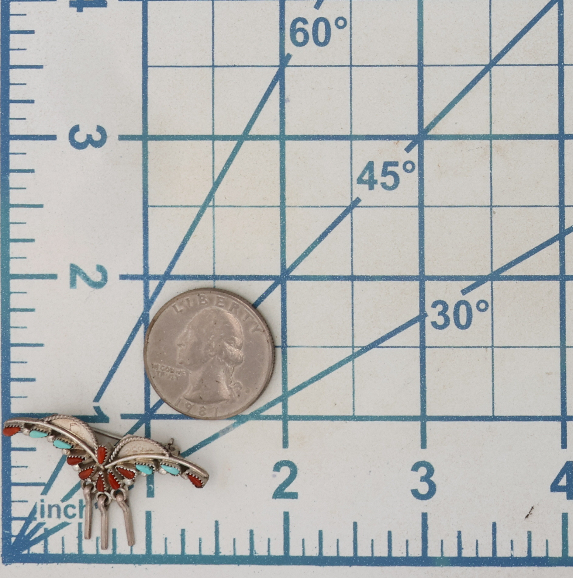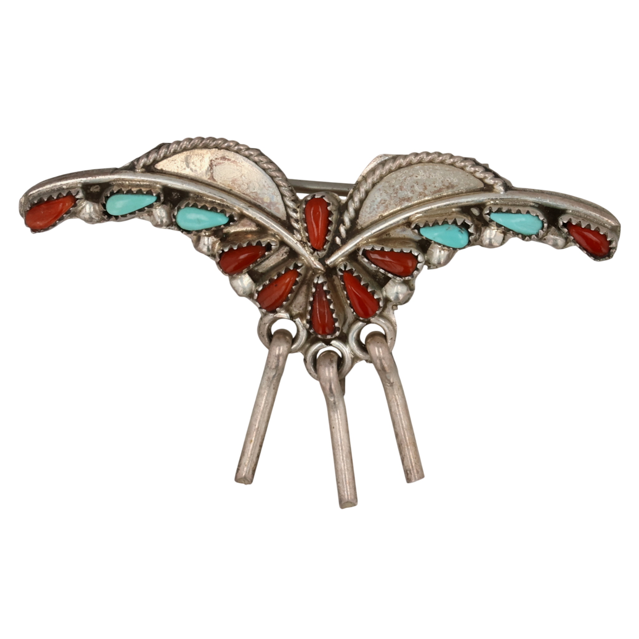 Vintage Navajo Sterling Coral Turquoise Brooch 2.5g