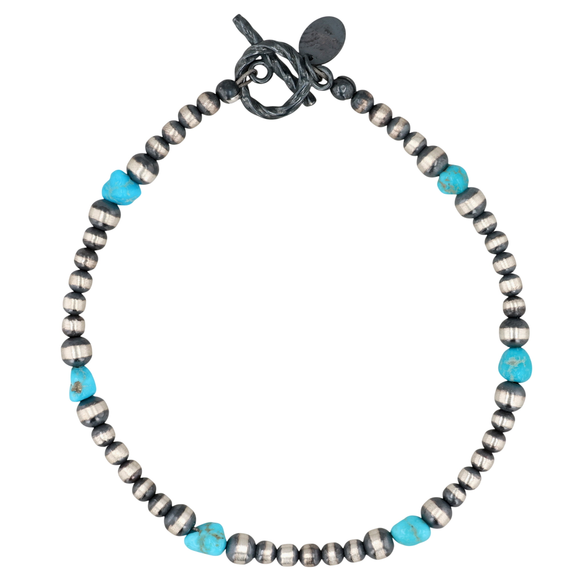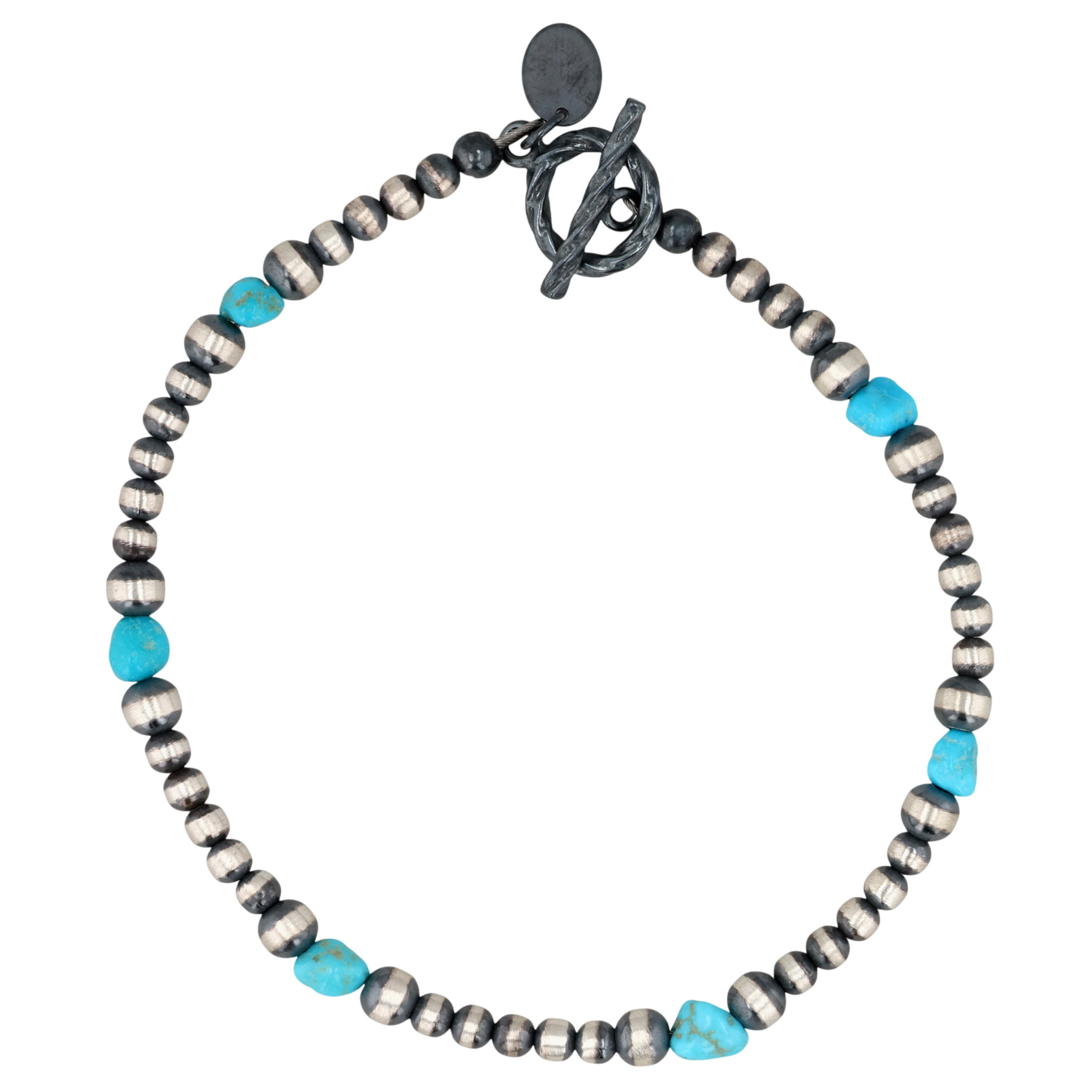 Navajo Sterling Turquoise Bead Bracelet 4g