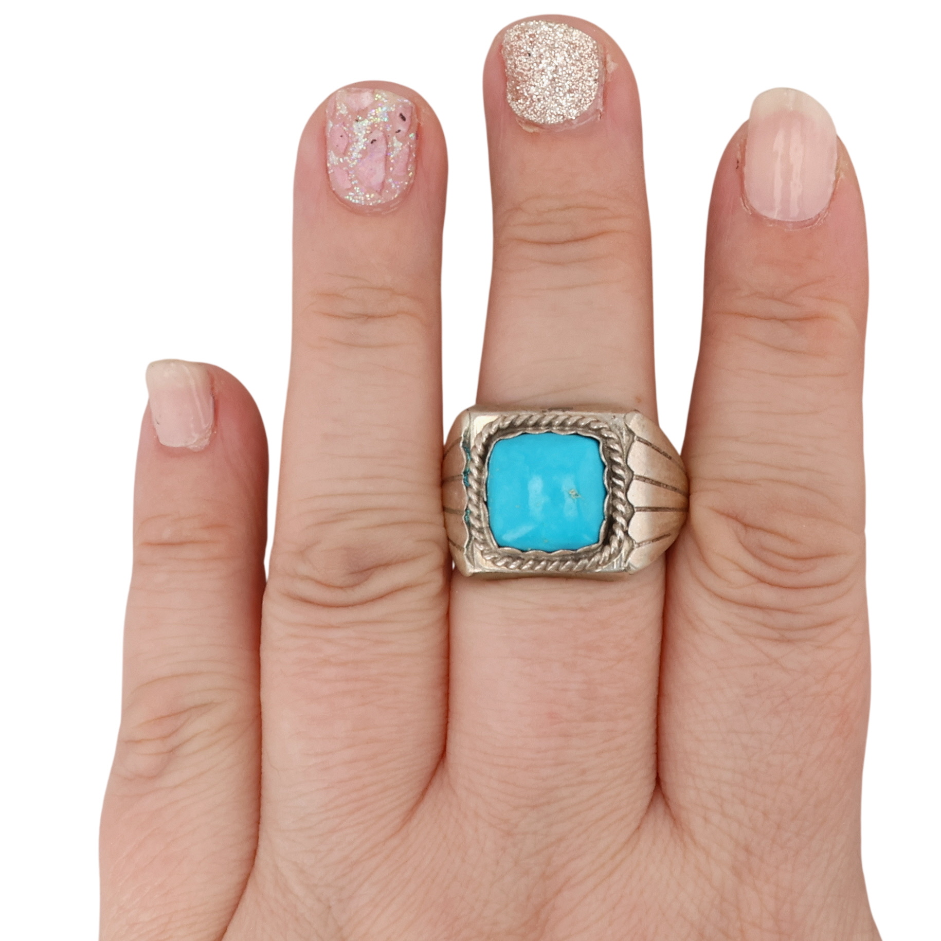 Alvery Smith Navajo Sterling Sleeping Beauty Turquoise Ring 20g Sz 10