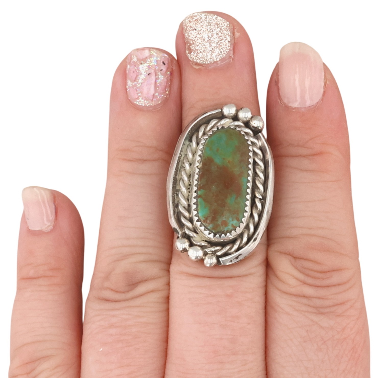 Vintage Navajo Sterling Turquoise Ring 9g Sz 7.5