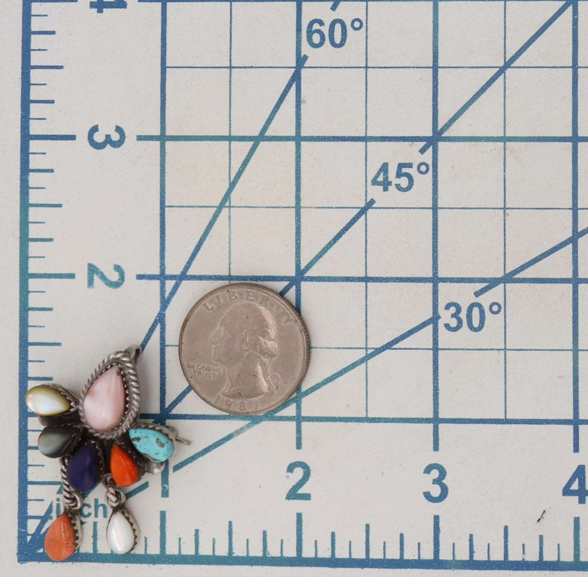 Thompson Allapowa Zuni Sterling Turquoise, Onyx, Coral, Spiny Oyster, Mother of Pearl, Abalone Brooch Pendant 7g