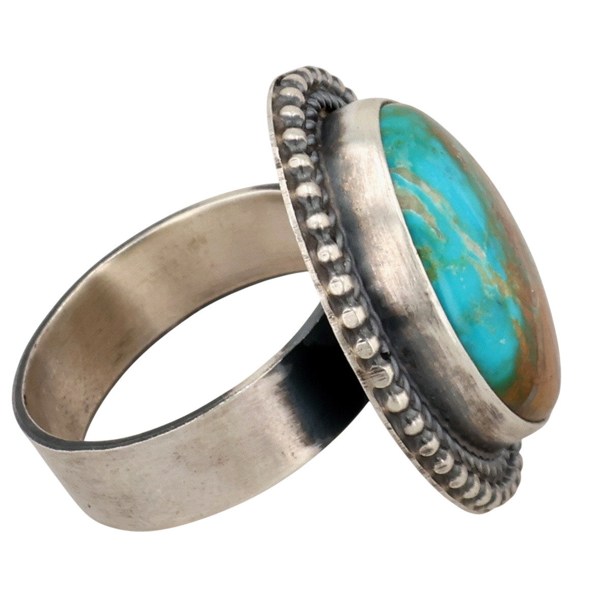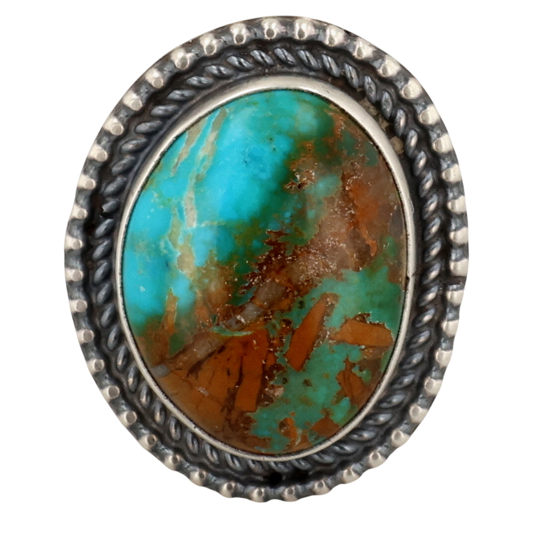 Antoinette Martinez Navajo Sterling Sonoran Gold Turquoise Adjustable Ring 12.5g Sz 9.5