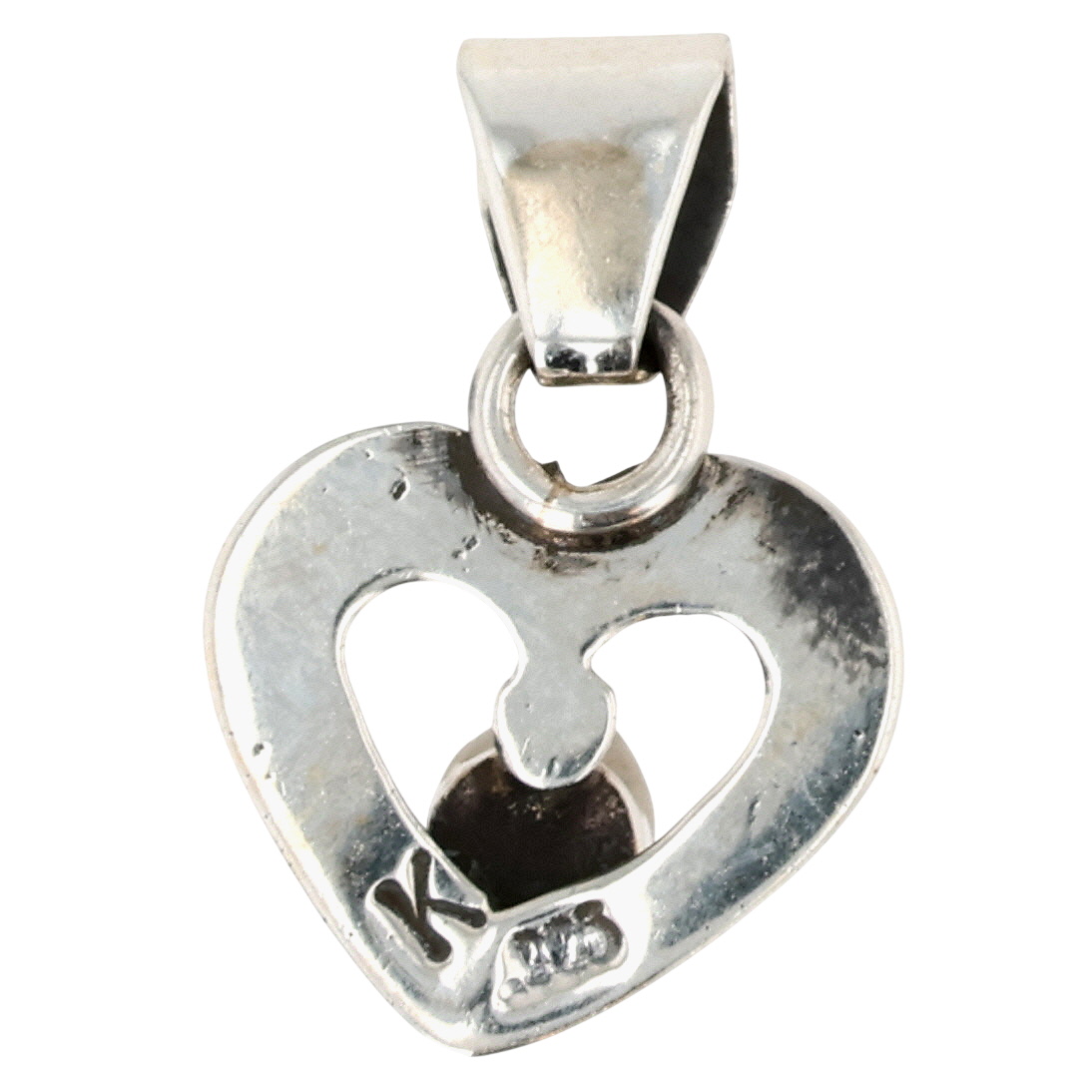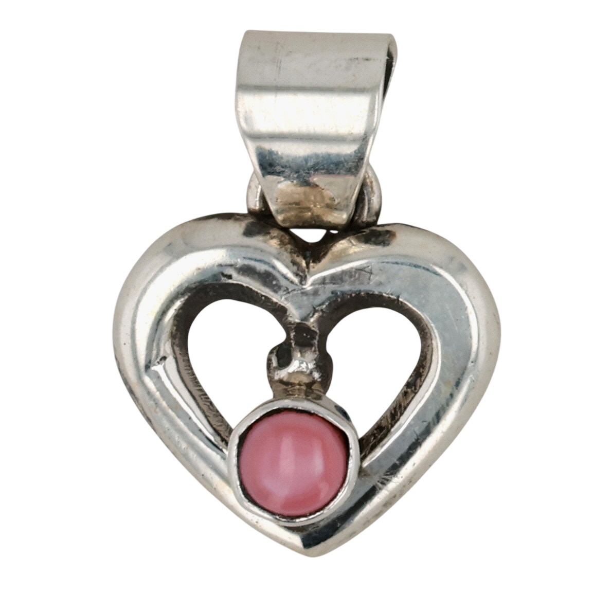 Signed K Navajo Sterling Pink Conch Shell Heart Pendant 2g