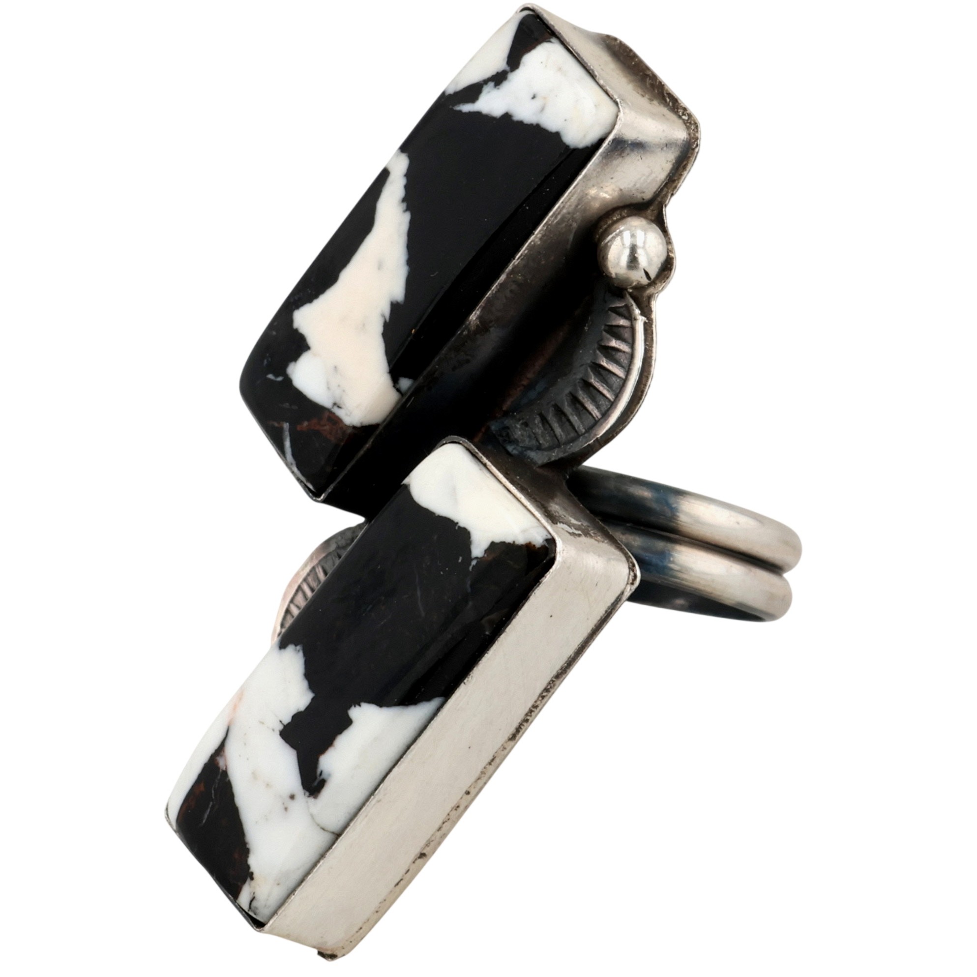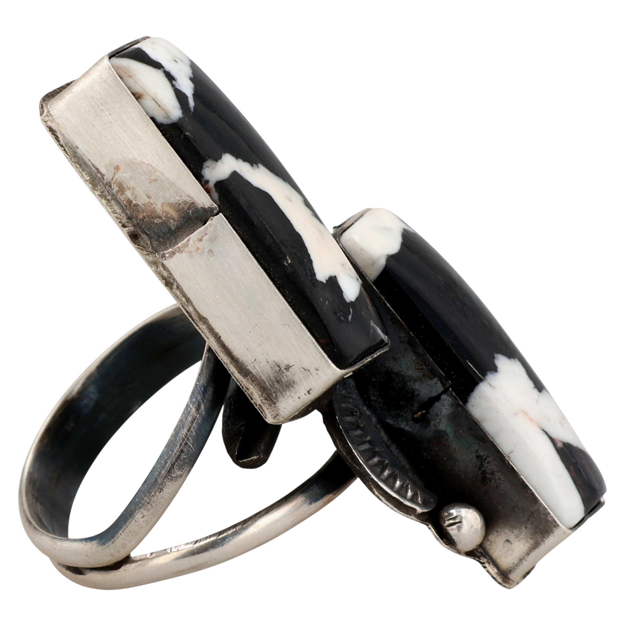 Tia Long Navajo Sterling White Buffalo Turquoise Adjustable Ring 9g Sz 4.5