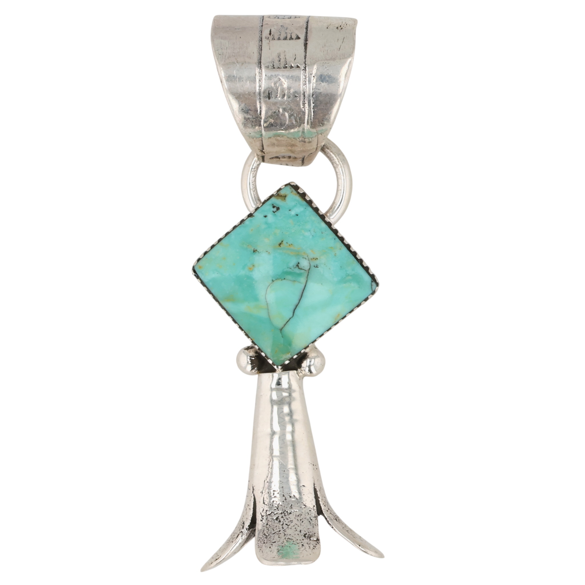 Sonyei Coho Navajo Sterling Kingman Turquoise Squash Blossom Pendant 5.5g