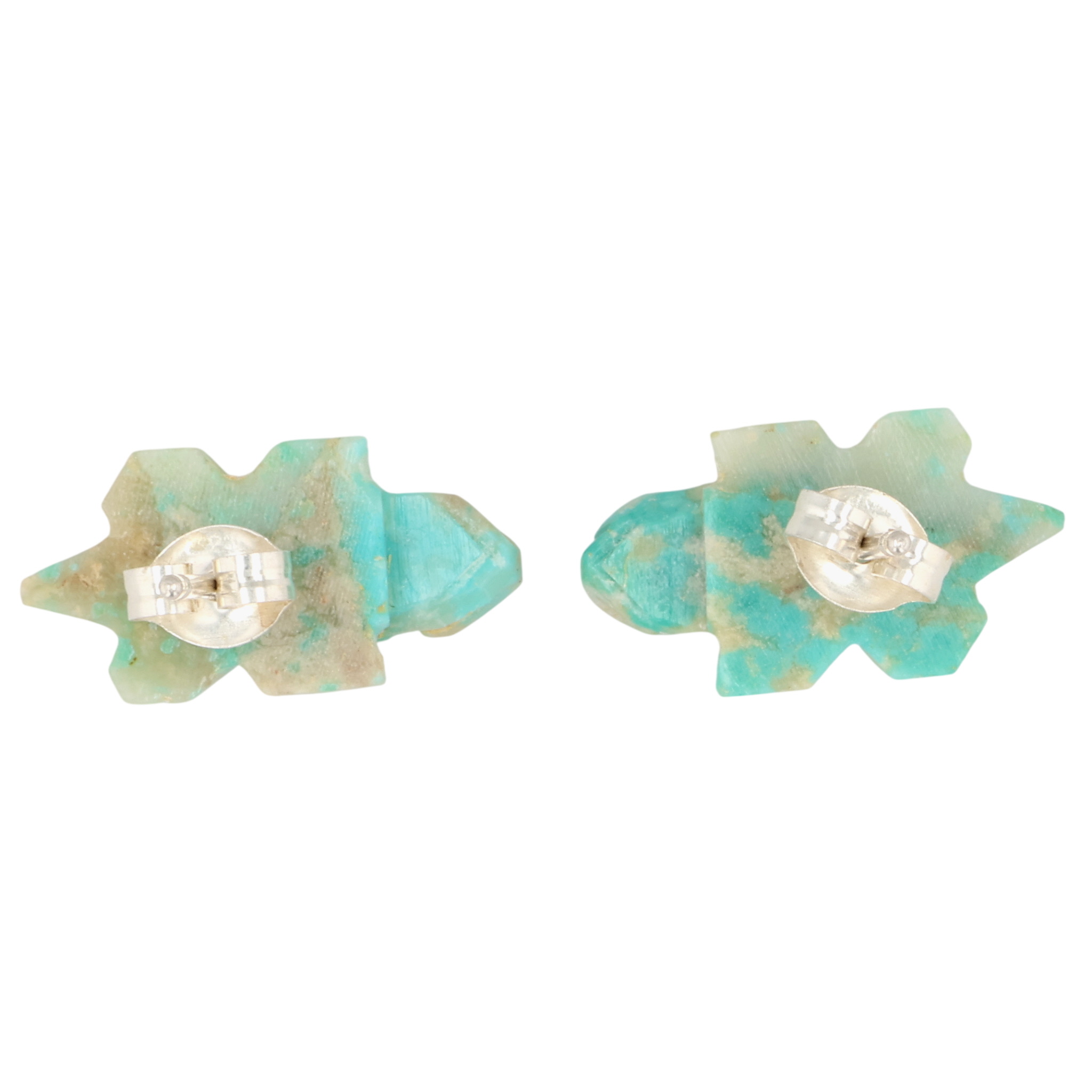 Chris McCabe Navajo Sterling Turquoise Carved Lizard Earrings 1.5g