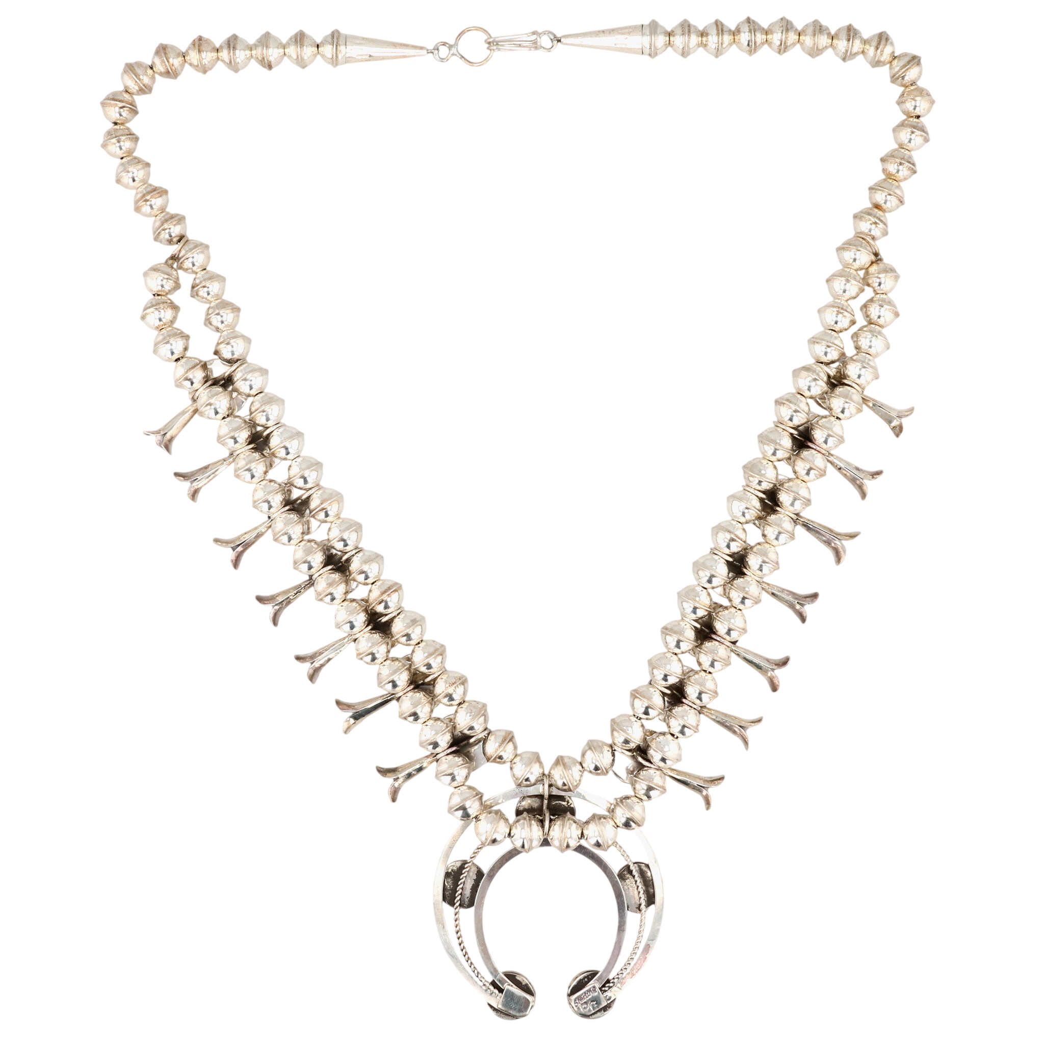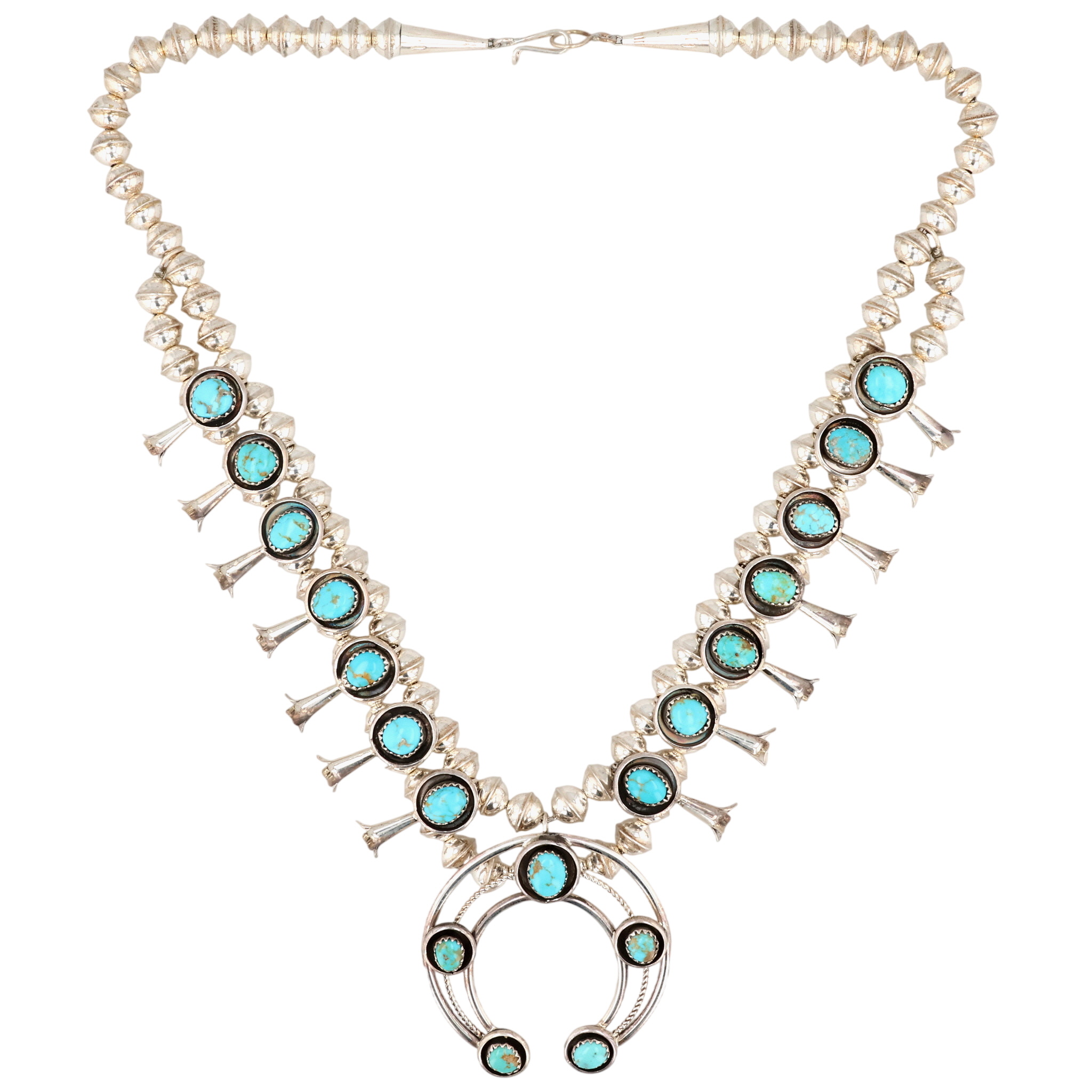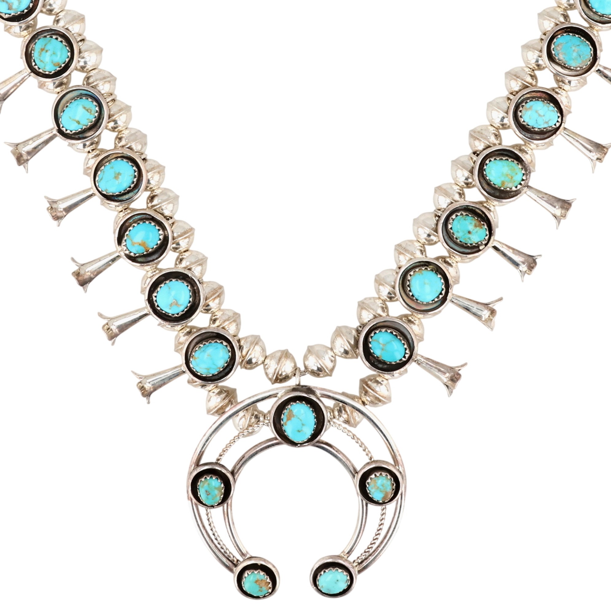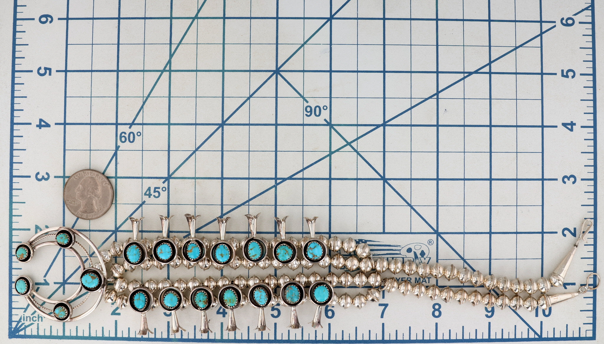Lenora Garcia Navajo Sterling Kingman Turquoise Squash Blossom Necklace 64g