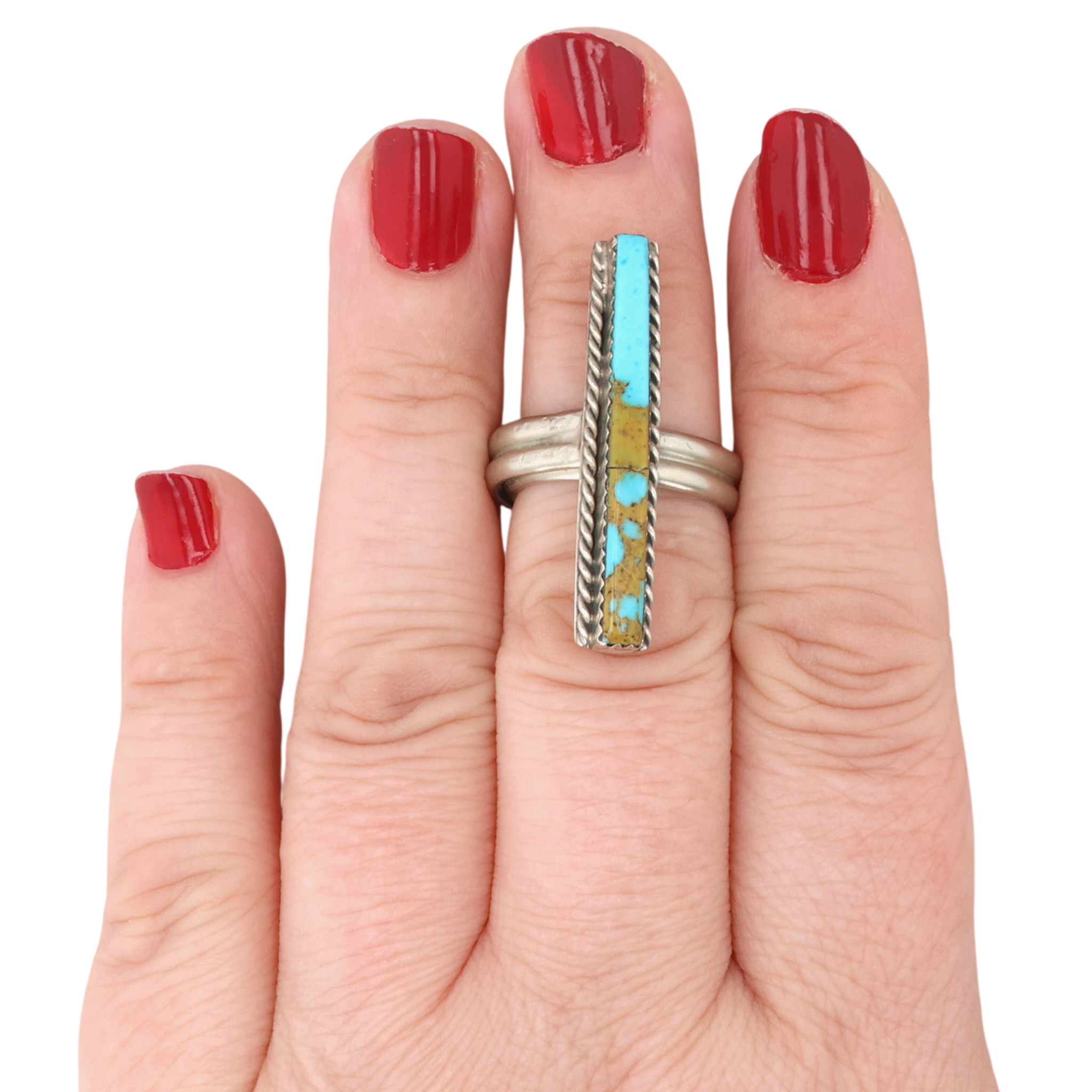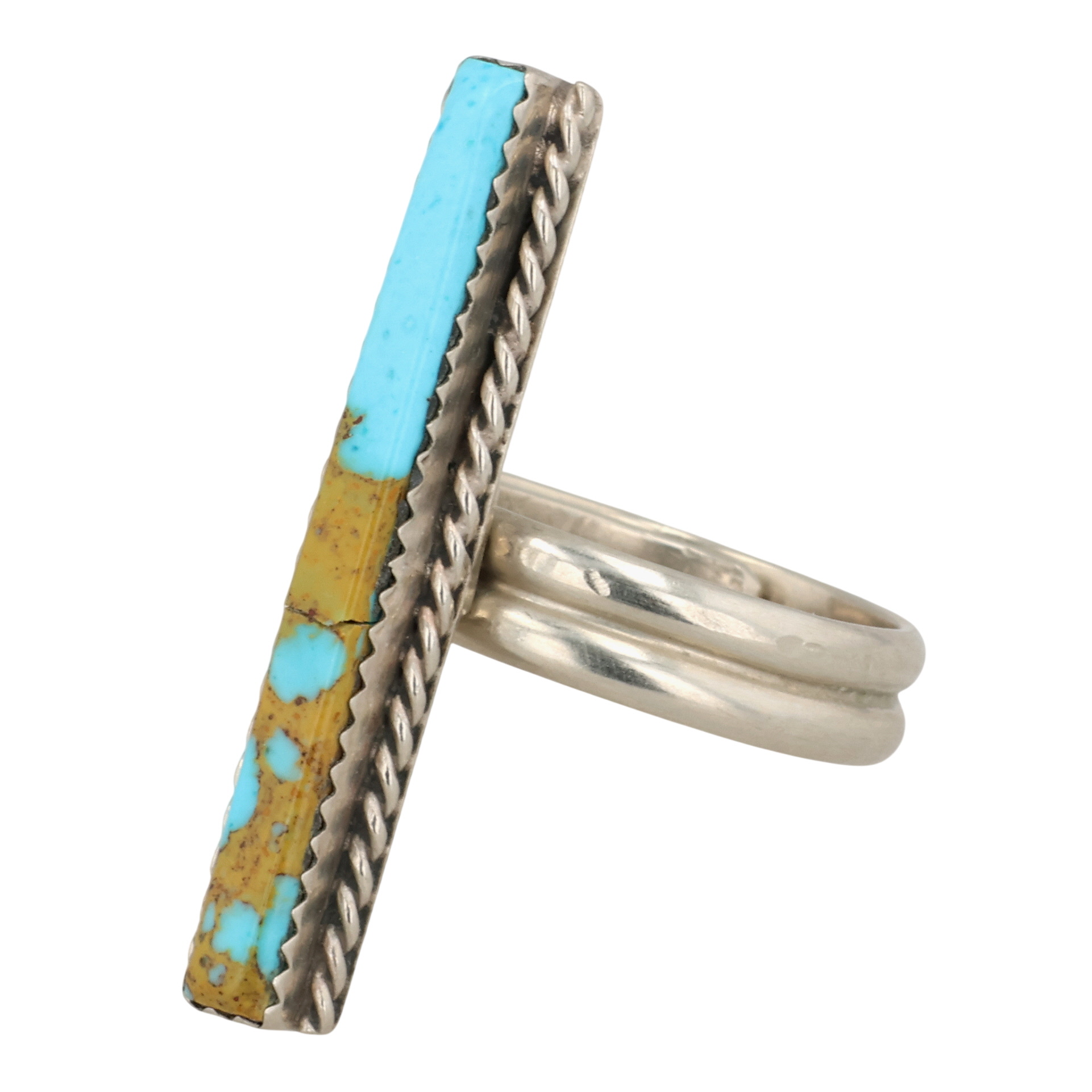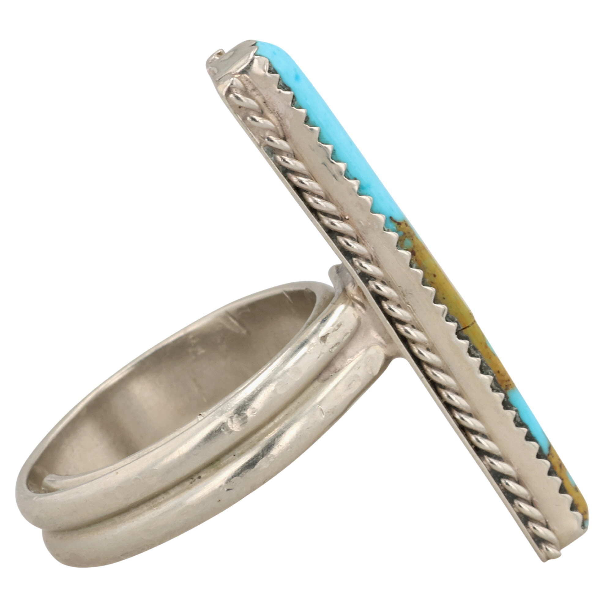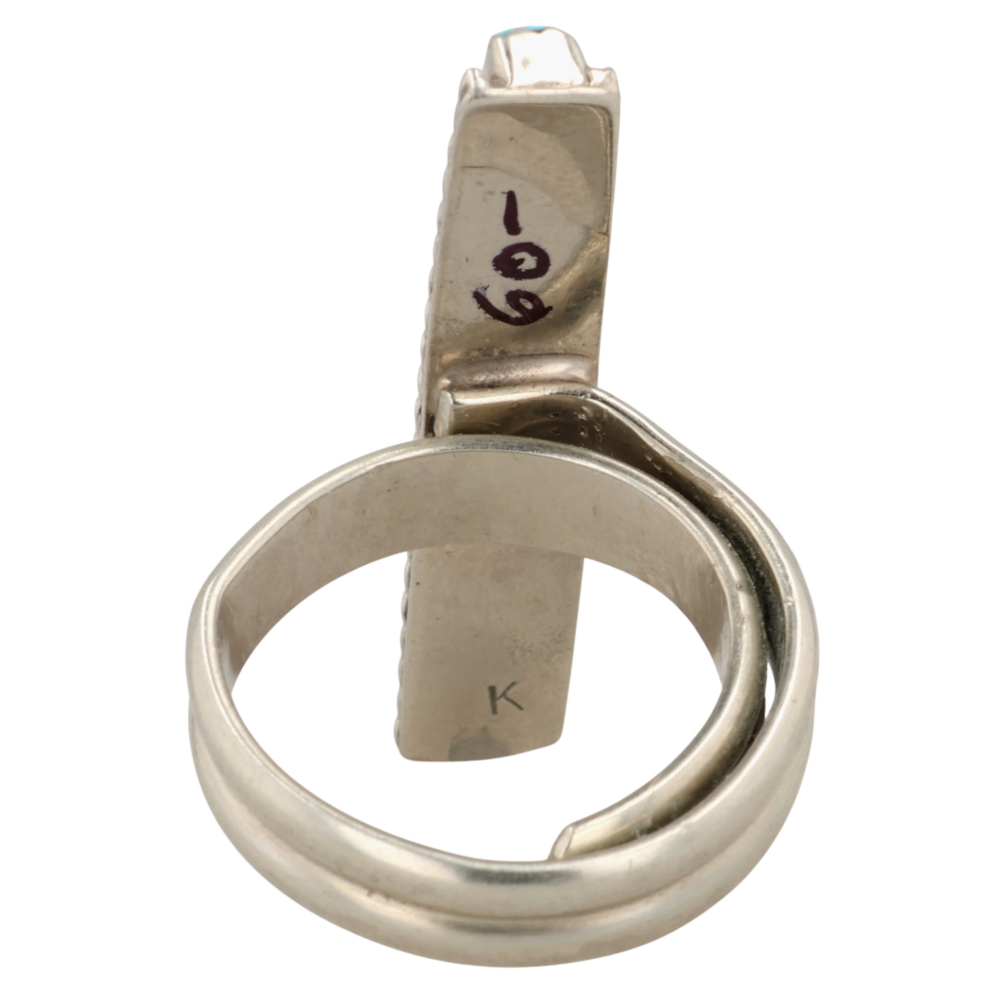 Vintage Signed K Navajo Sterling Turquoise Adjustable Ring 7g Sz 6.5, as is Cracked Stone