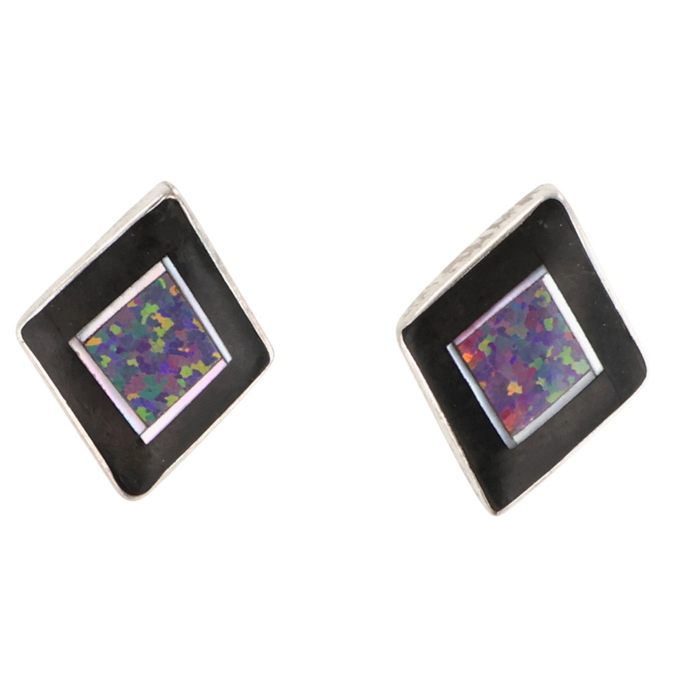 Willis Kyle dewa Zuni Sterling Opal Onyx Inlay Earrings 1g