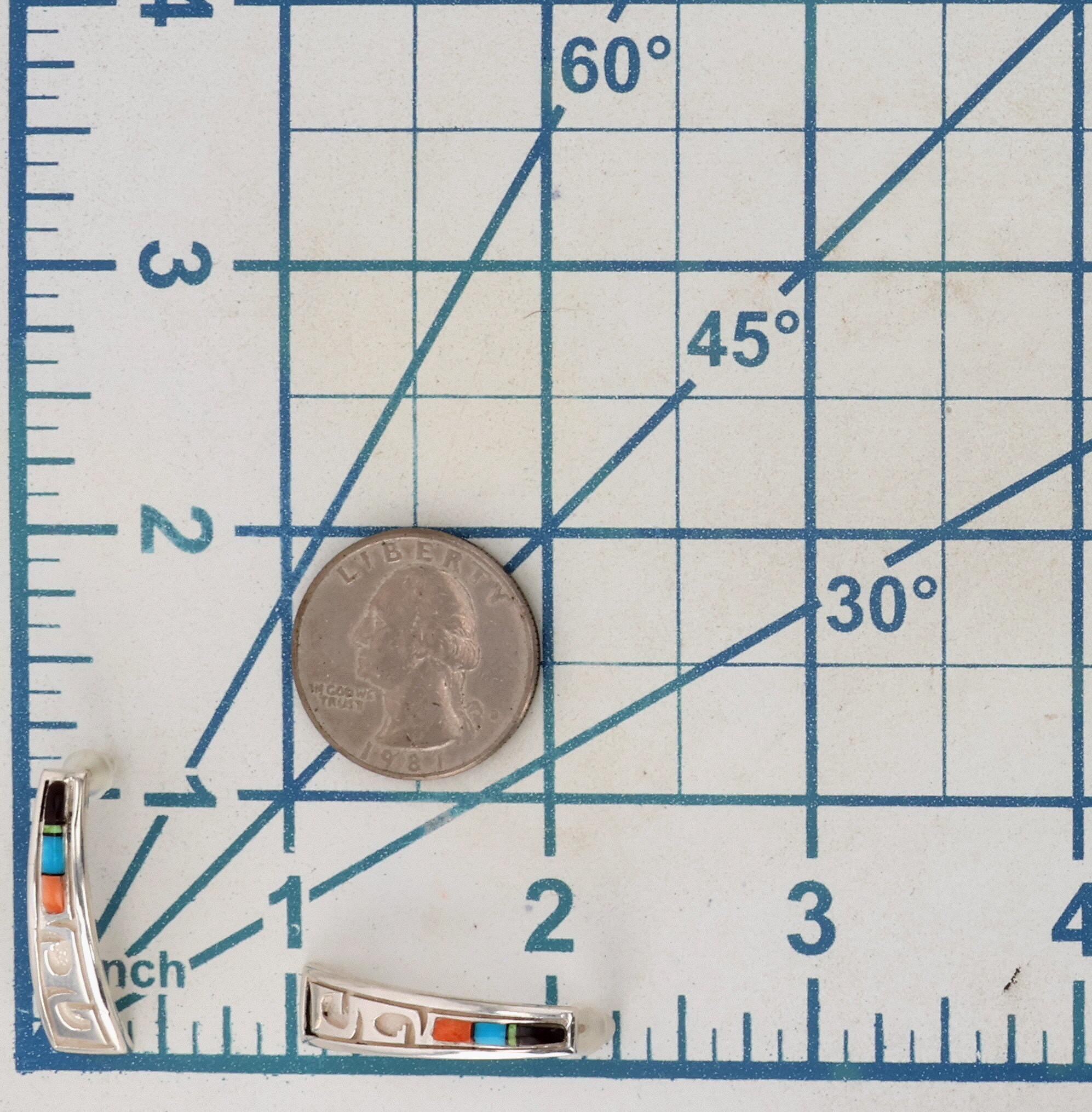 Grace Hale Navajo Sterling Turquoise, Onyx, Spiny Oyster Inlay Earrings 5g