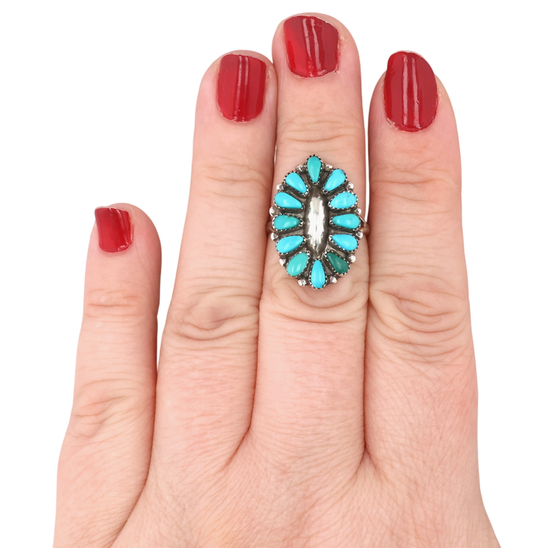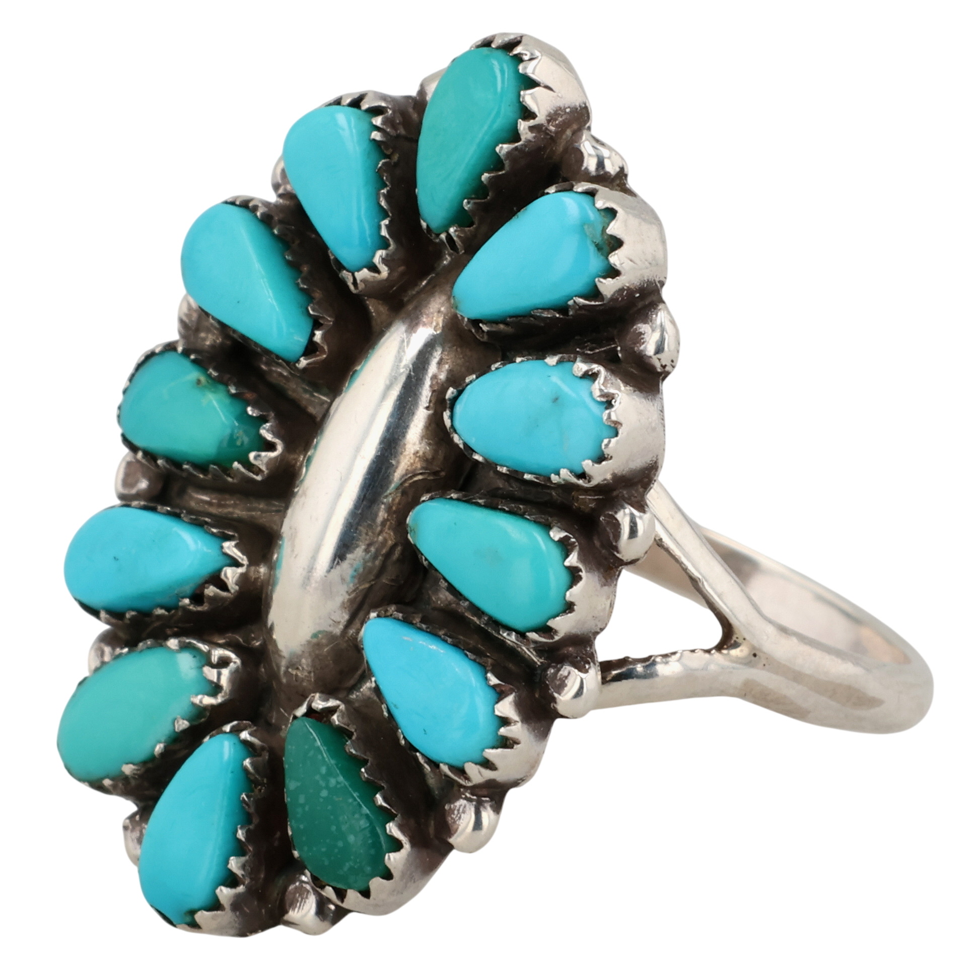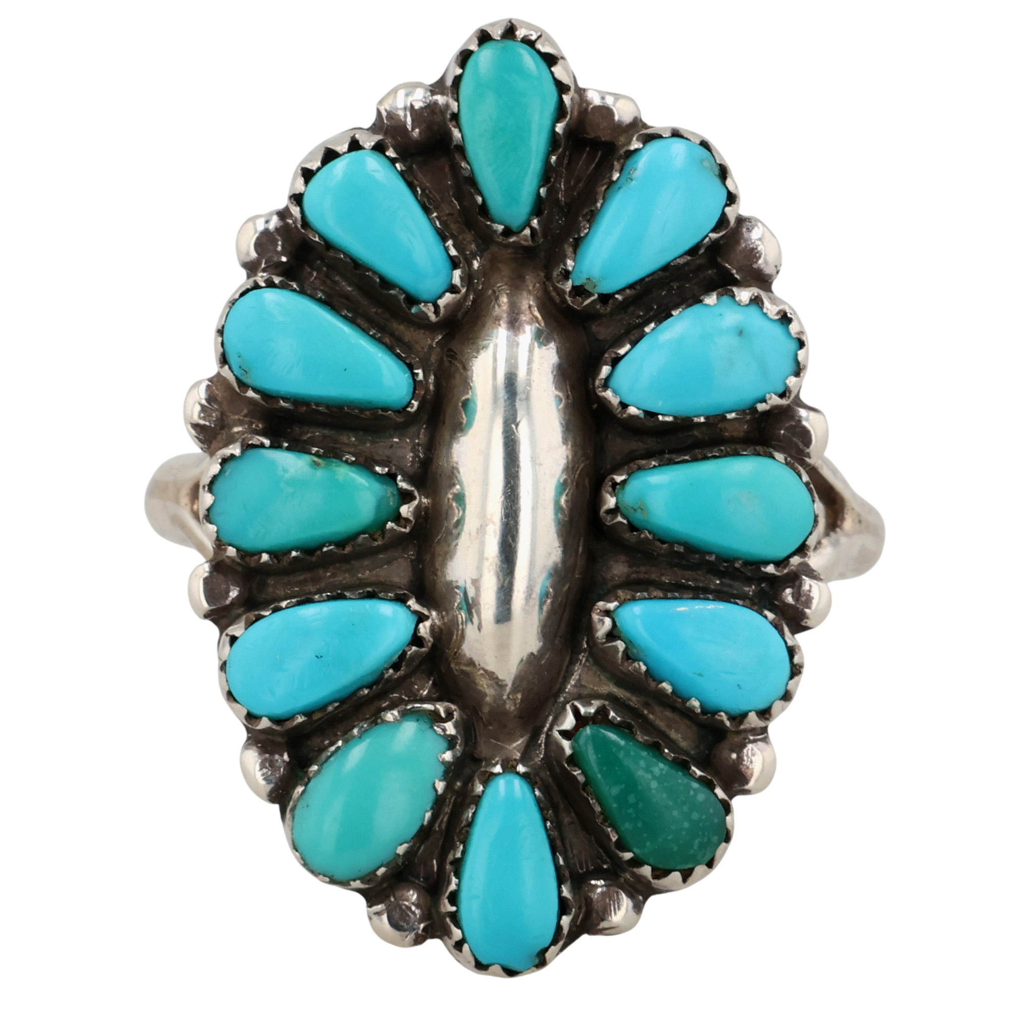 Vintage Mary Ann & Feliz Chavez Zuni Sterling Turquoise Ring 3g Sz 6.75