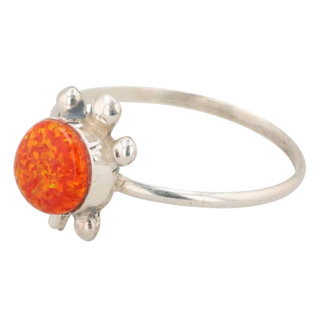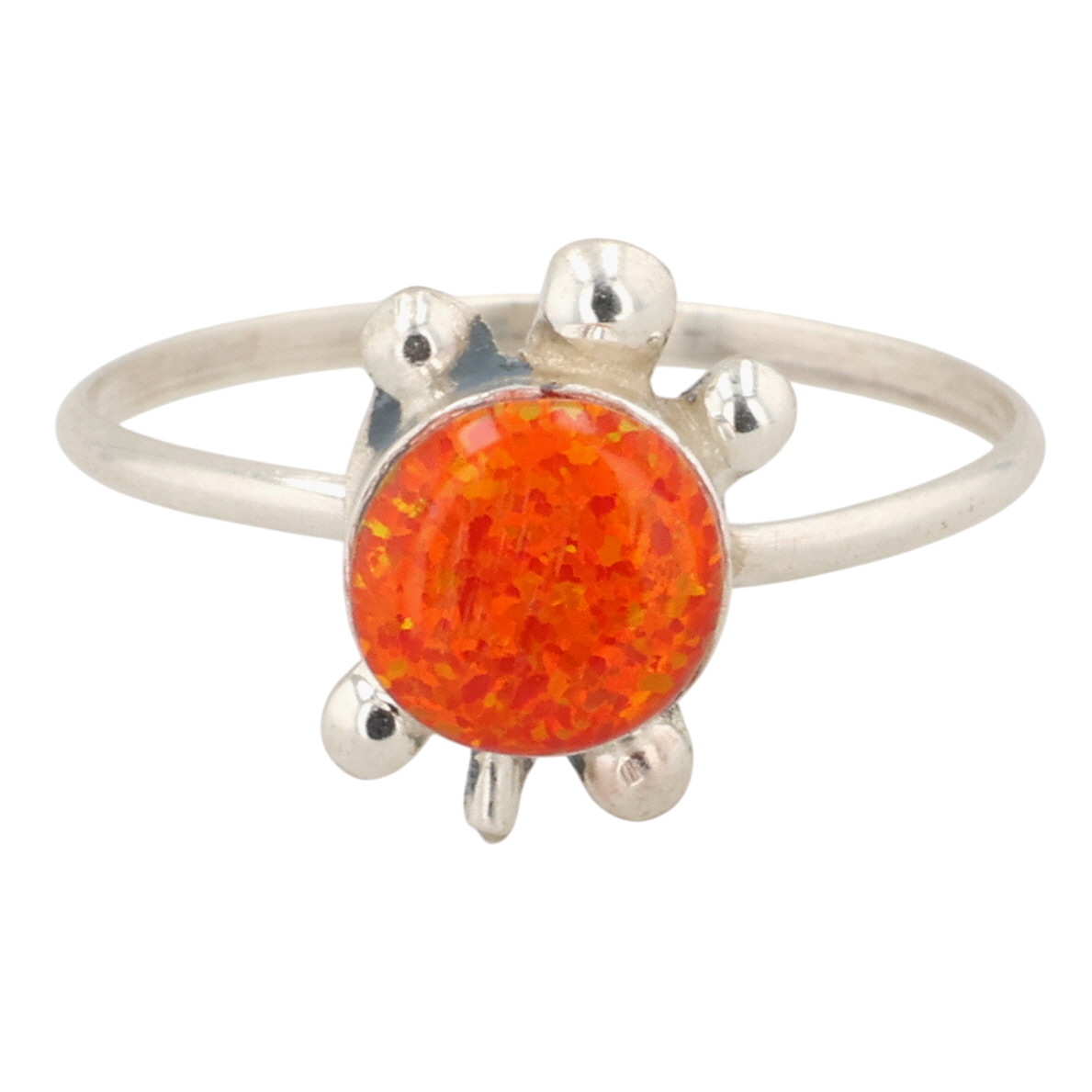 Sarah Bowannie Zuni Sterling Red Opal Turtle Ring 1g Sz 7