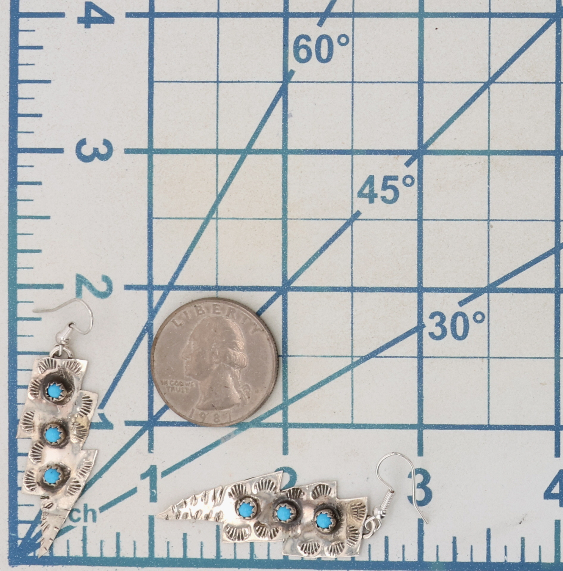 Francis Yazzie Navajo Sterling Kingman Turquoise Lightning Bolt Earrings 2g