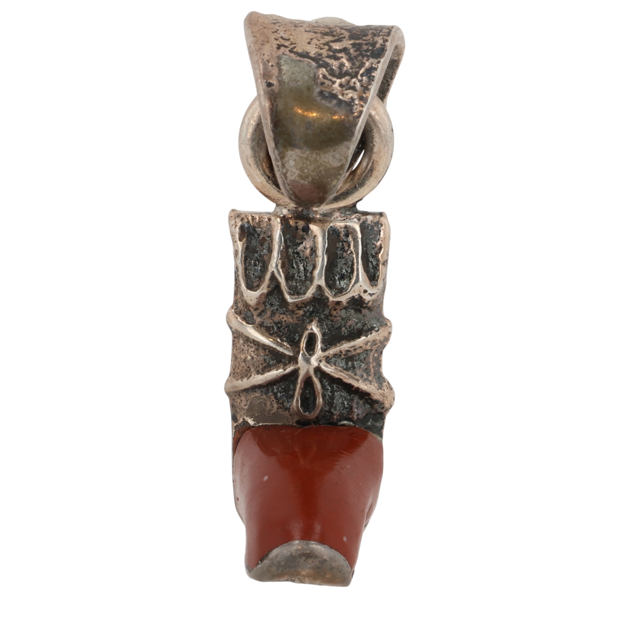 Lester James Navajo Sterling Coral Moccasin Pendant 5g