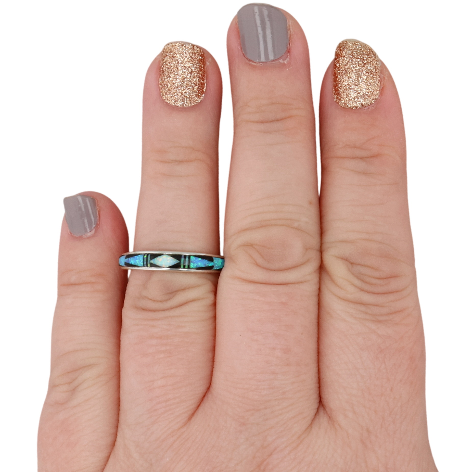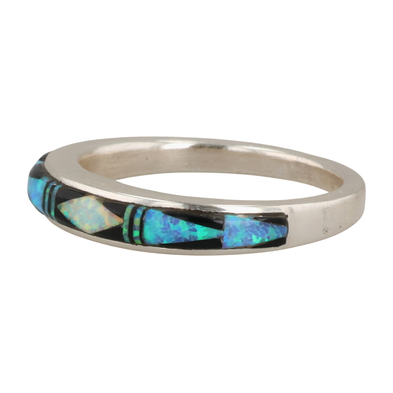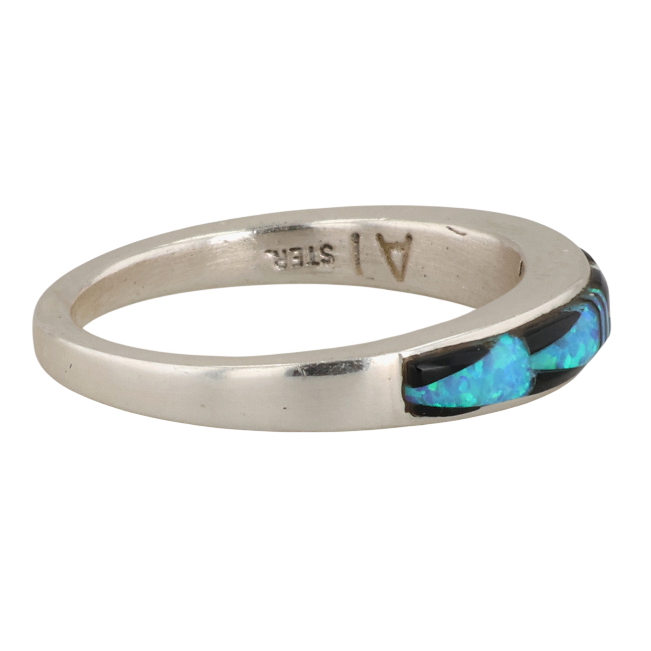 Allen Tolino Navajo Sterling Opal, Onyx Ring 3g Sz 7