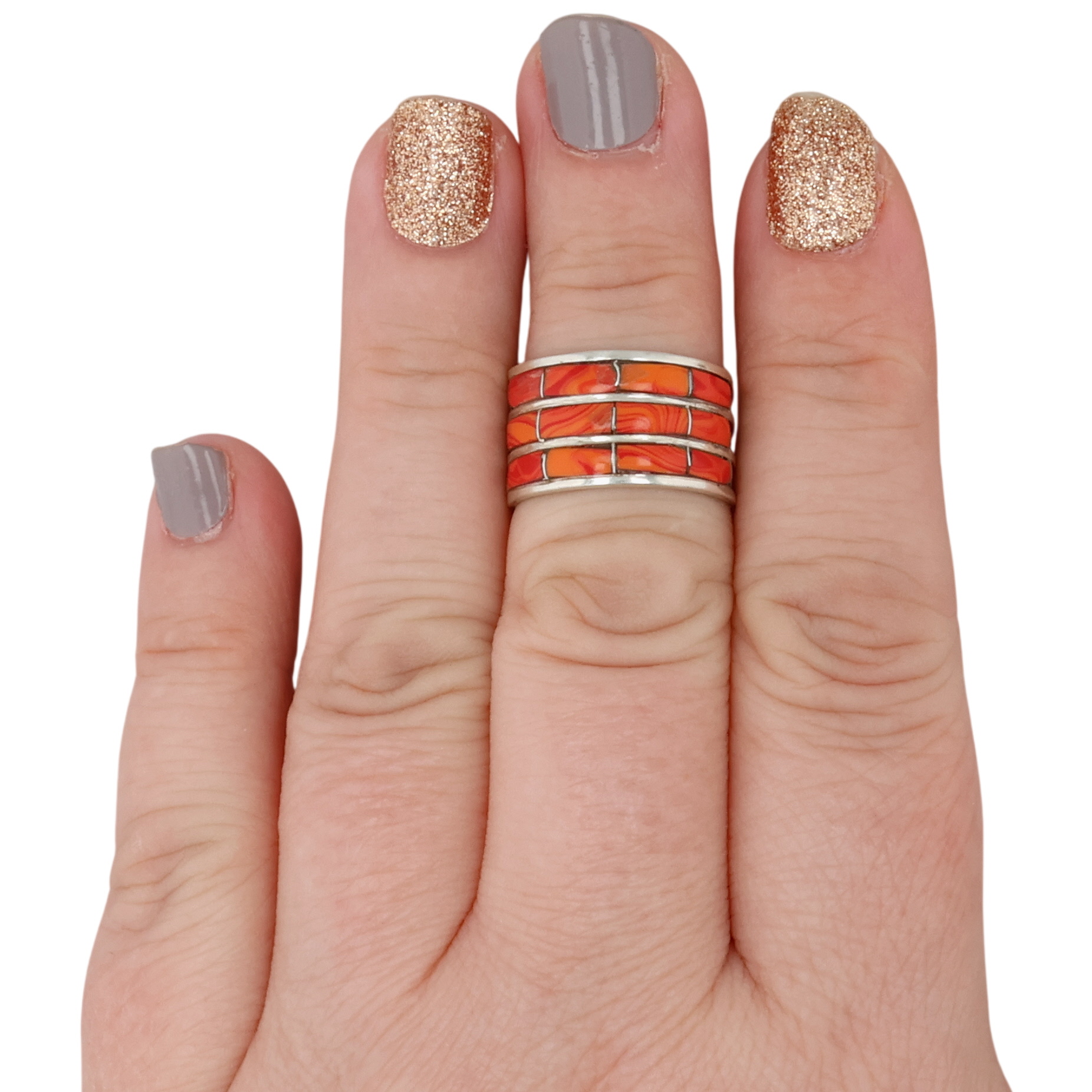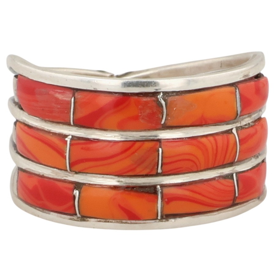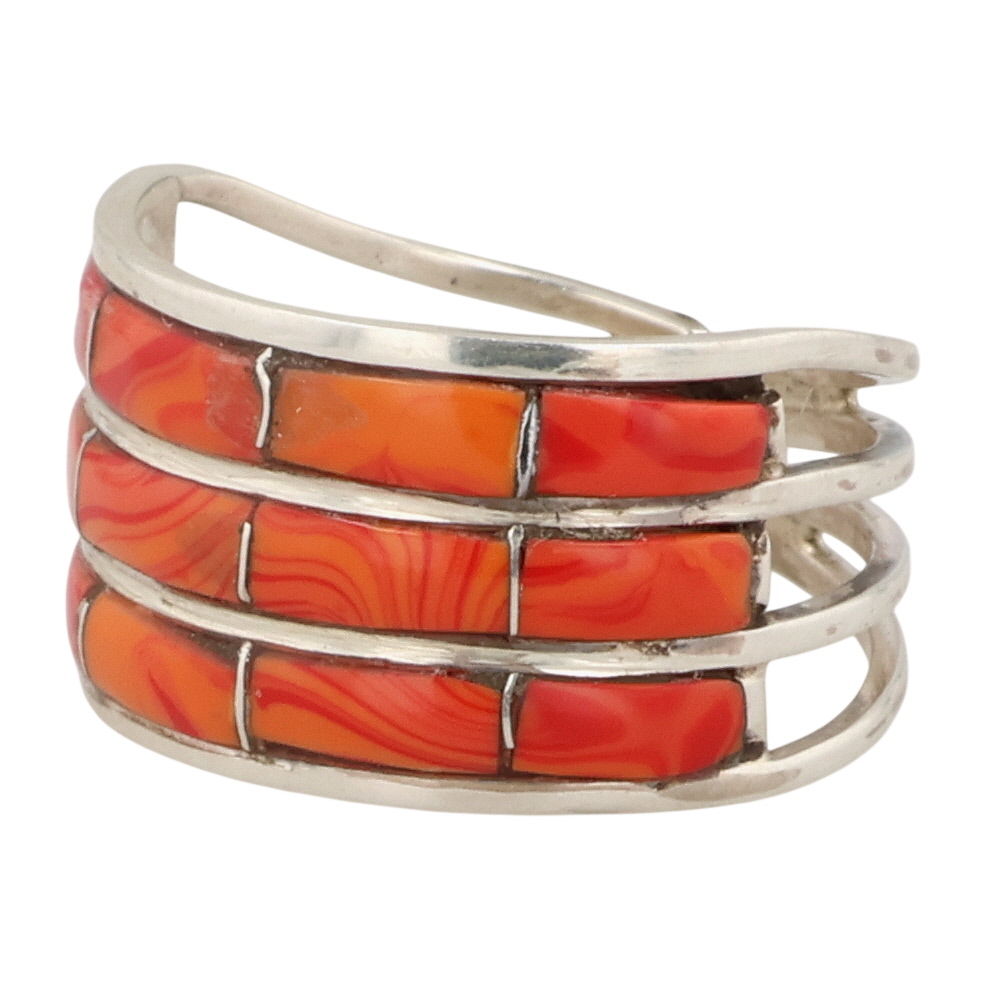 Debbie Livingston Navajo Sterling Spiny Oyster Inlay Ring 3g Sz 7