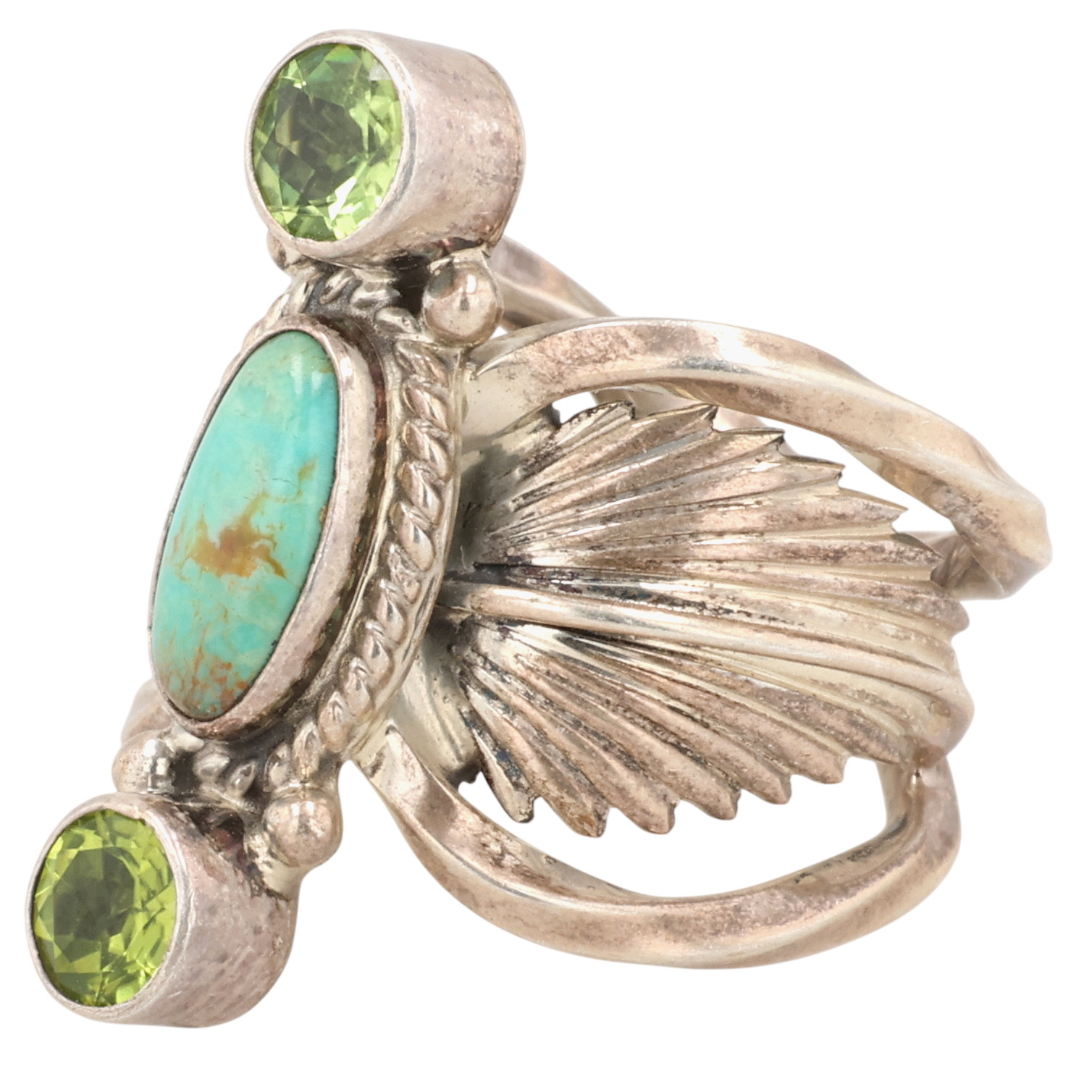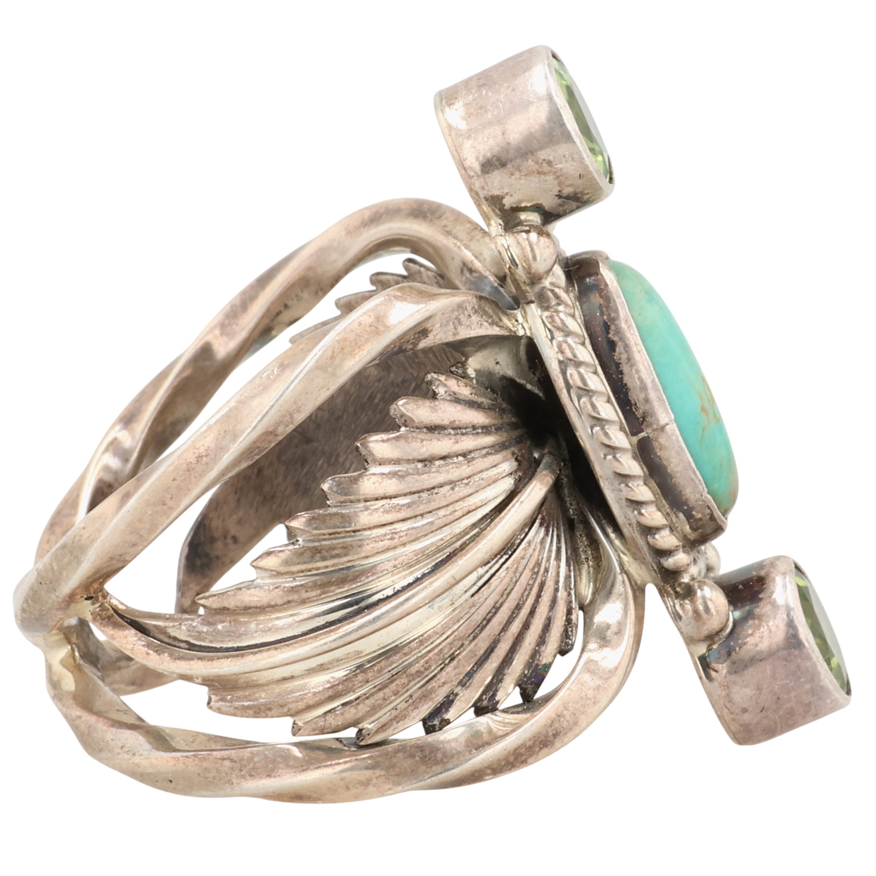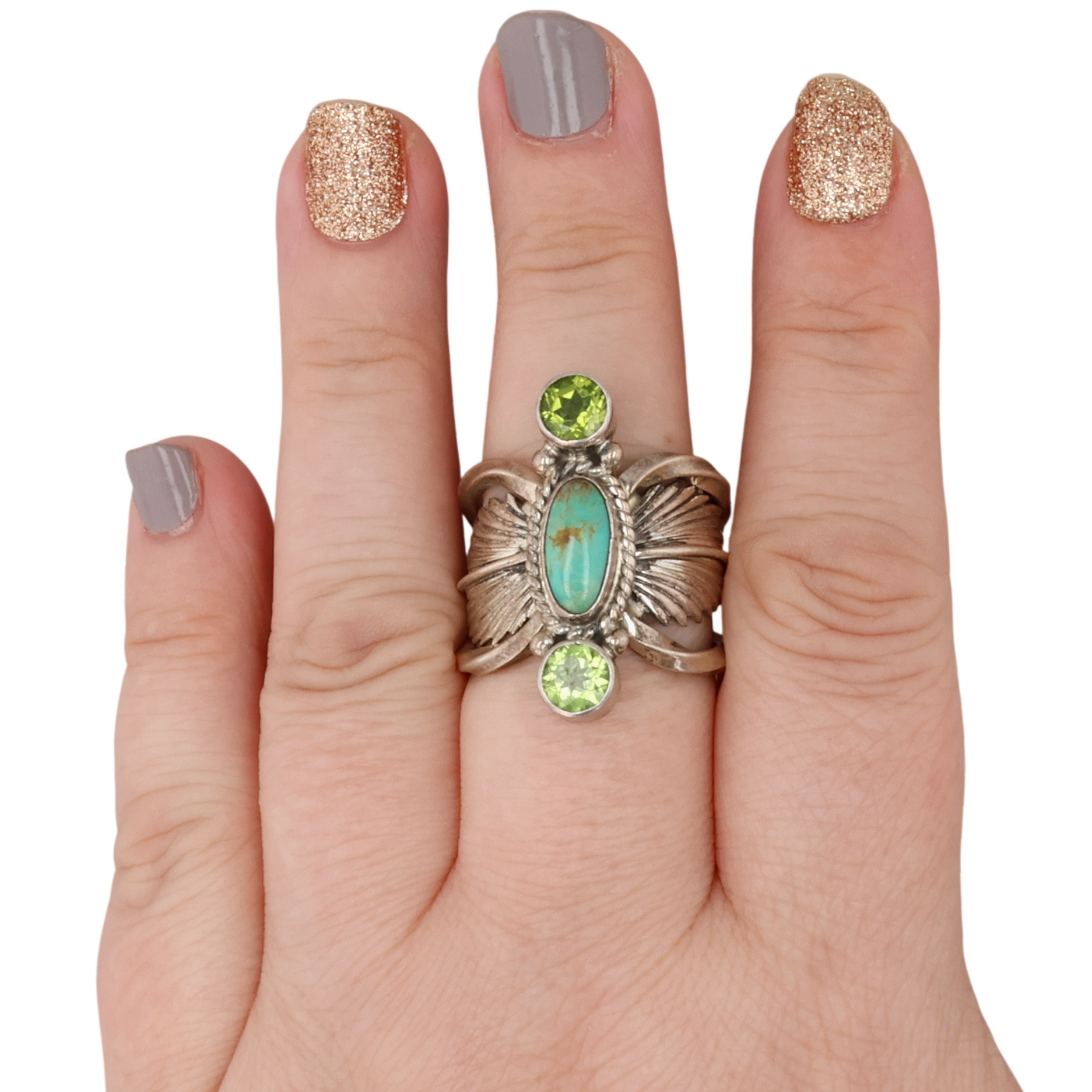 Monty Robertson Navajo Sterling Peridot Turquoise Ring 13.5g Sz 10
