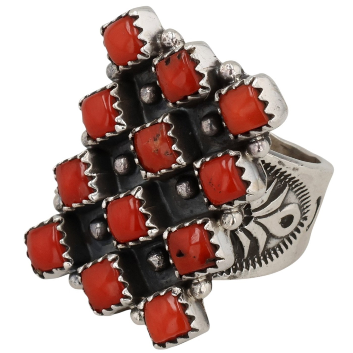 Verley Belone Navajo Sterling Coral Ring 13g Sz 6