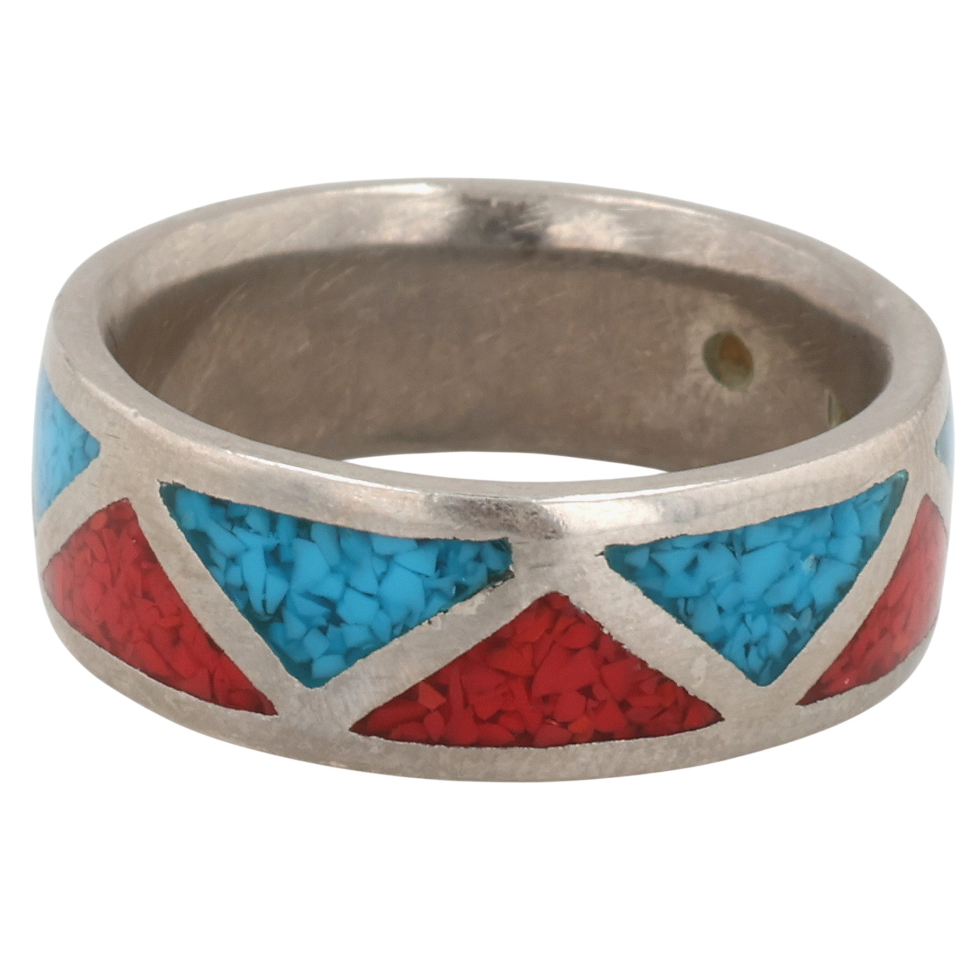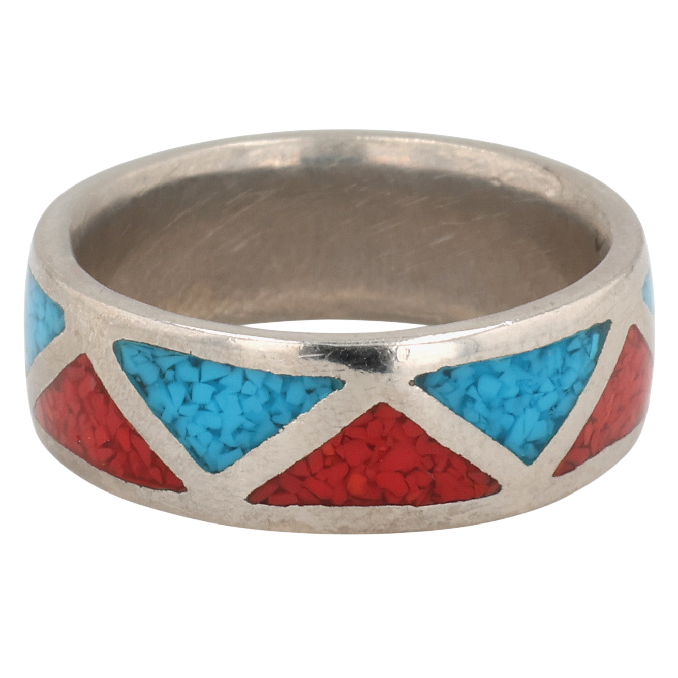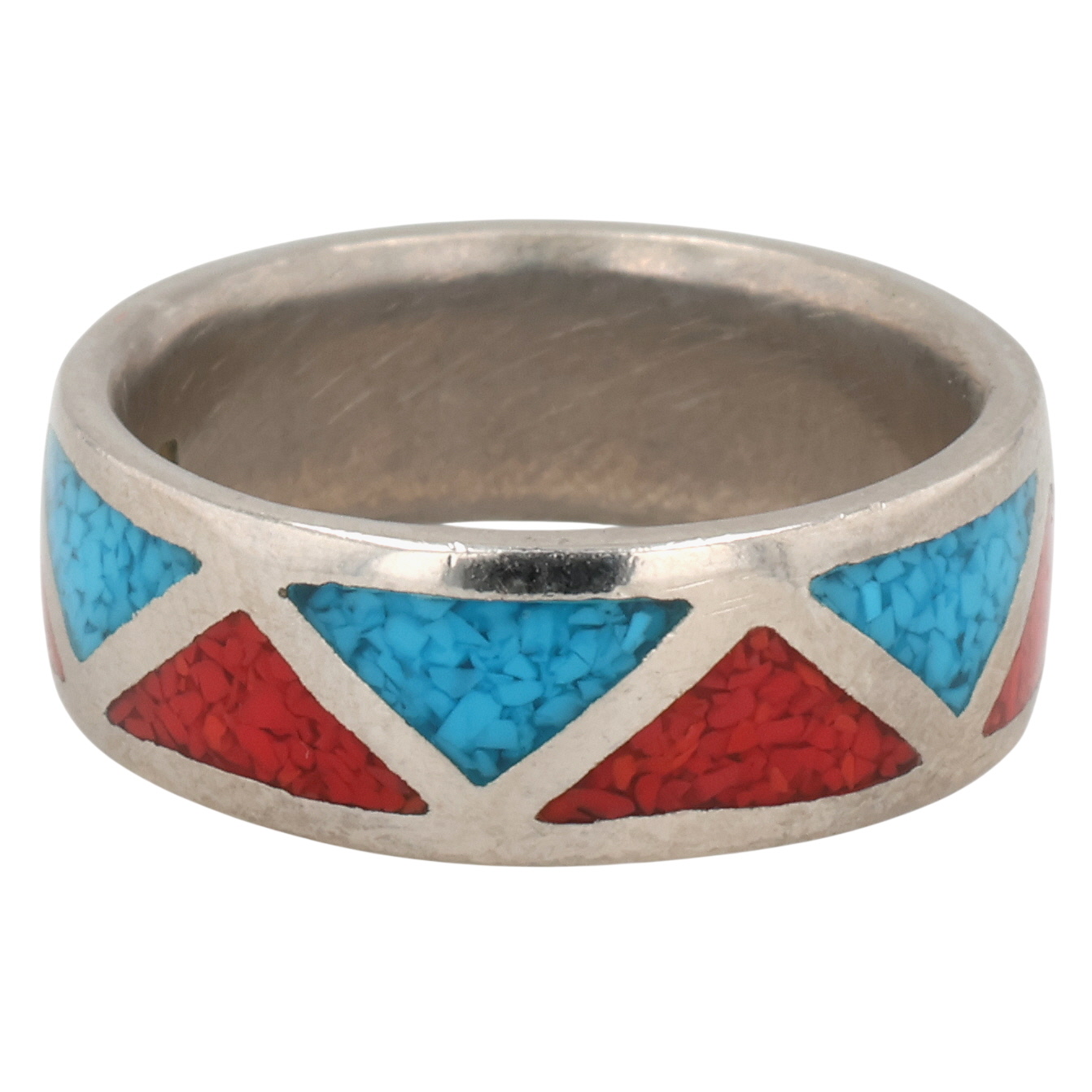 Navajo Sterling Crushed Turquoise Coral Inlay Ring 6g Sz 9.25