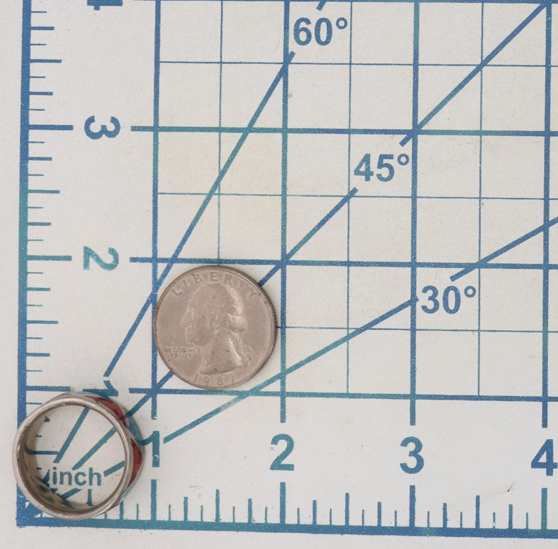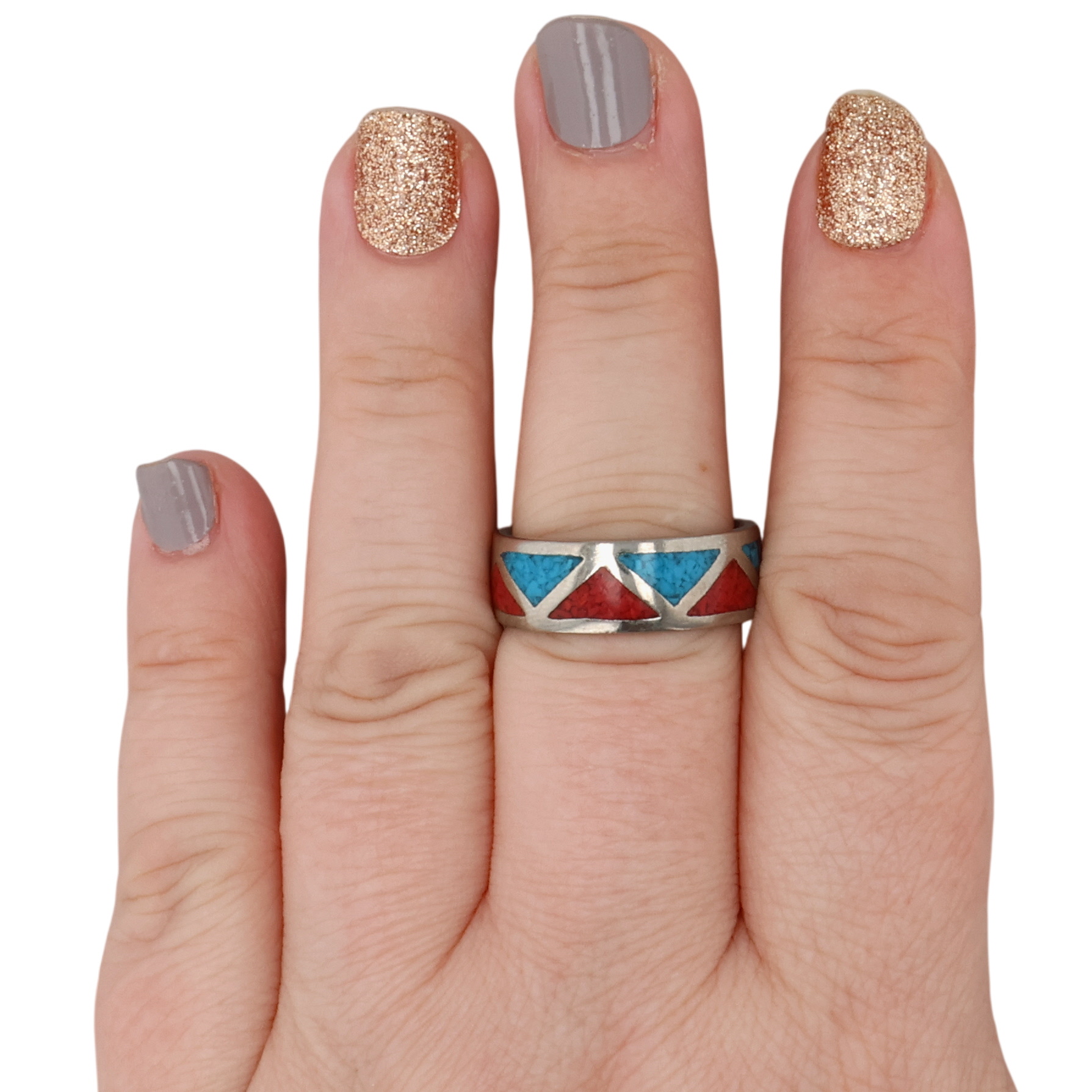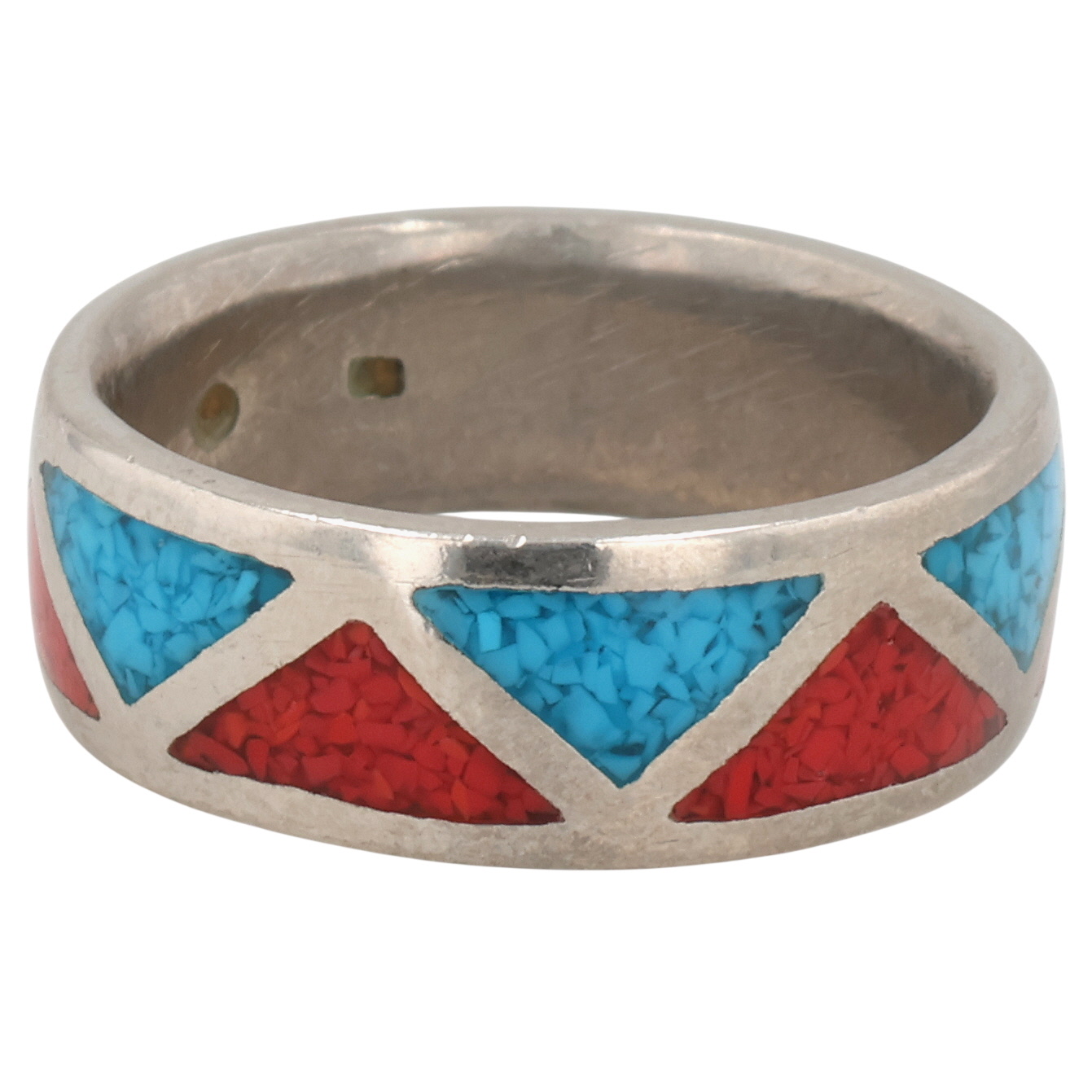 Navajo Sterling Crushed Turquoise Coral Inlay Ring 6g Sz 9.25