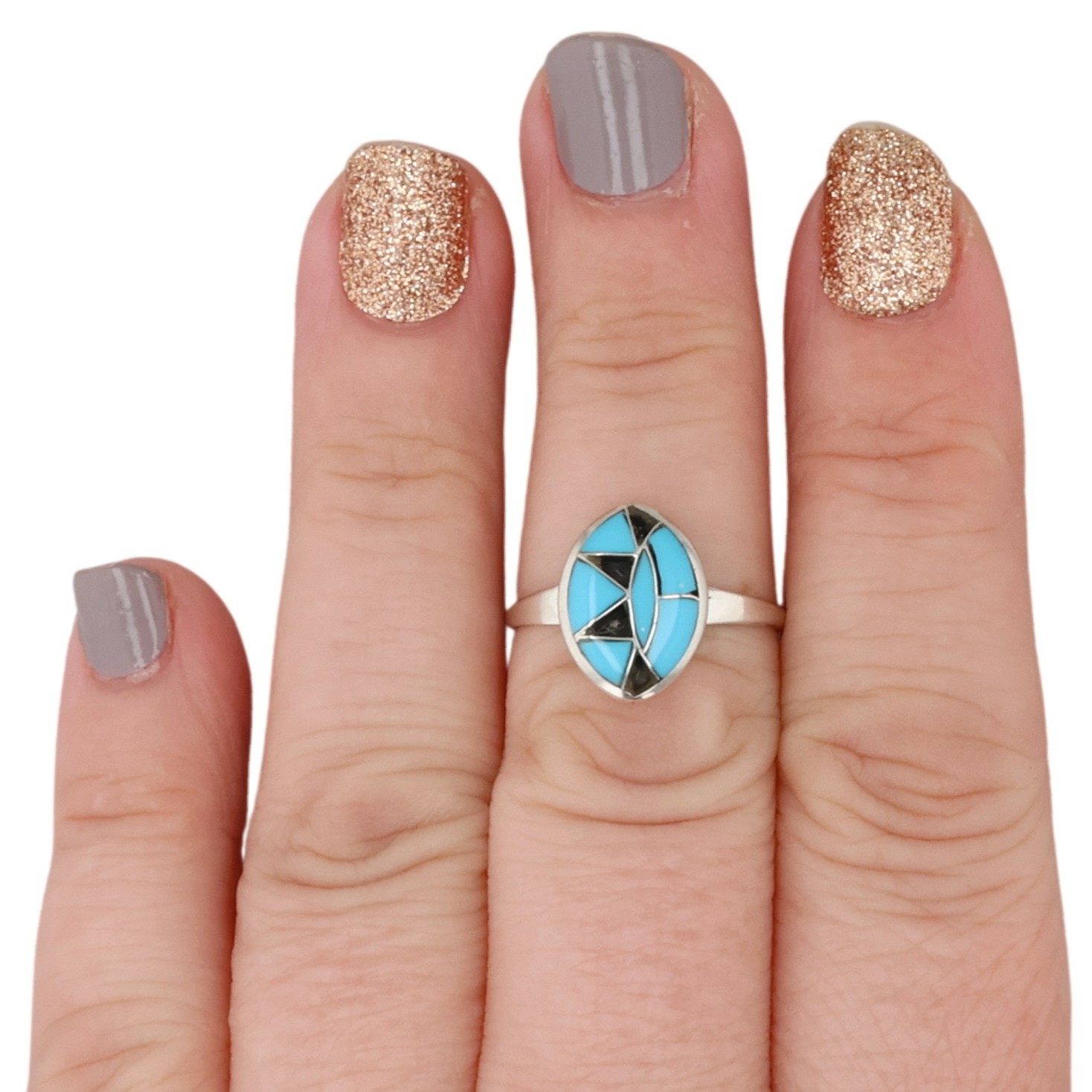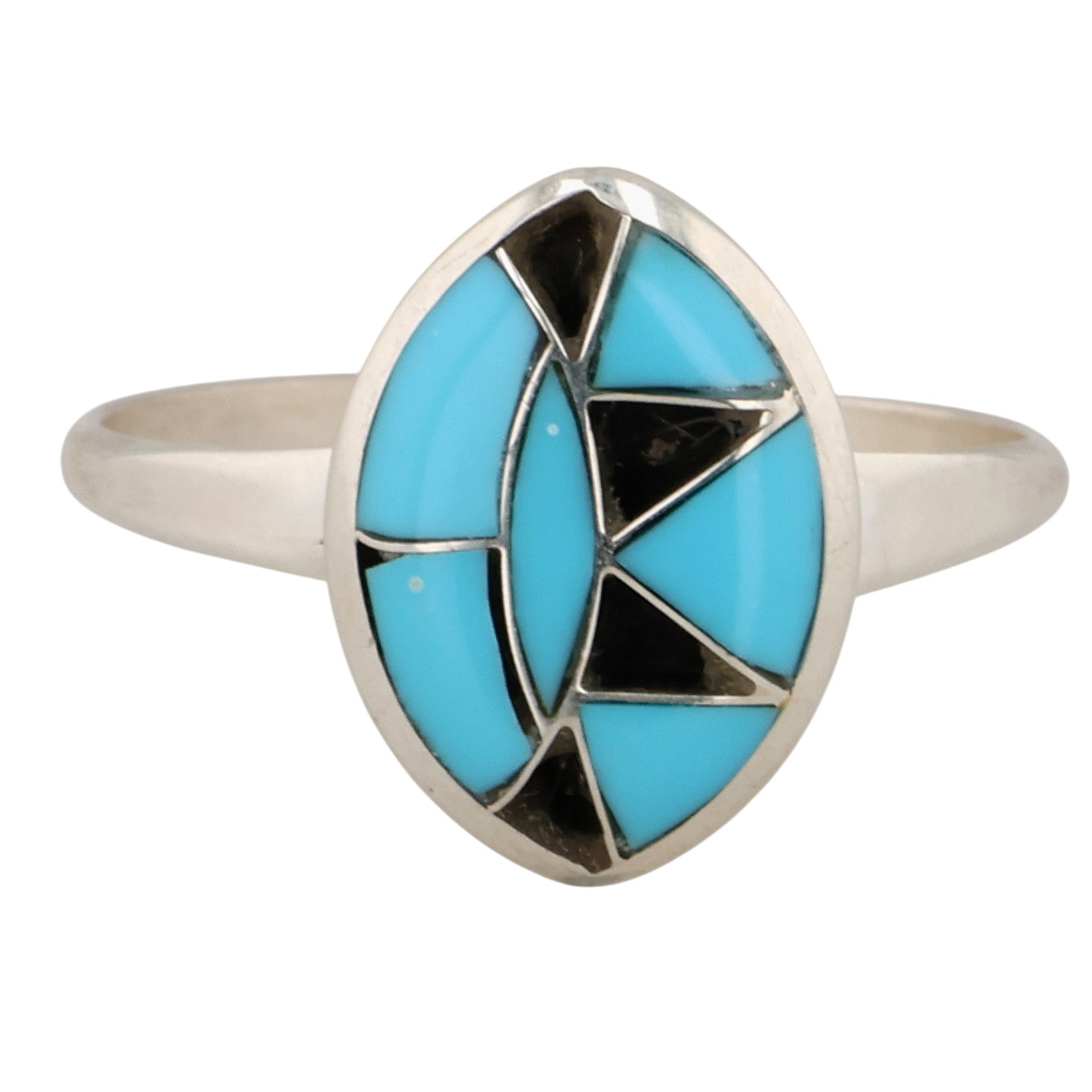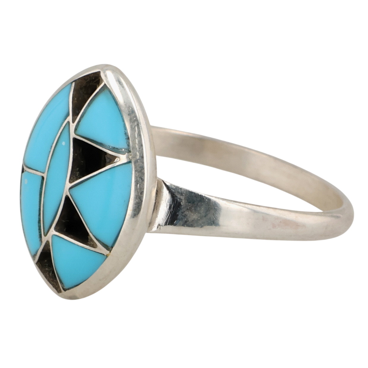 Wilbur Quan Sterling Turquoise Onyx Inlay Ring 1.5g Sz 6.75