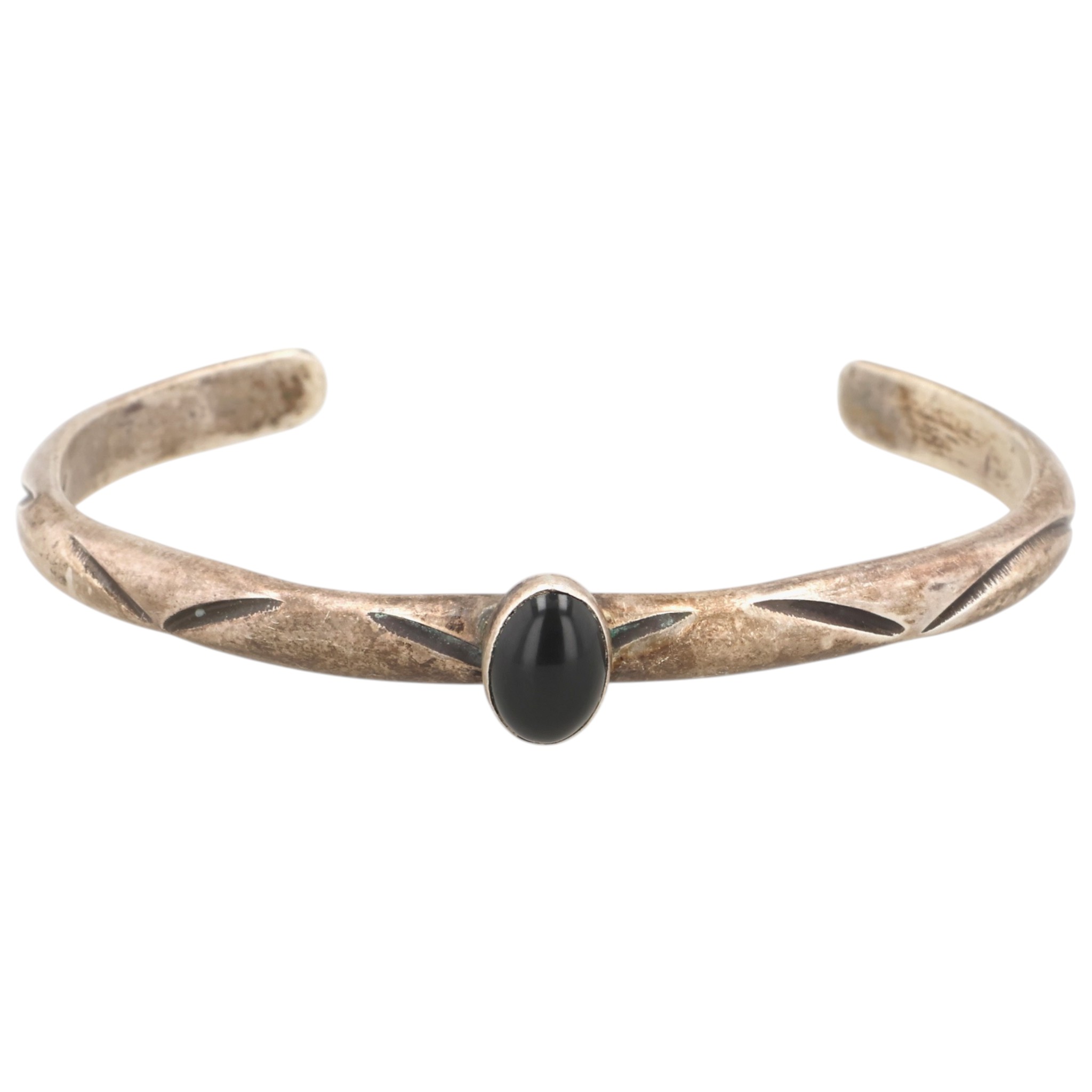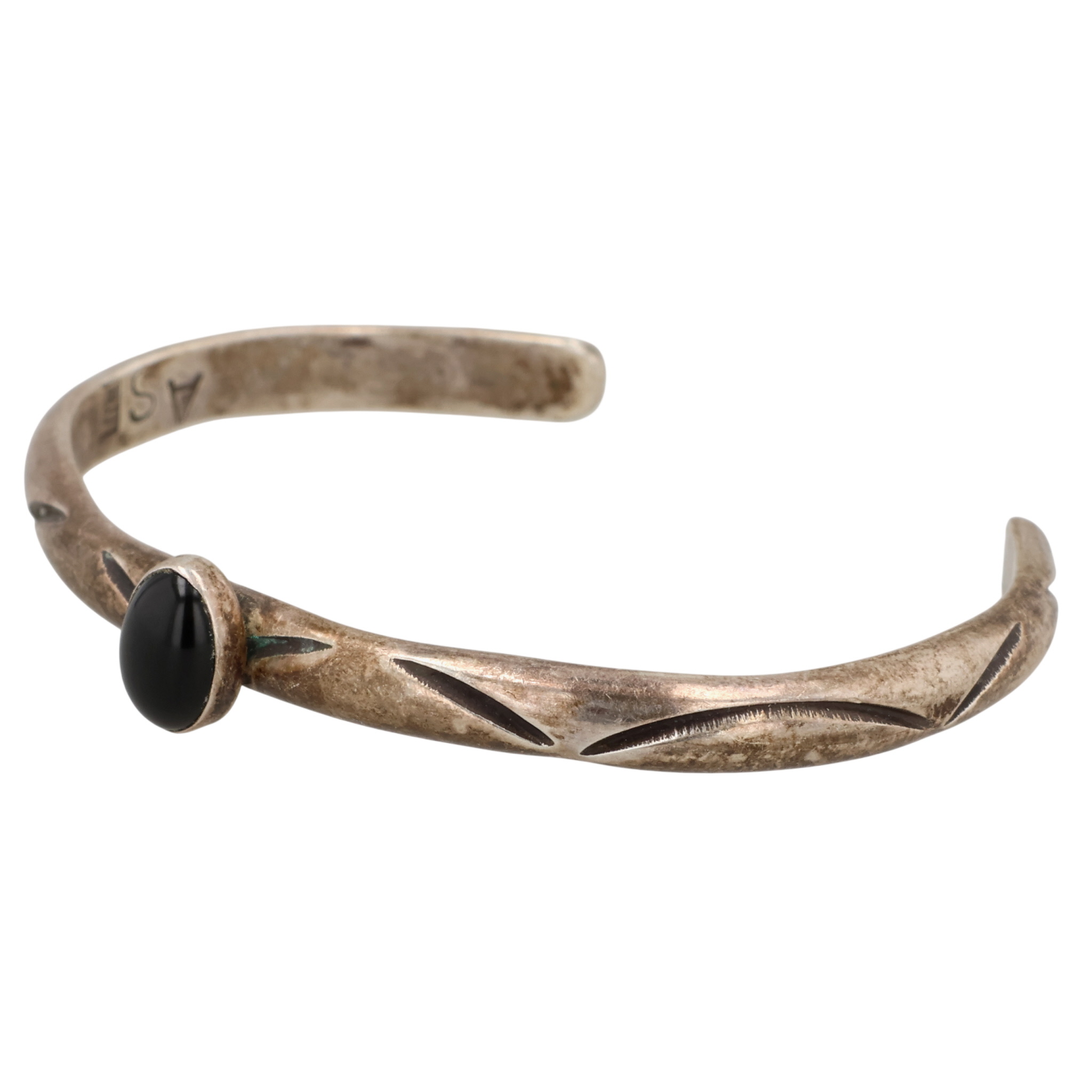 Signed Navajo Sterling Onyx Baby Cuff Bracelet 7.5g, signed ASE