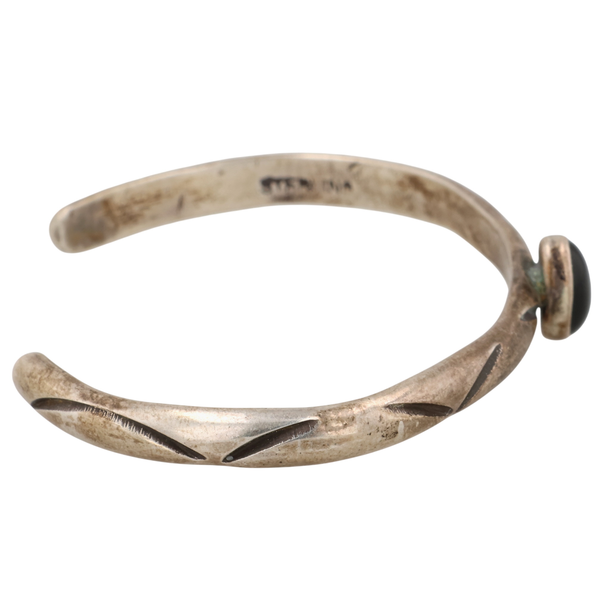 Signed Navajo Sterling Onyx Baby Cuff Bracelet