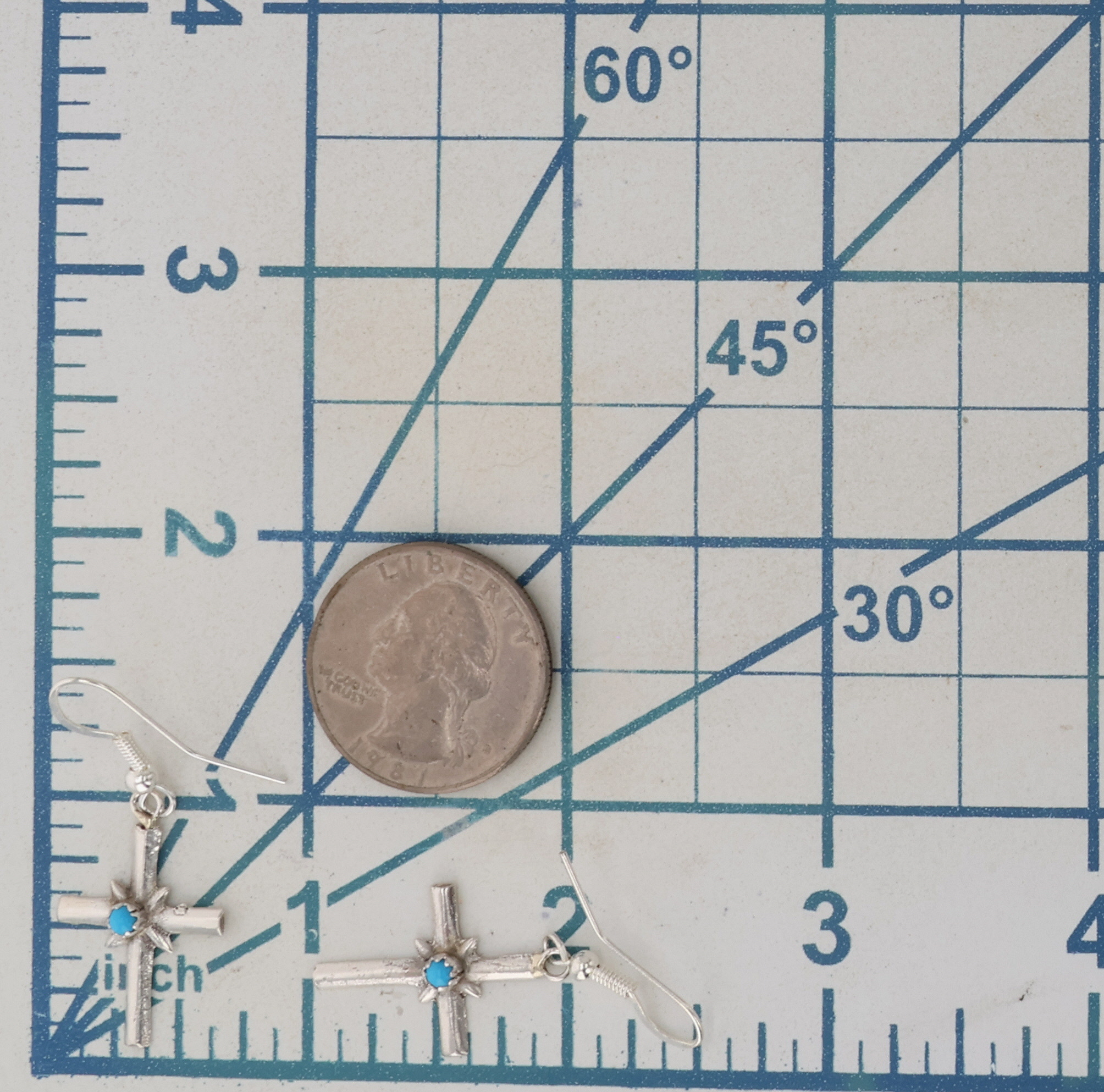Lorrain Chee Navajo Sterling Turquoise Cross Earrings 2g