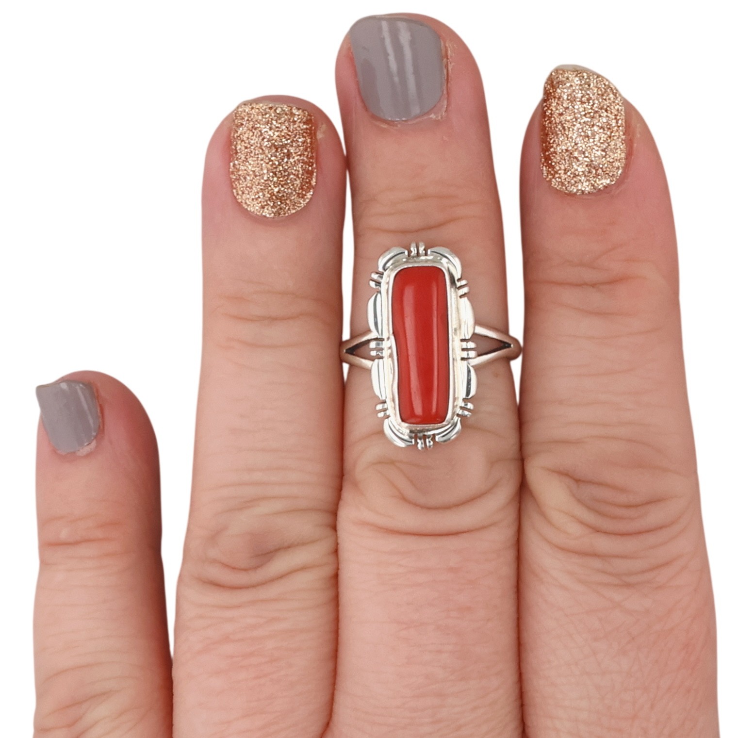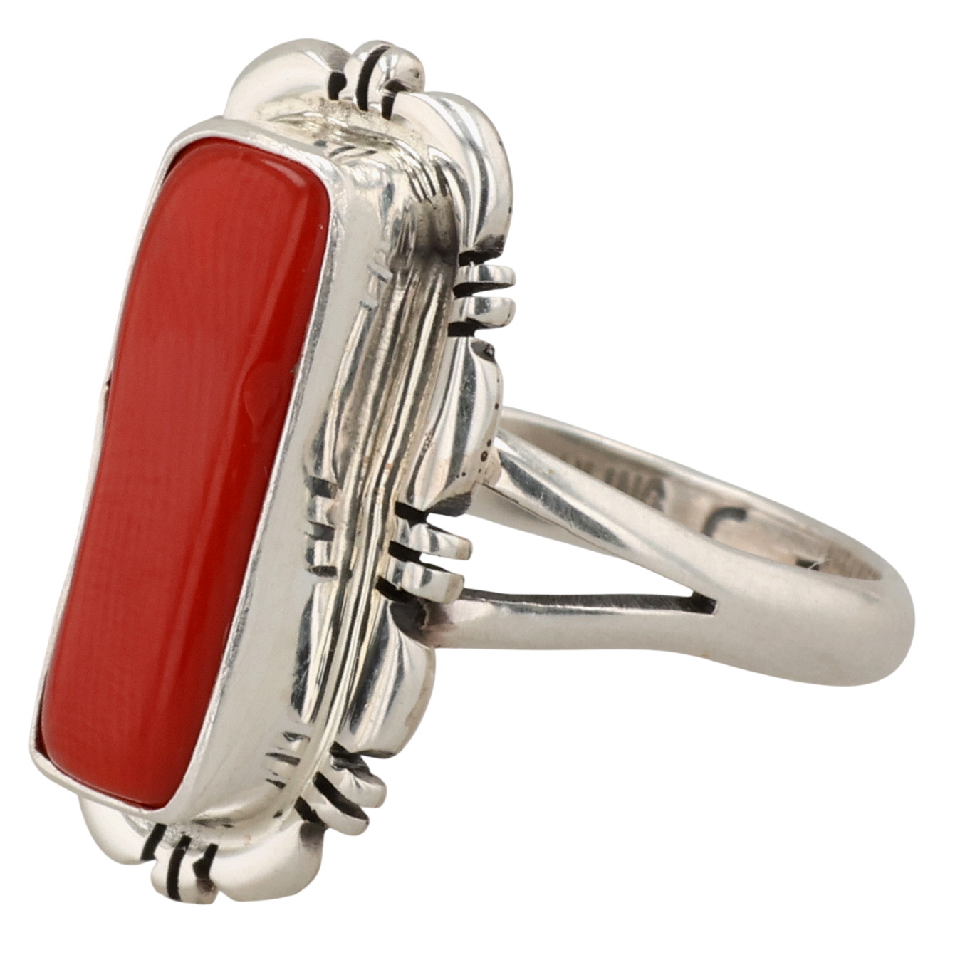 Norvin Johnson Navajo Sterling Coral ring 4.5g Sz 6.5