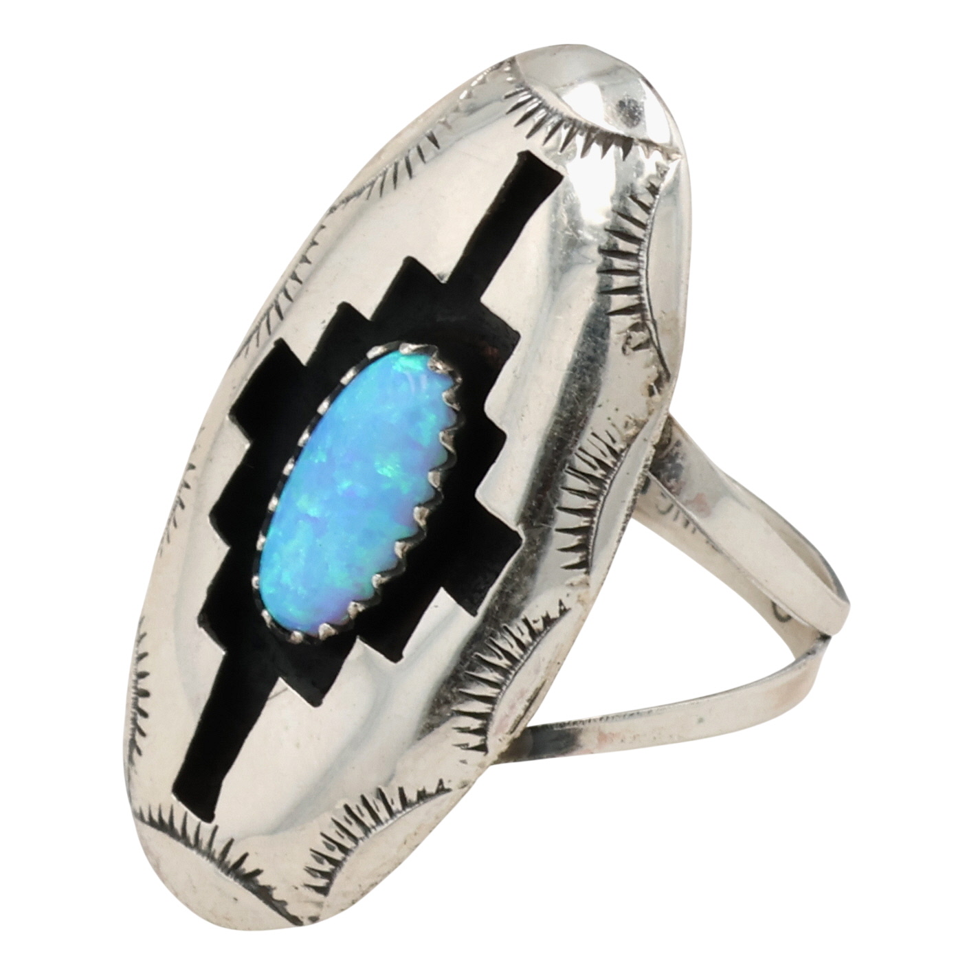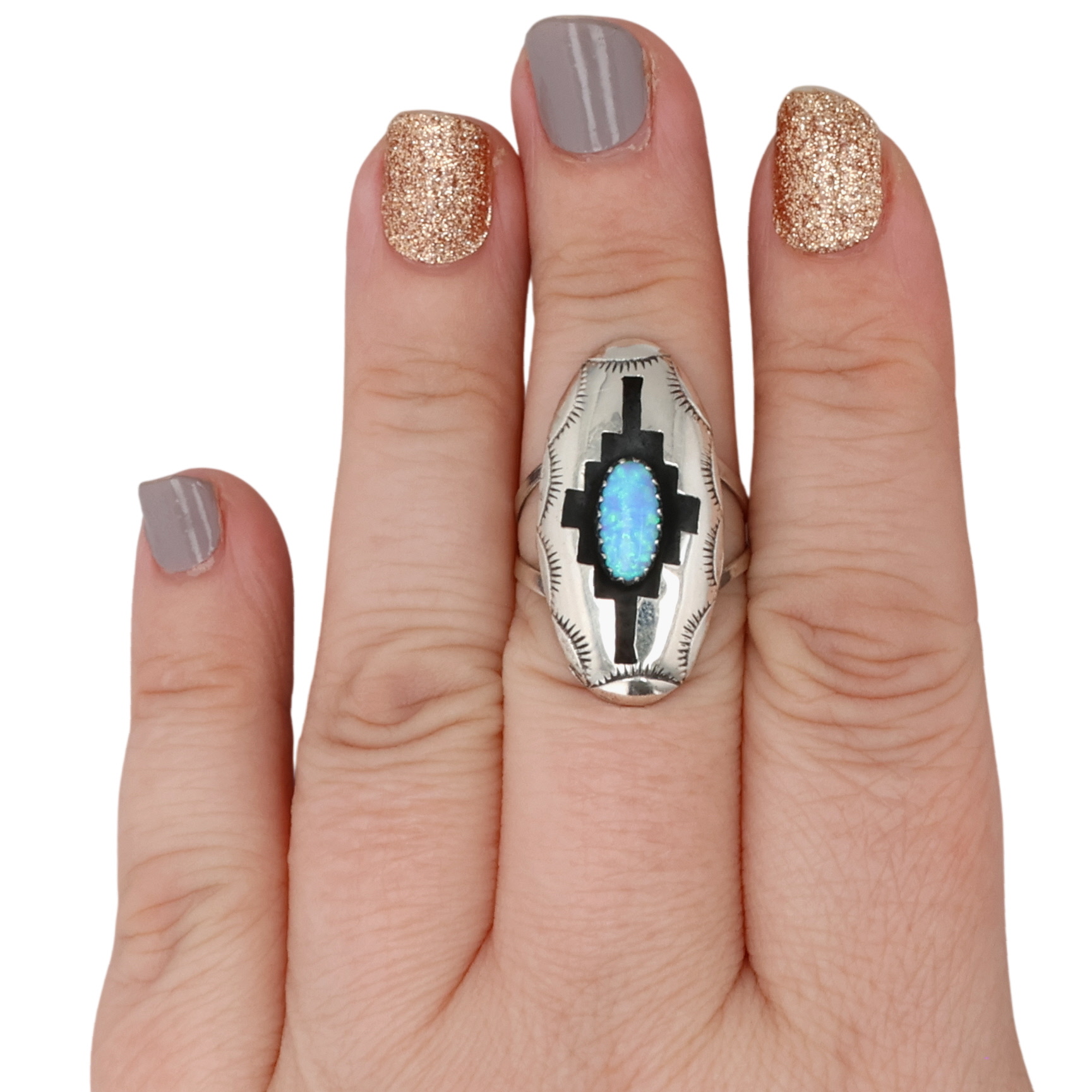 Felix Perry Navajo Sterling Opal Shadow Box Ring 2.5g Sz 8